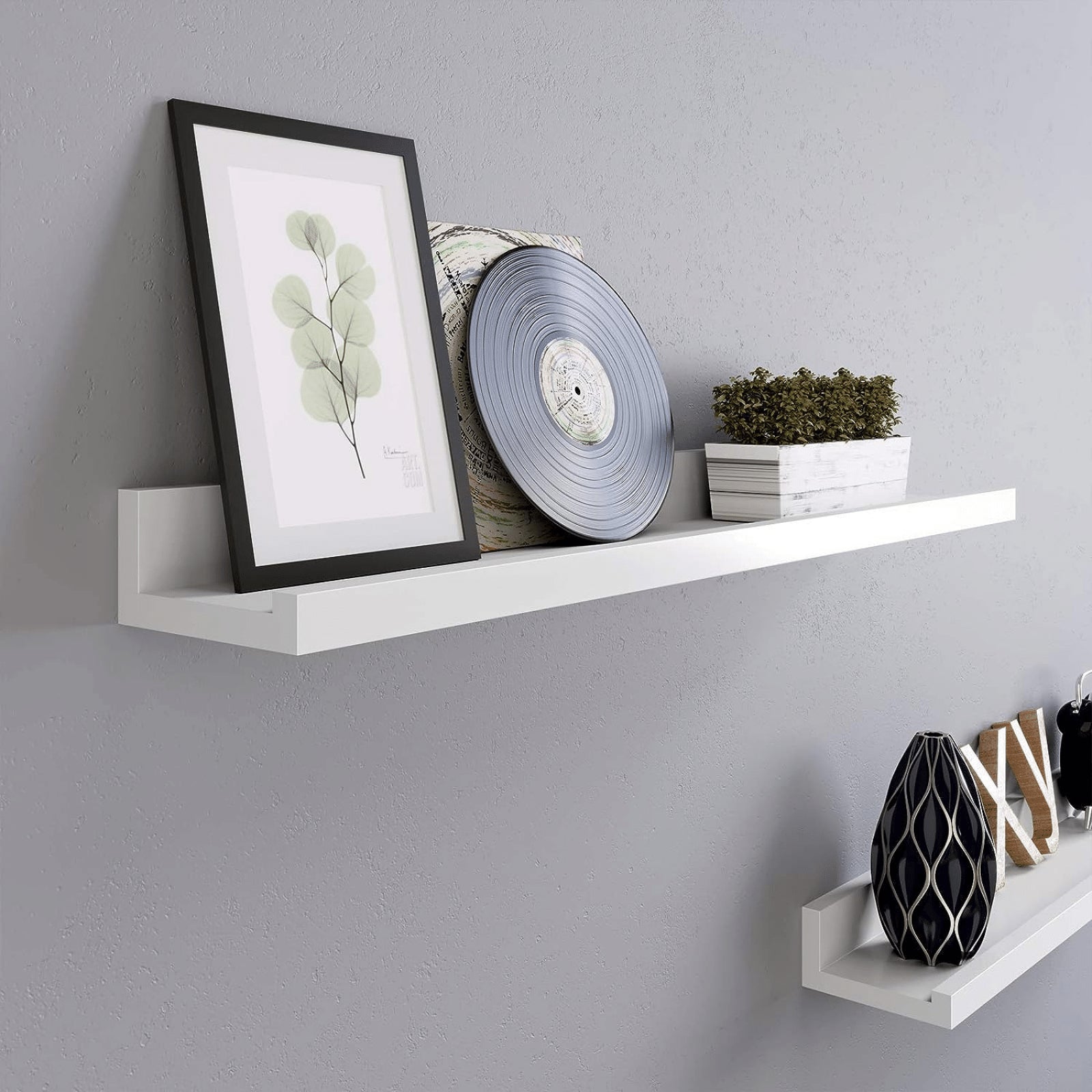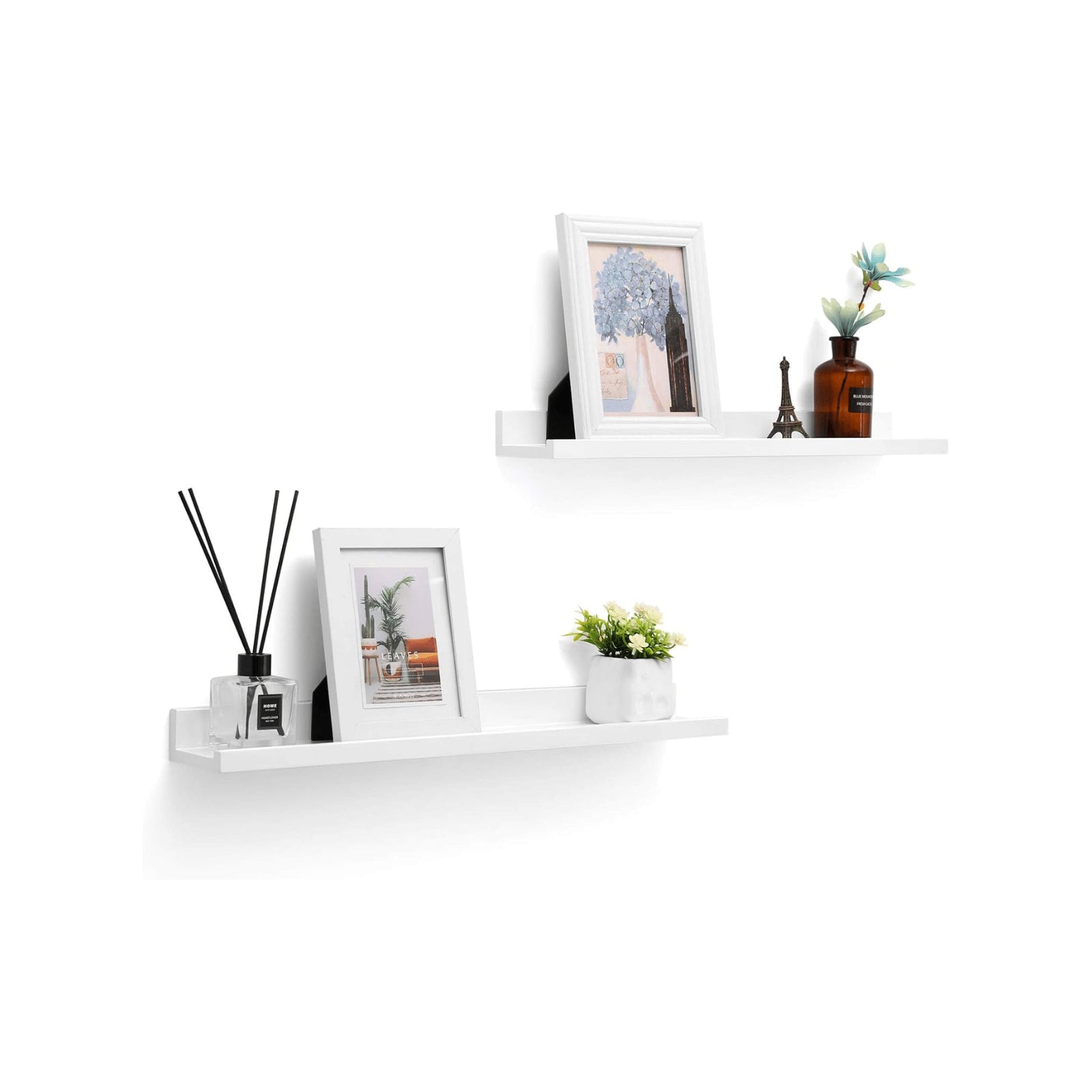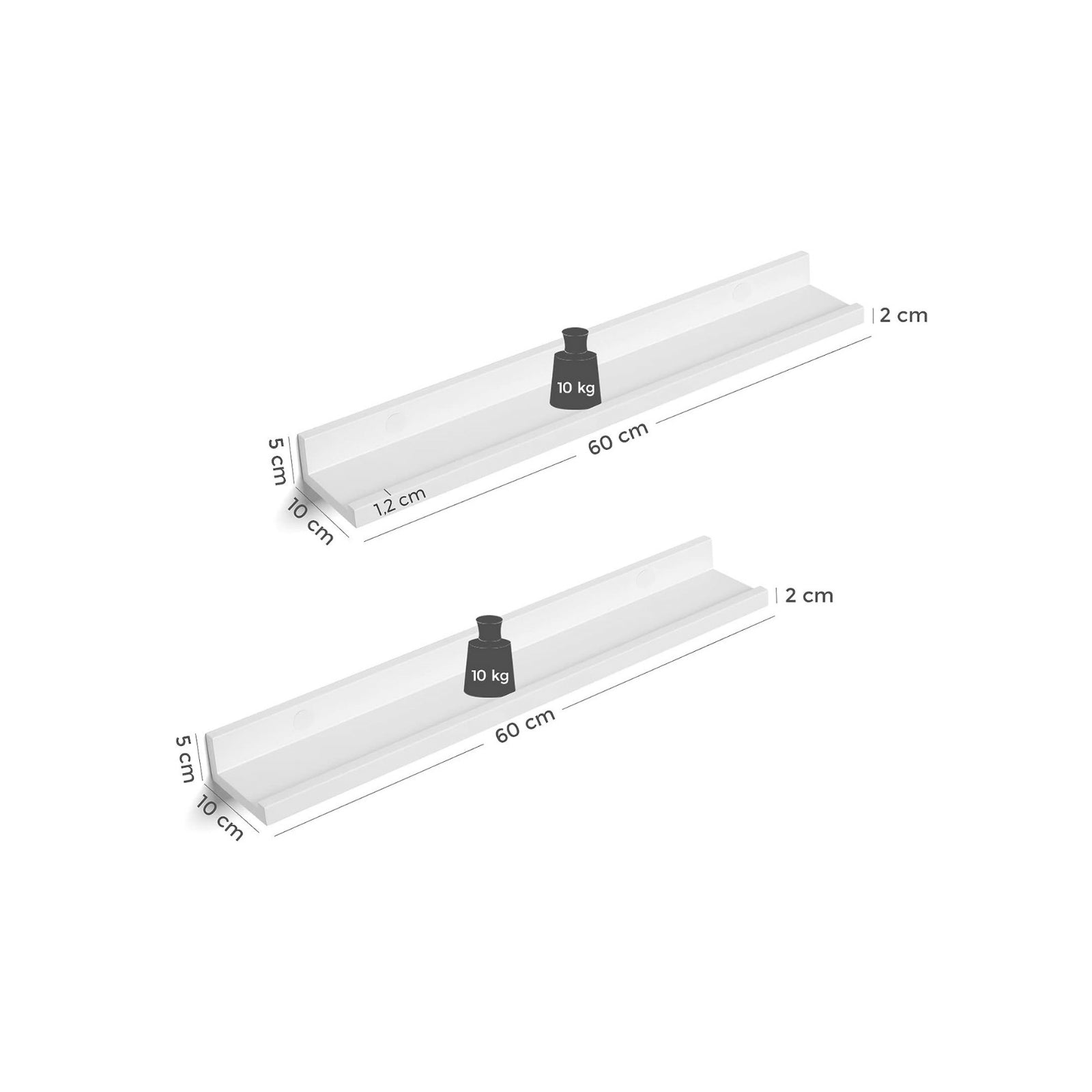 HOOGGLANS AFWERKING: In klassiek wit met een hoogglansafwerking zien de zwevende planken er modern en elegant uit. Het oppervlak is ook eenvoudig te reinigen, waterbestendig en duurzaam. VOOR UW MOOISTE HERINNERINGEN: Leg herinneringen van dierbaren of mooie evenementen vast met foto's en plaats ze in mooie fotolijsten op deze 2-delige zwevende planken. Dit artikel zal aansluiten in iedere ruimte van jouw woning. EENVOUDIGE MONTAGE: Dit meubel is eenvoudig te monteren door gebruik te maken van de inbegrepen handleiding en eventueel een zak schroefmateriaal.