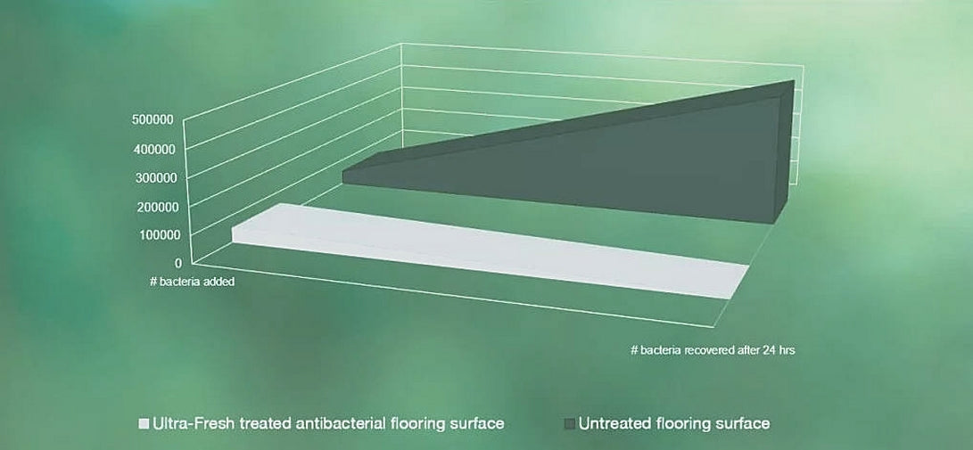 De garens van de schoonloopmatten zijn integraal behandeld met ULTRA-FRESH. Deze behandelingstechniek stopt de groei en elimineert supersnel bacteriën tot meer dan 99,9%. De aantrekkelijke popcornstructuur en hoogwaardige garens absorberen vocht en vuil en vangen dit op. ULTRA-FRESH bewijst zich al jarenlang met deze duurzame antibacteriële techniek en is 5 jaar gegarandeerd. Dit bewijst zich door TÜV testen en de techniek is gecertificeerd door het test- en certificeringssysteem OEKO-TEX.