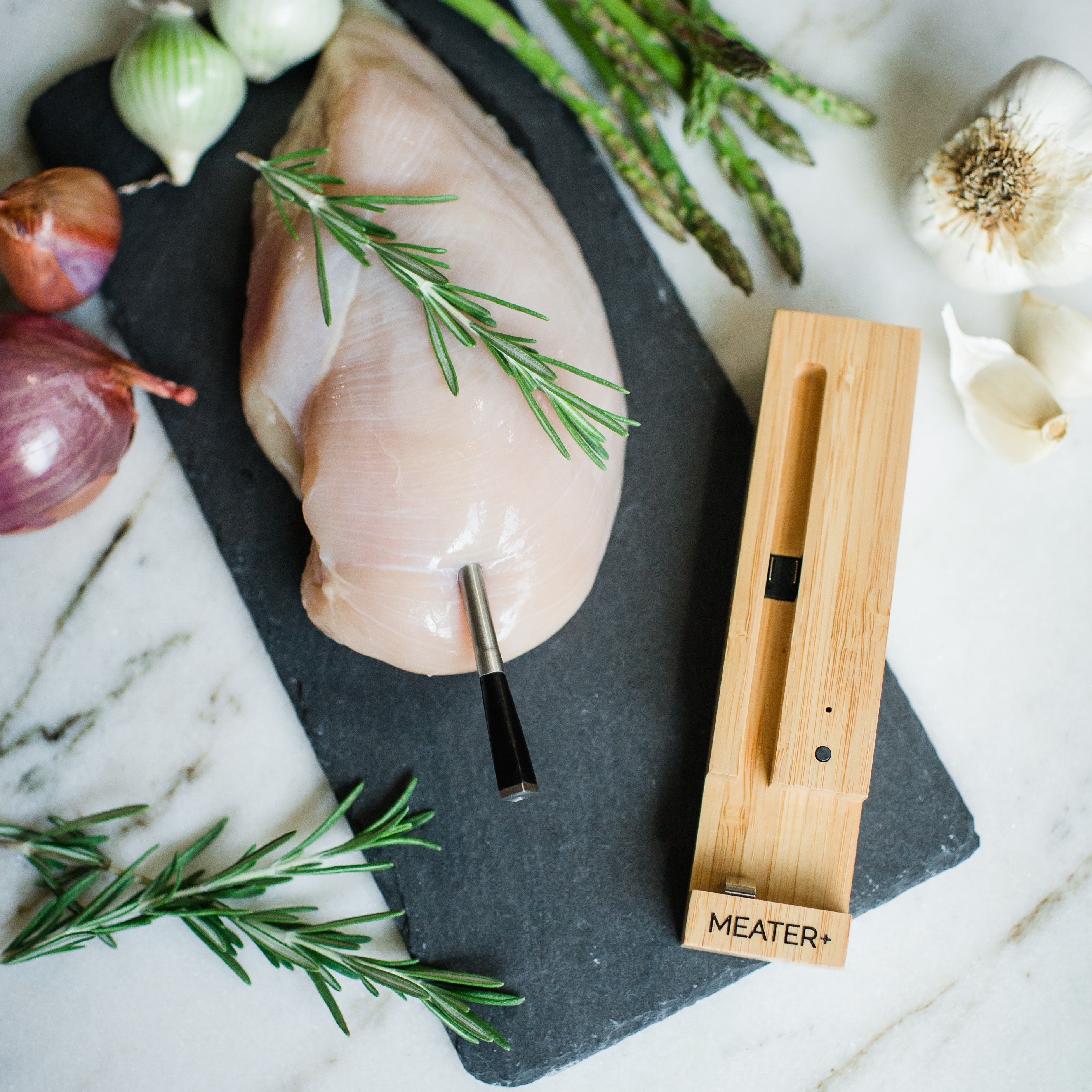 De eerste echte draadloze slimme vleesthermometer. Behaal steeds perfecte en consistente resultaten met MEATER. Meet zowel de kern temperatuur als de omgeving temperatuur. Berekent accuraat de resterende bereidingstijd en stuurt u een alert als het klaar is.