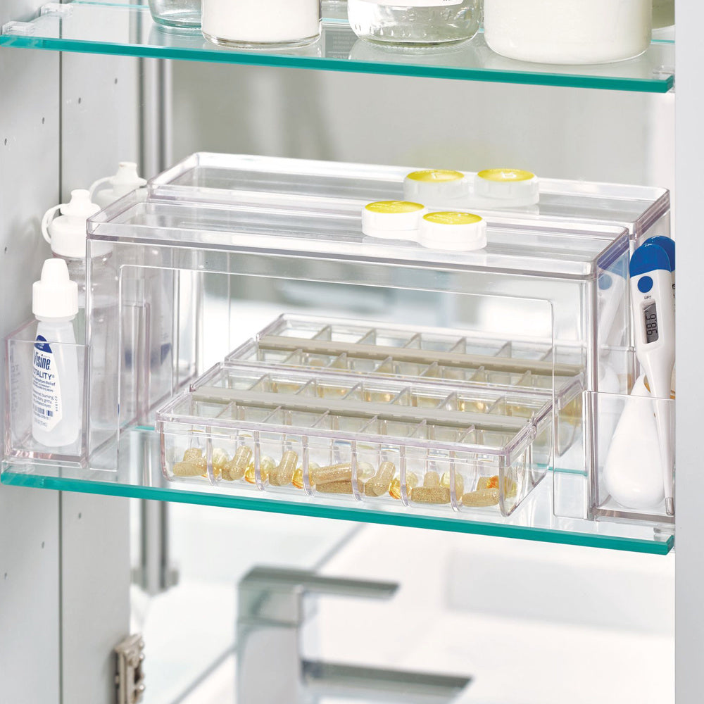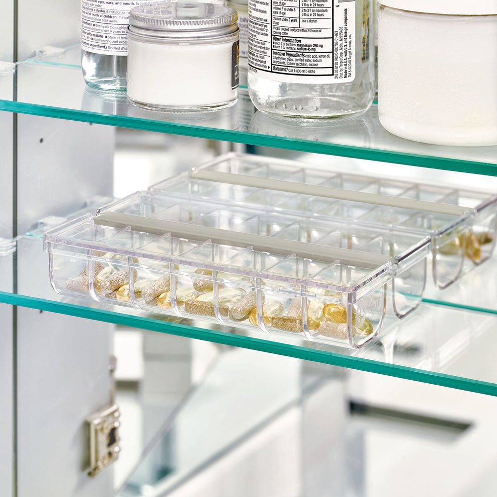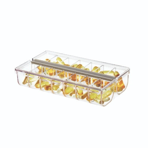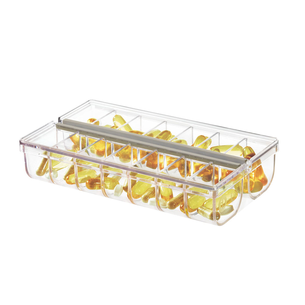 Medicijnendoosje, 16.5 x 9.5 x 3.8 cm, Kunststof, Transparant - iDesign | The Home Edit Als je op zoek bent naar een handig doosje om je medicijnen in op te bergen zit je bij dit medicijnendoosje uit de The Home Edit serie van iDesign helemaal aan het juiste adres! Het medicijnendoosjes is gemaakt van kunststof en is transparant waardoor deze ook nog eens makkelijk schoon te maken is. De afmetingen van dit medicijnendoosje zijn 16.5 x 9.5 x 3.8 centimeter, hiermee past deze ook goed in een badkamerkastje. Dit medicijnendoosje beschikt over 14 aparte vakjes waarin je meerdere medicijnen kwijt kunt. Zo kan je elke keer na het bijvullen weer even vooruit! Het medicijnendoosje bevat aan beide kant een deksel waarmee je het doosje eenvoudig af sluit of maar één kant van het doosje opent. Bij dit medicijnendoosje worden speciale labels meegeleverd zodat je precies kunt zien bij welke dag je gebleven bent en als je dit wenst kan je de vakjes ook nog een ochtend-, middag-, of avondaanduiding geven, handig! Pluspunten