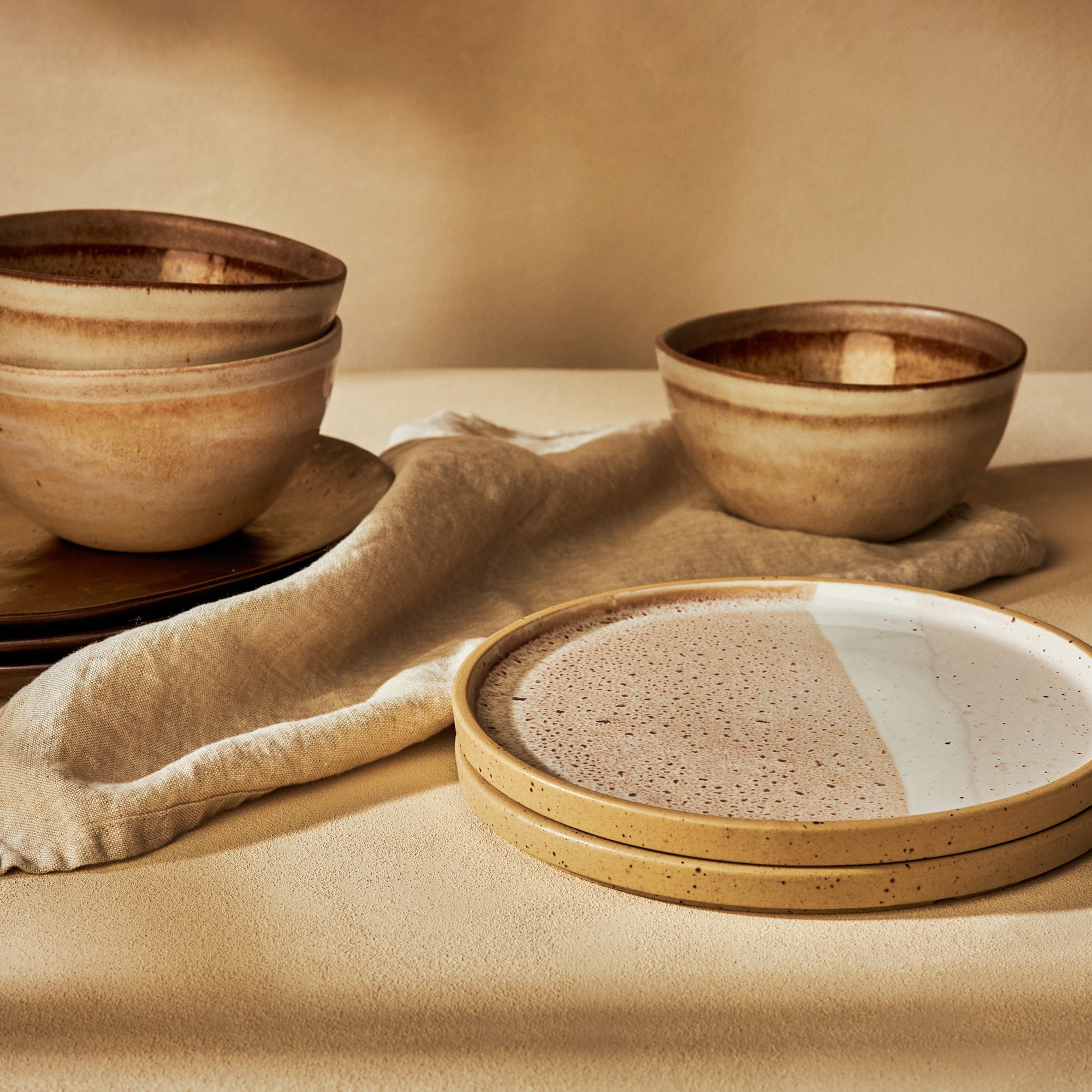 Elke laag van het reactieve glazuur wordt met de hand aangebracht, waardoor subtiele variaties van stuk tot stuk ontstaan en elk stuk uniek is. Gemaakt van keramiek, vaatwasmachine-, oven- en magnetronbestendig voor dagelijks gebruik.
