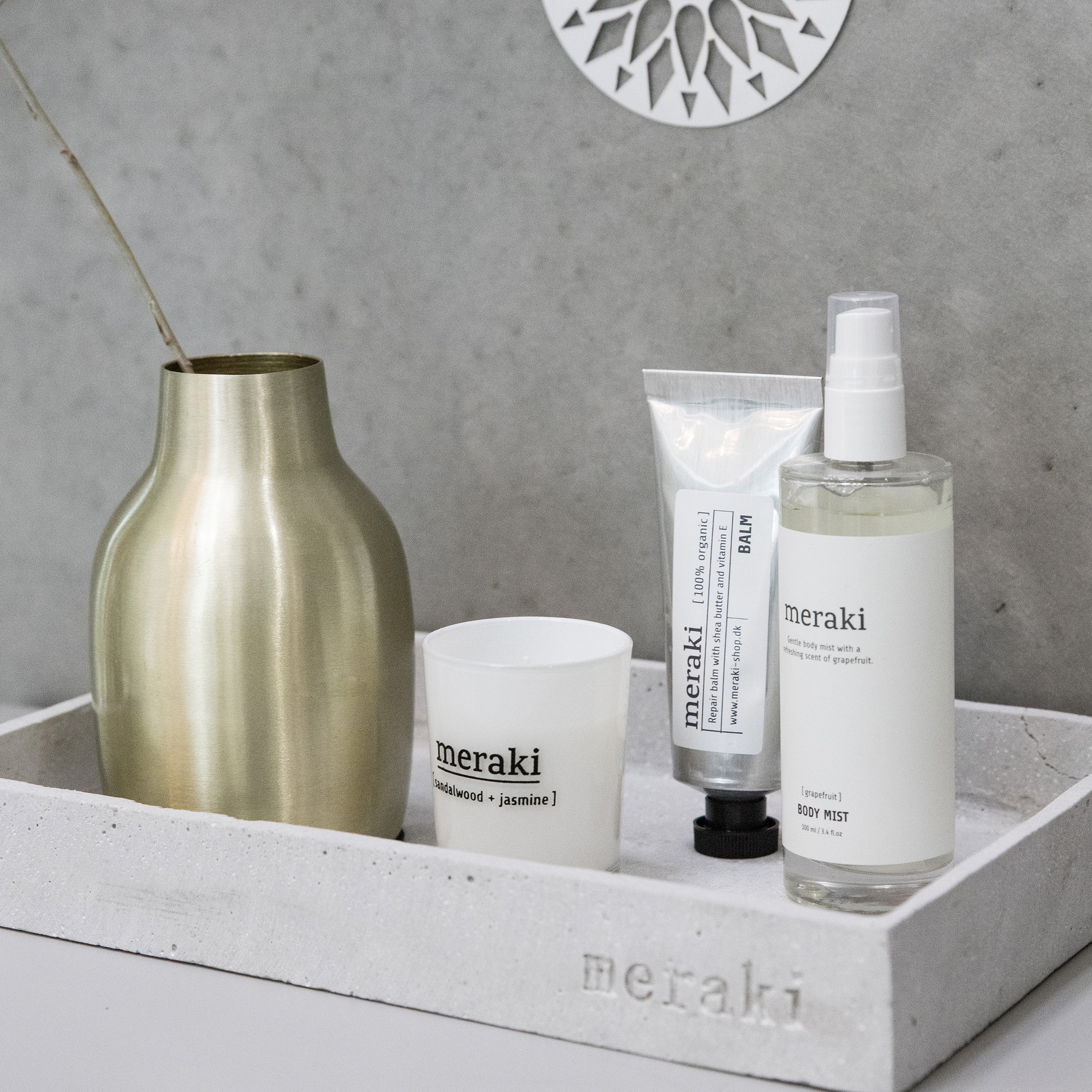 Neem een duik in de unieke wereld van Meraki. Dit wonderlijke merk haalt zijn inspiratie uit de Scandinavische cultuur en creëert zo prachtige collecties met lifestyle producten. Van heerlijke handzeepjes en scrubs tot verkwikkende bodysprays en shampoos: jouw lichaam blijft gezond met Meraki!