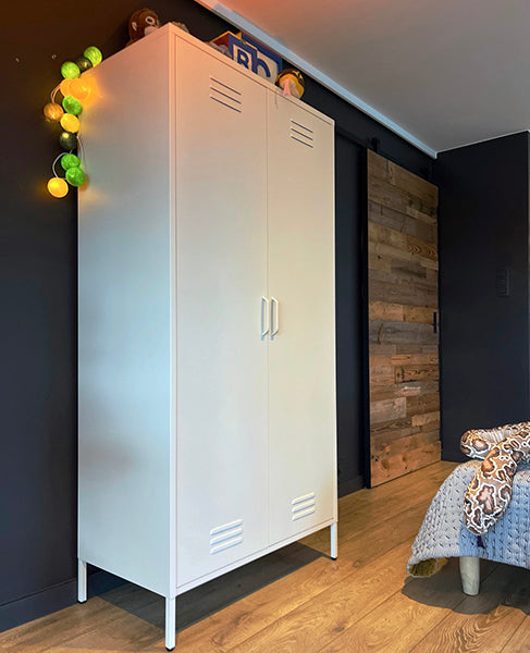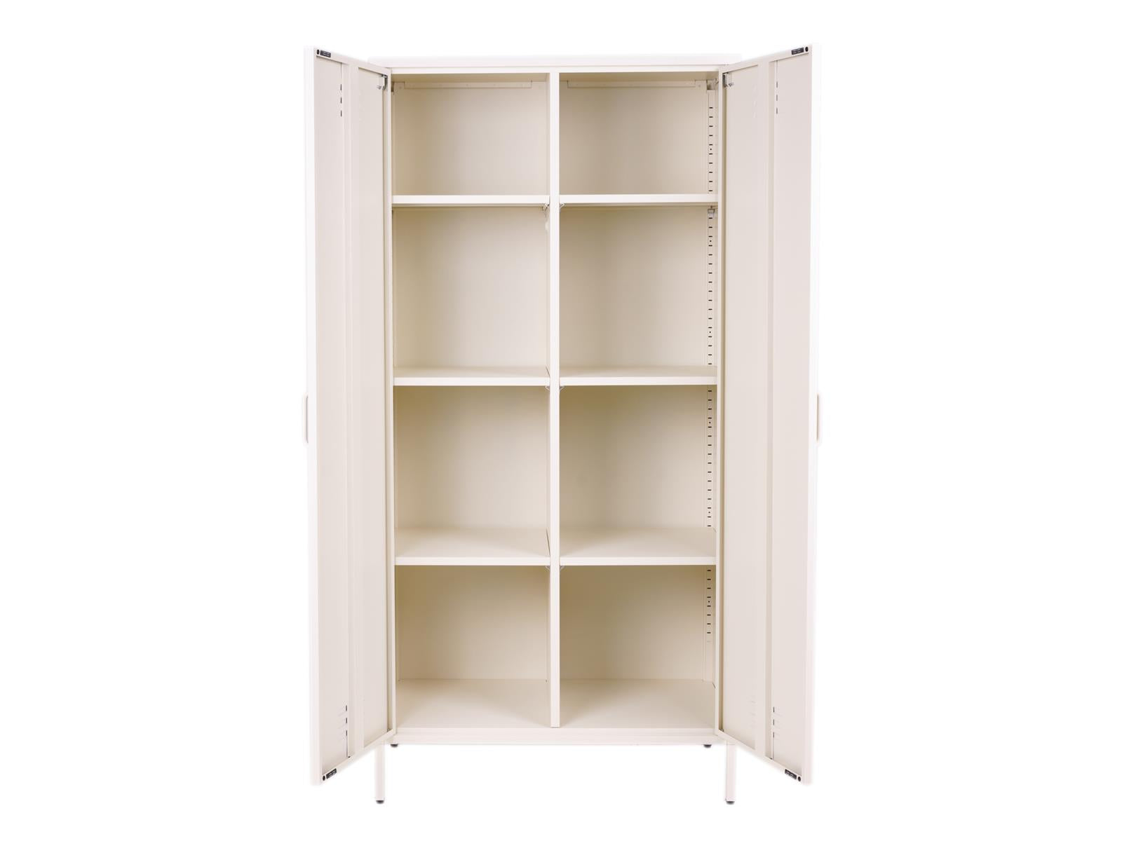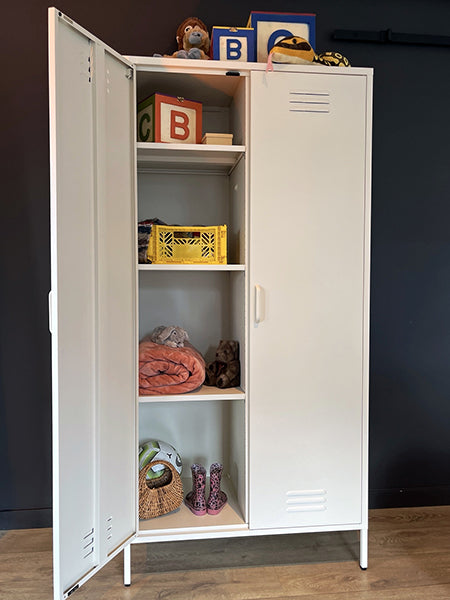 Met onze nieuwe kleding lockerkast bepaal je zelf de indeling van jouw kast. Ideaal toch? Het is hetzelfde stoere design zoals je van ons gewend bent, alleen nu met flexibele indeling. Je krijgt de mogelijkheid om zelf de indeling van de 8 schappen te bepalen. Daarnaast ontvang je 2 kleding roedes, zodat je de mogelijkheid hebt om aan beide kanten kleding op te hangen. Waarom worden wij zo blij van onze kleding lockerkast? - Zelf bepalen waar de 8 schappen geplaatst worden - Mogelijkheid om aan beide kanten kleding roedes op te hangen -sdfChique mat ivoorsdfanti kras coatingsdf - Moderne looksdf sdf