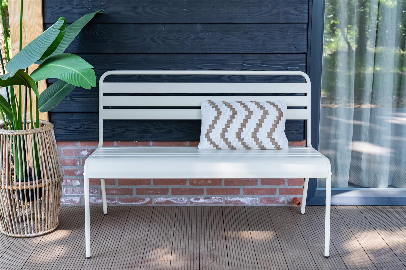 Op zoek naar een moderne blikvanger voor je balkon, dakterras of tuin? Onze metalen tuinbank Max combineert een ruime, ronde vormgeving met een strakke uitstraling. Dankzij de chique matte poedercoating met subtiele zandstructuur blijft je bank jarenlang mooi.