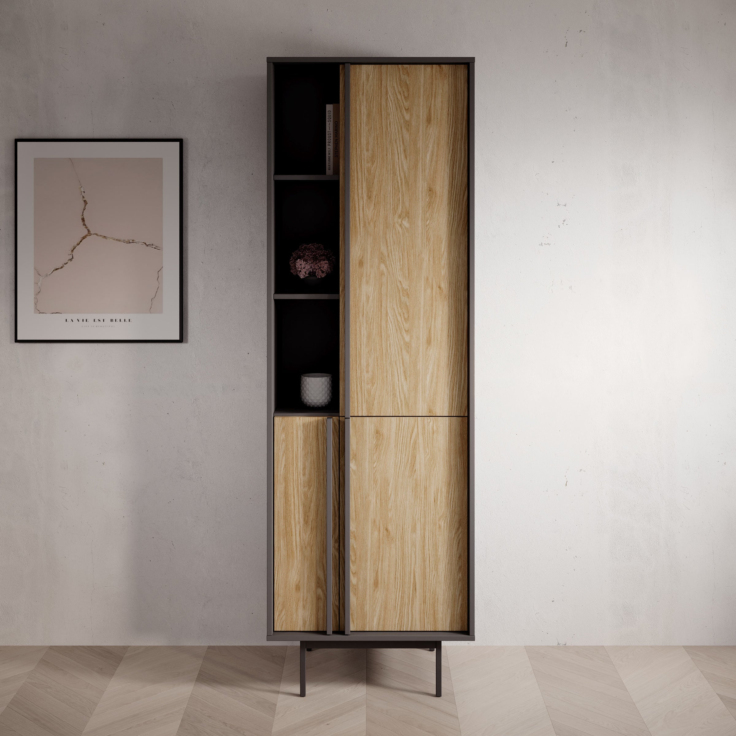 Meubella - Antigo - Boekenkast - Eiken|Antraciet - 63x43x195 cm