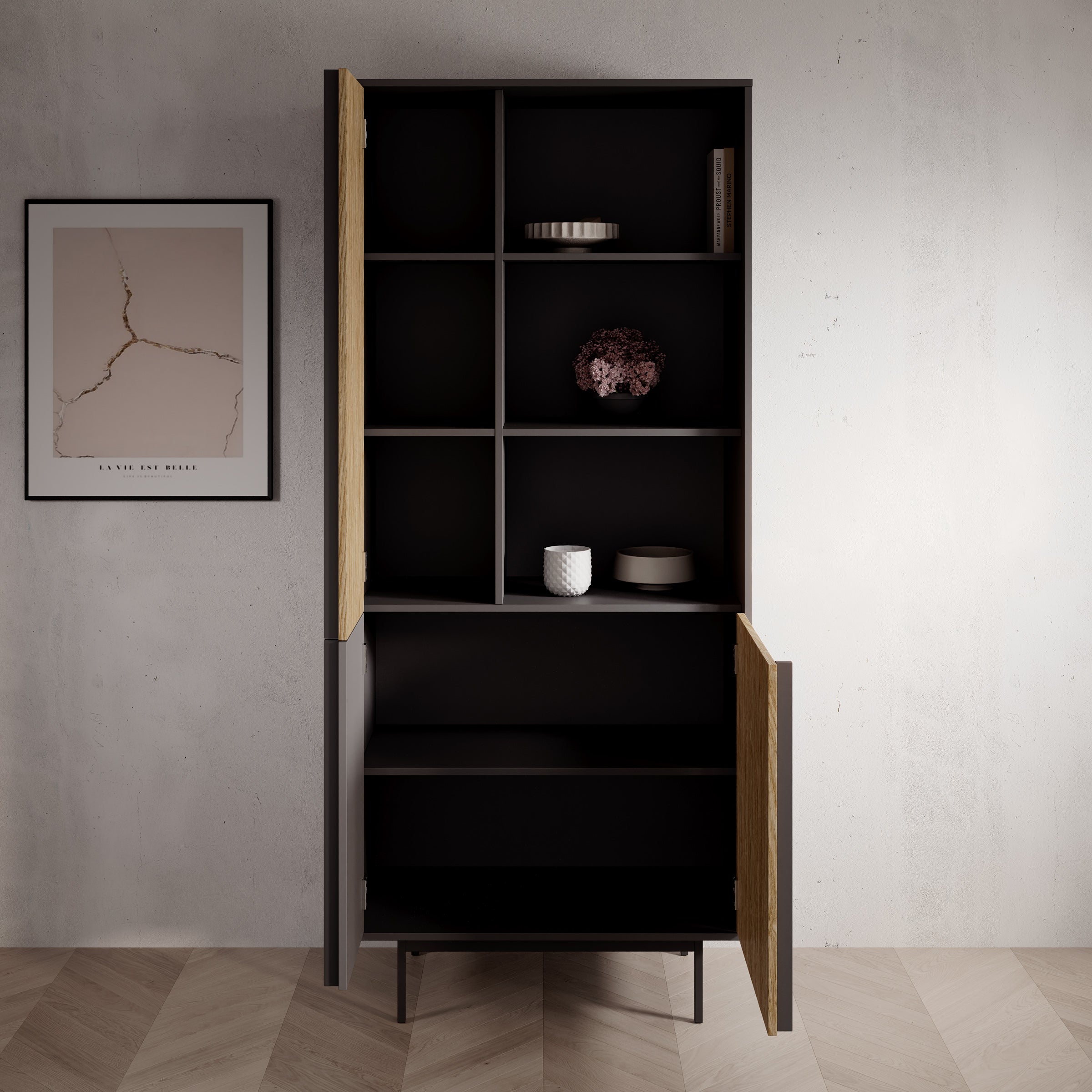 Meubella - Antigo - Boekenkast - Eiken|Antraciet - 83x43x195 cm