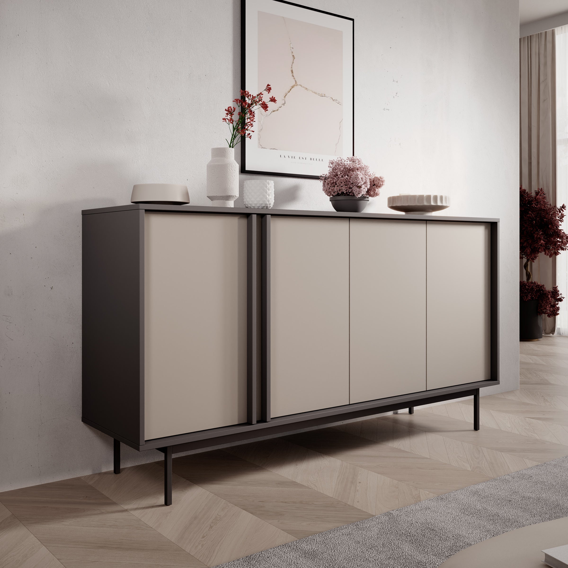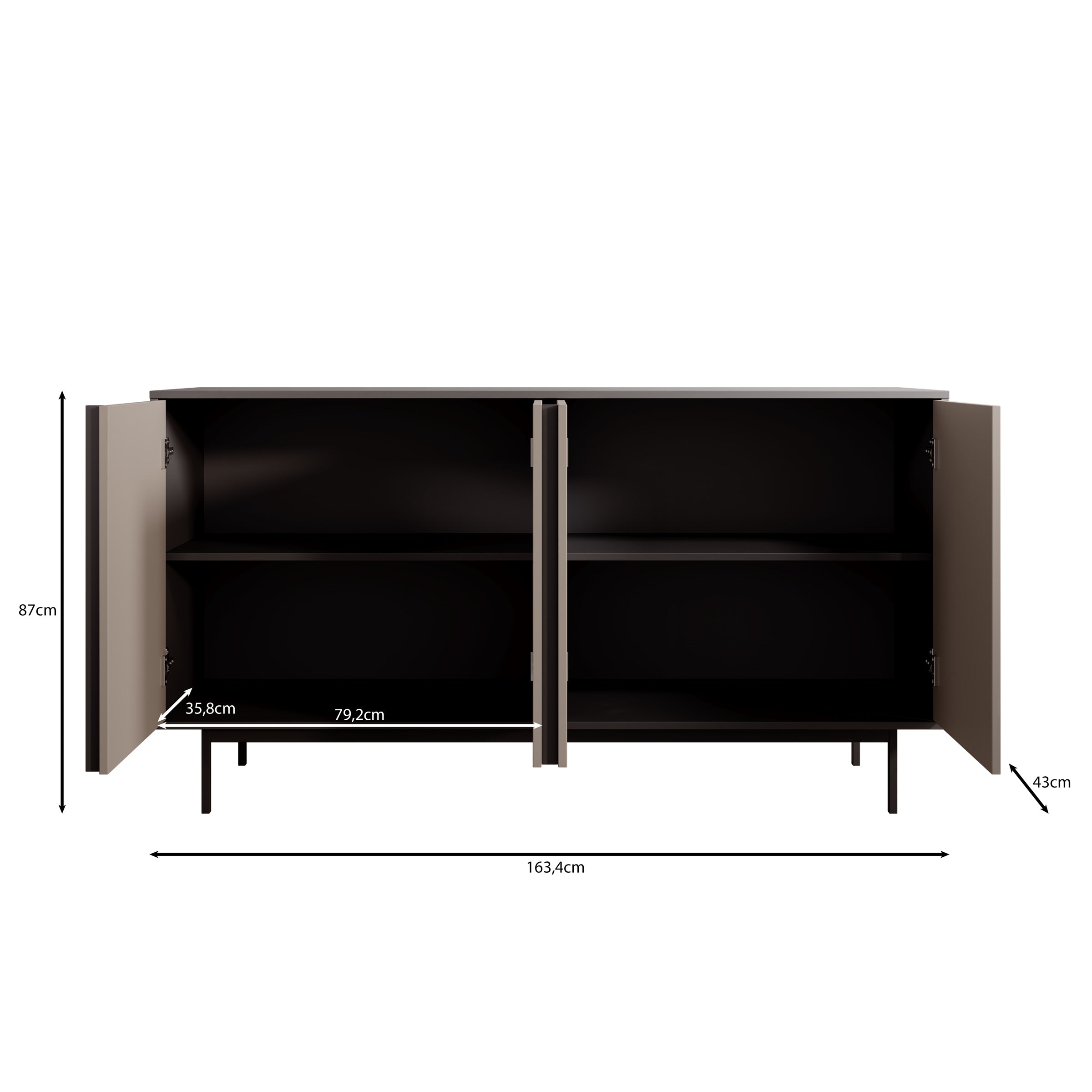 Meubella - Antigo - Dressoir - Beige|Antraciet - 163x43x87 cm