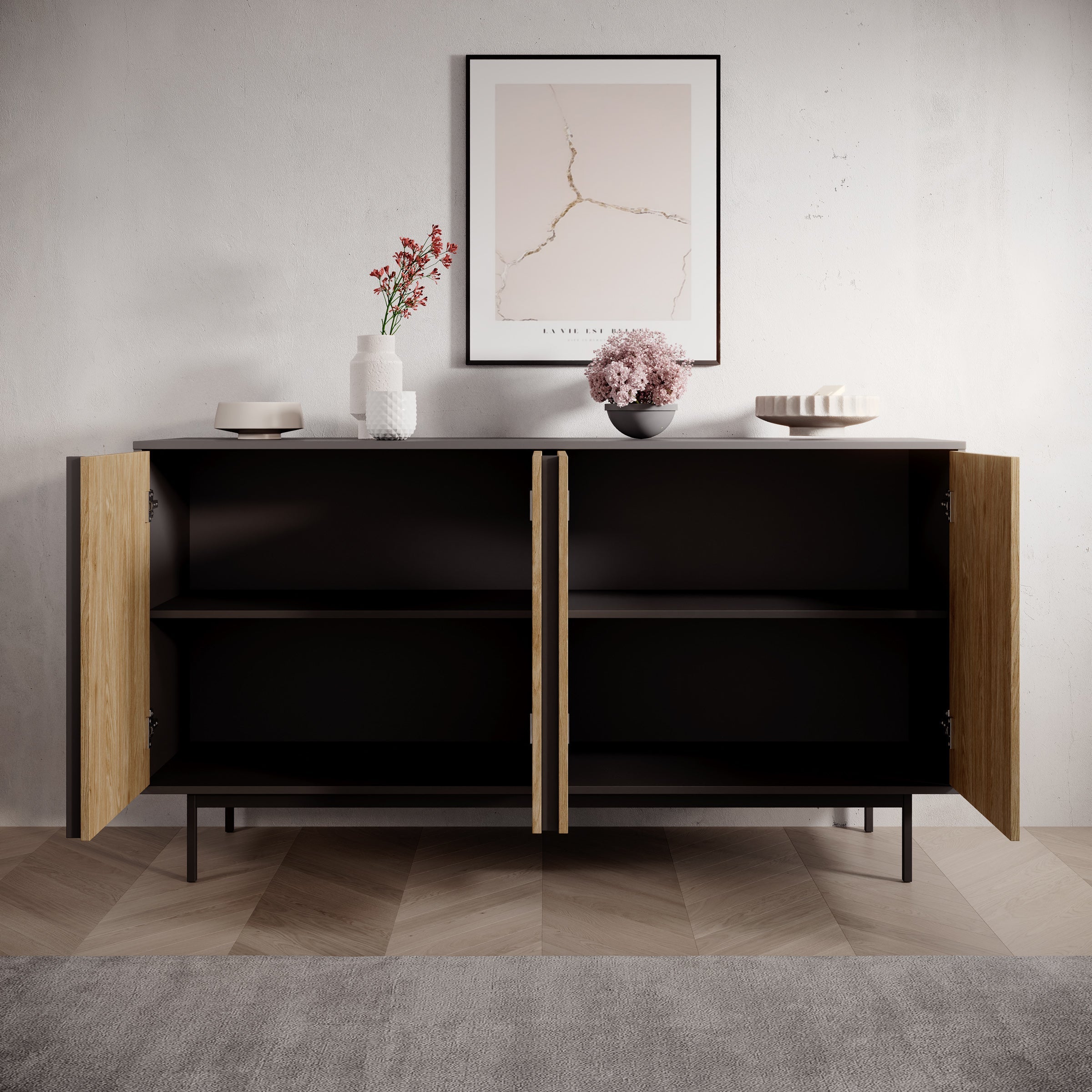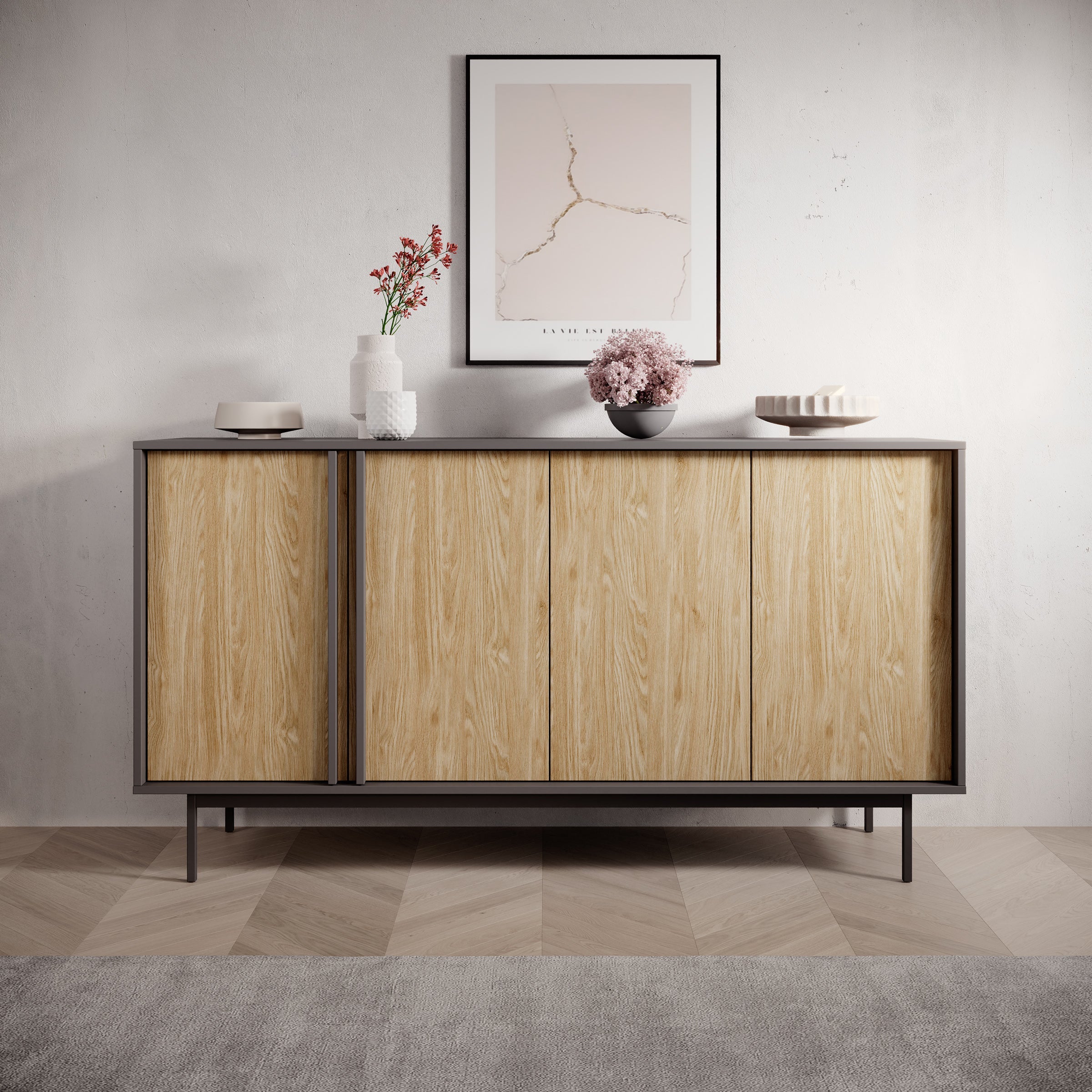 Meubella - Antigo - Dressoir - Eiken|Antraciet - 163x43x87 cm
