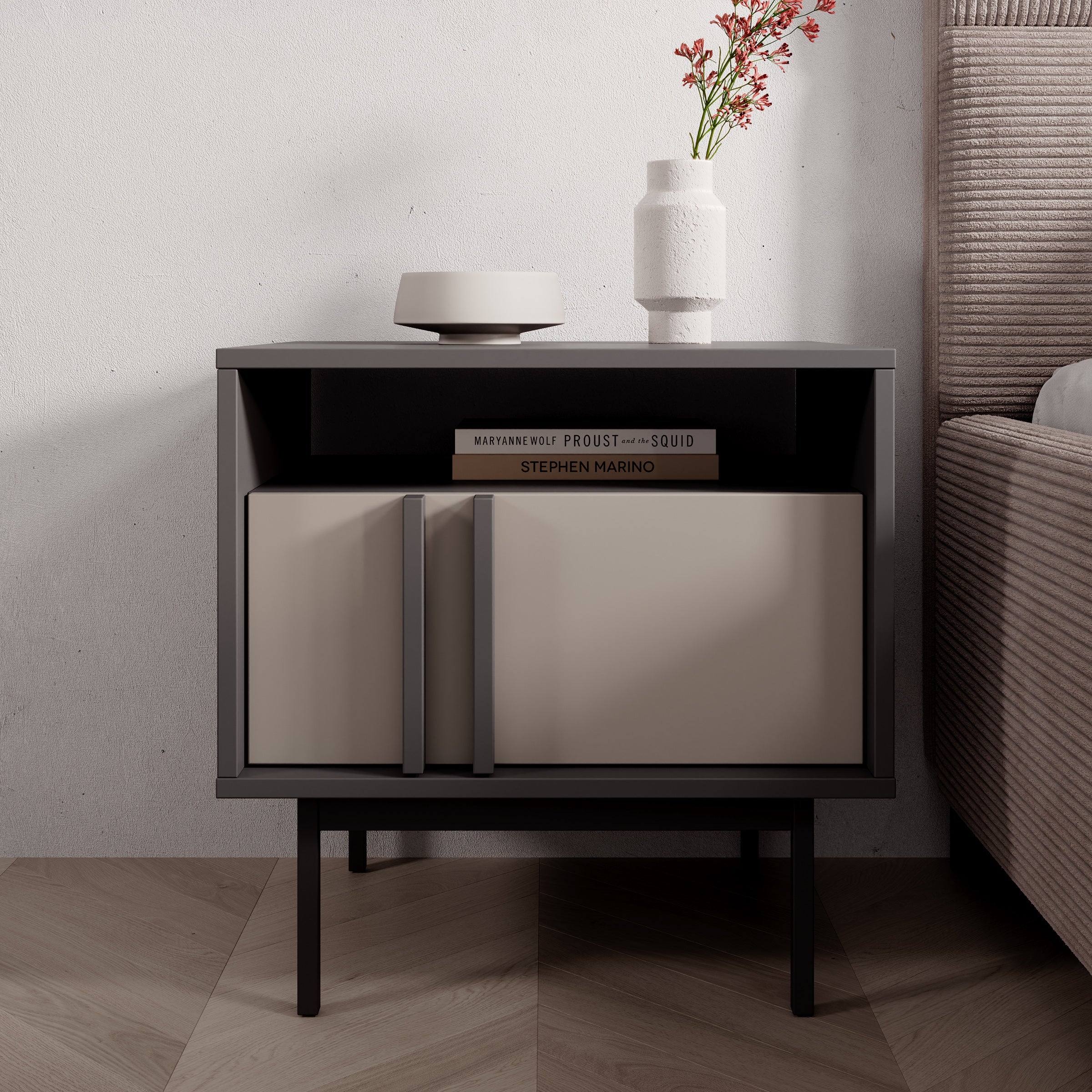 Meubella - Antigo - Nachtkastje - Beige|Antraciet