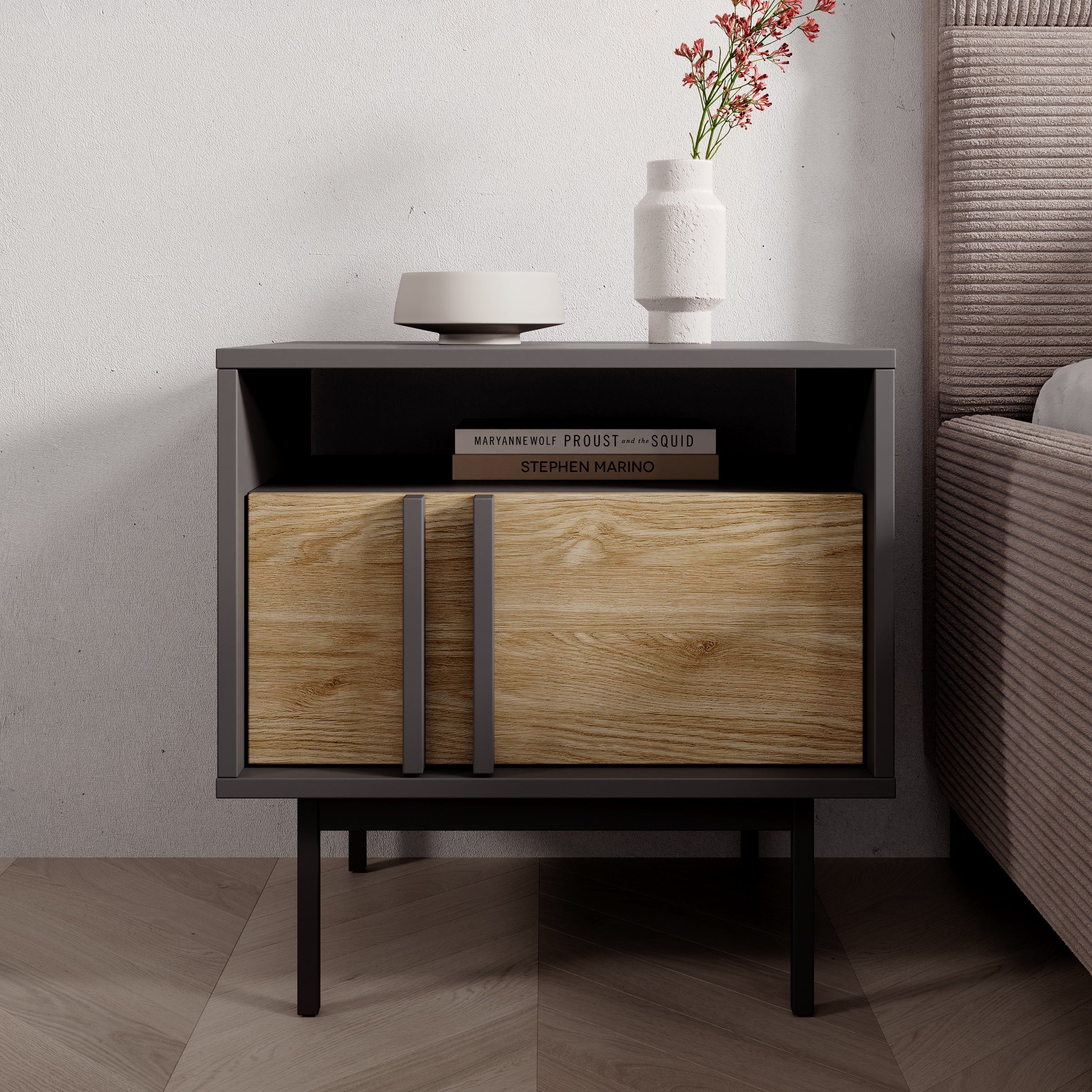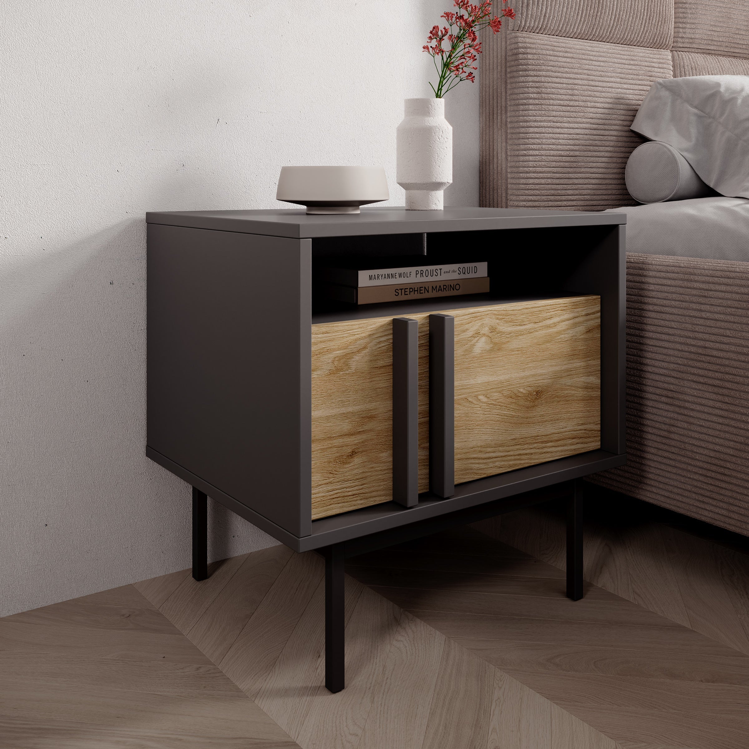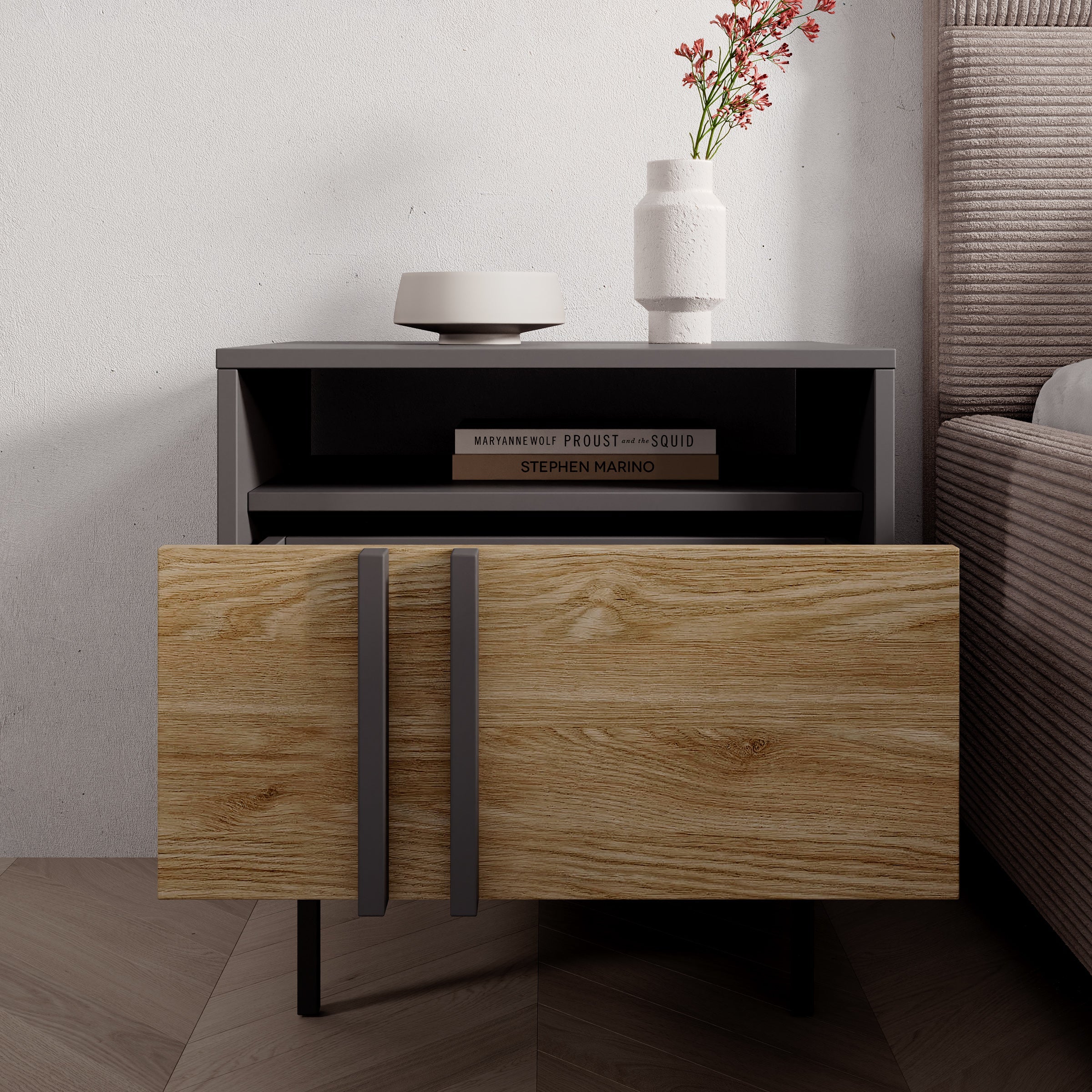 Meubella - Antigo - Nachtkastje - Eiken|Antraciet