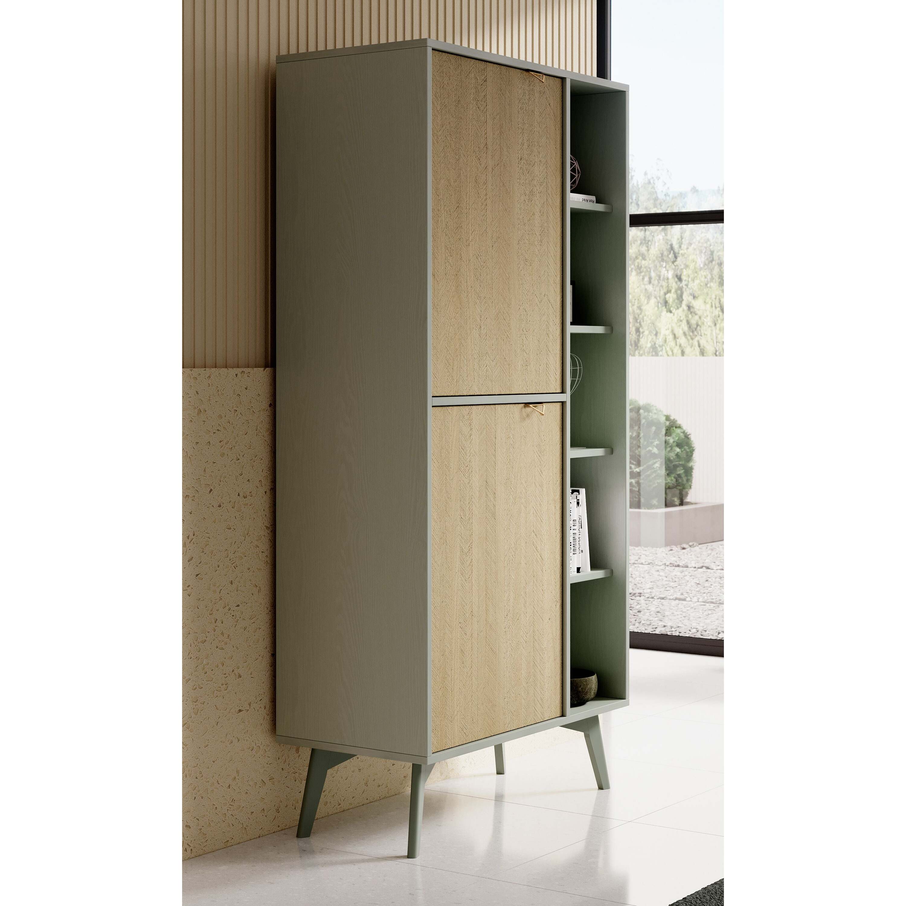 Meubella - Boekenkast Essence - Groen - Licht eiken - 80 cm