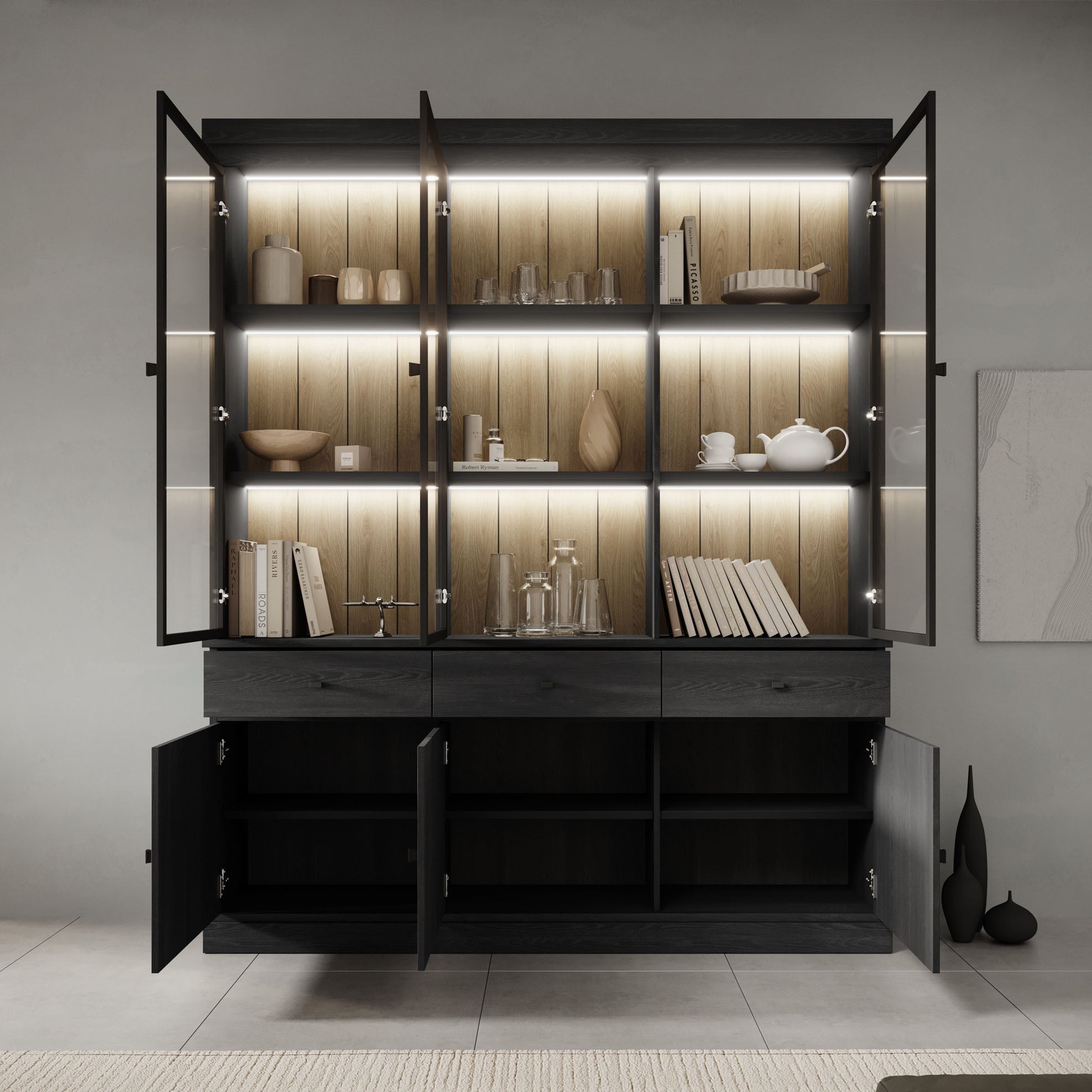 - Deuren en lades openen met zwarte knoppen