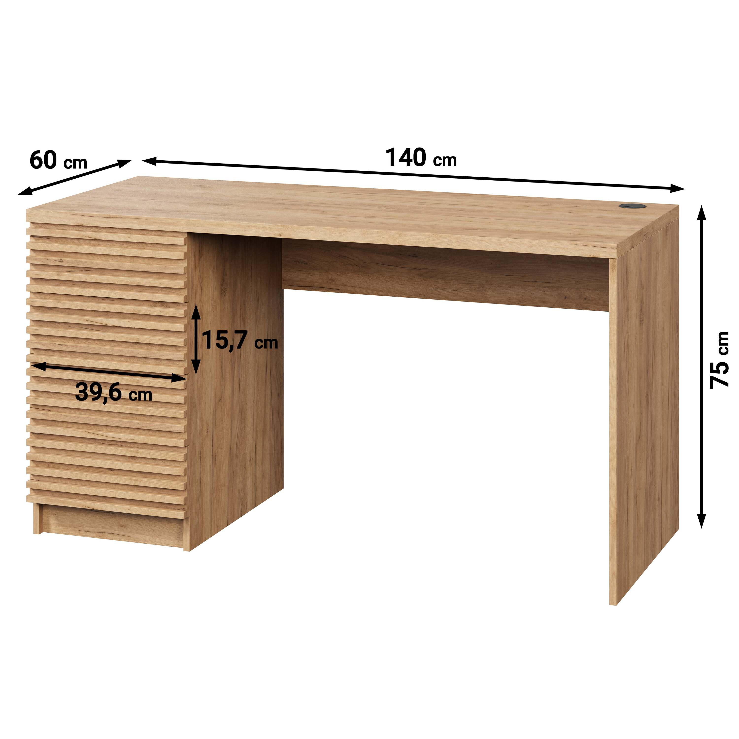 Meubella - Bureau Bergamo - Eiken - 140 cm