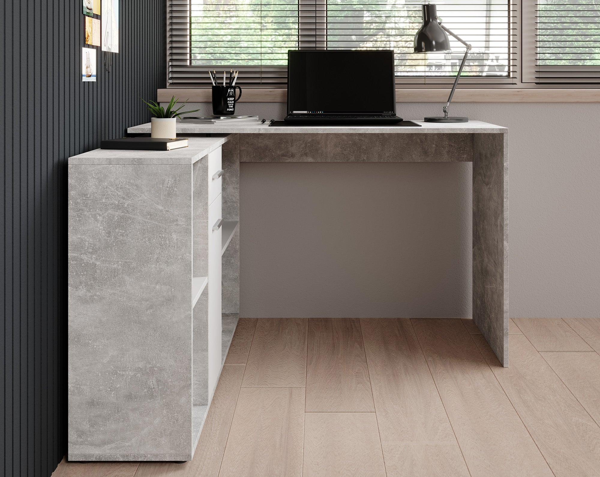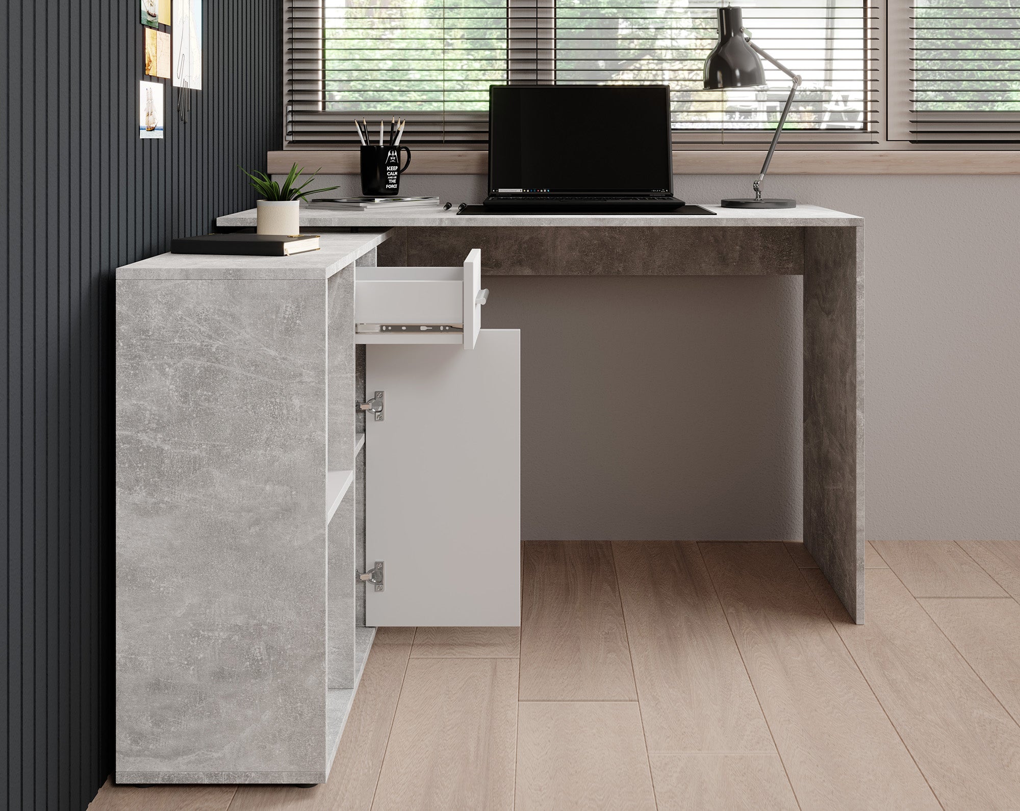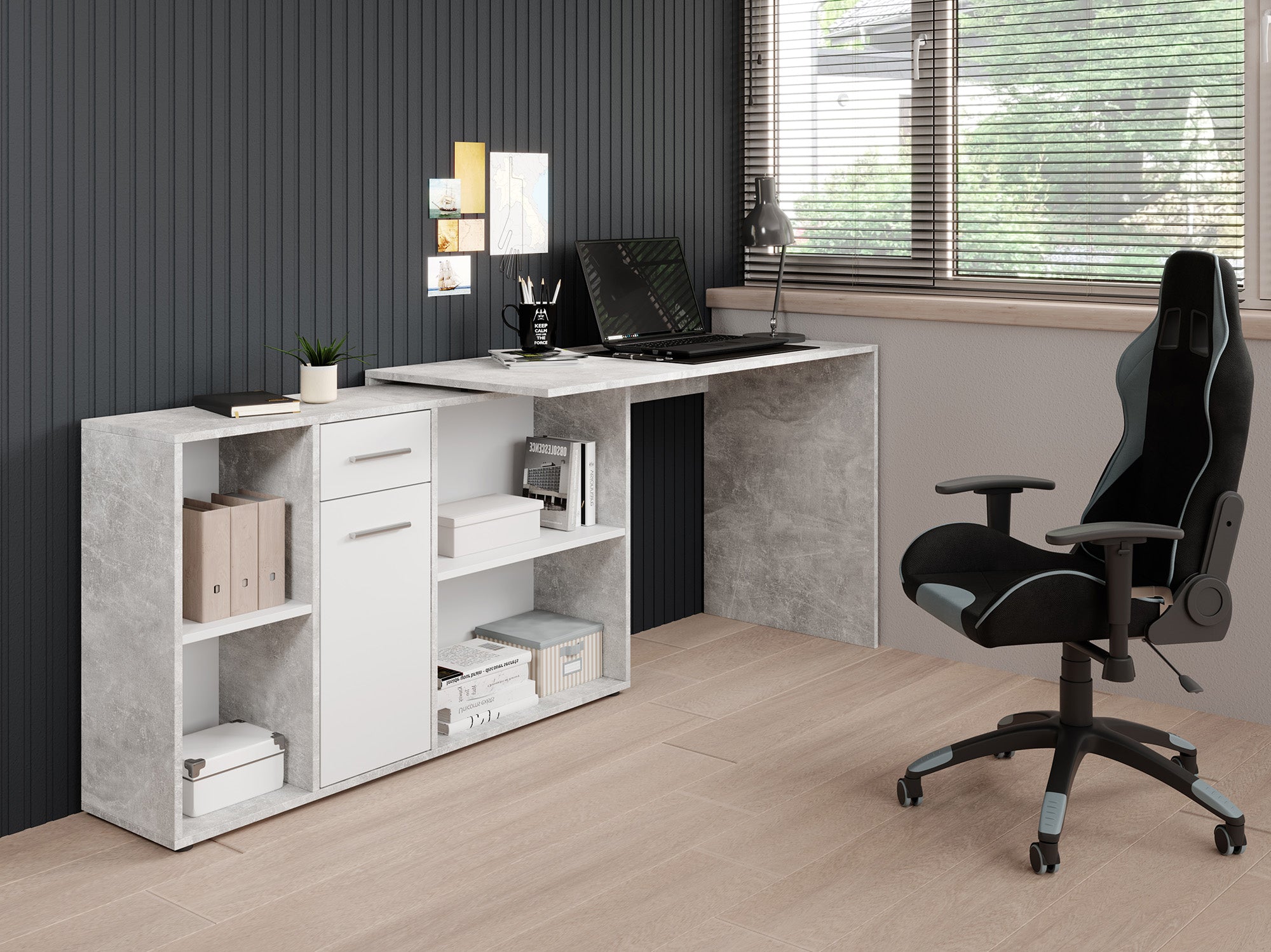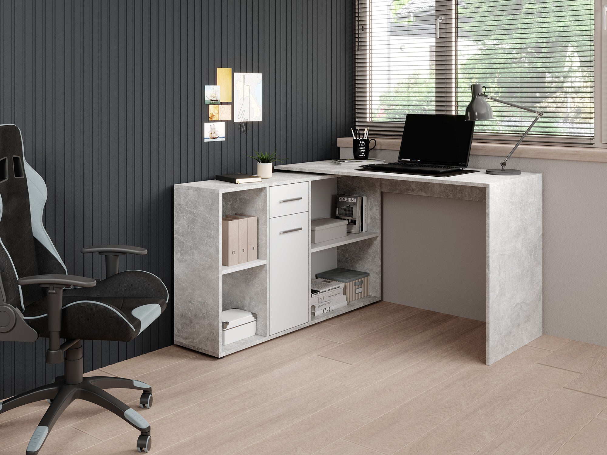 - Verstelbaar naar hoekbureau