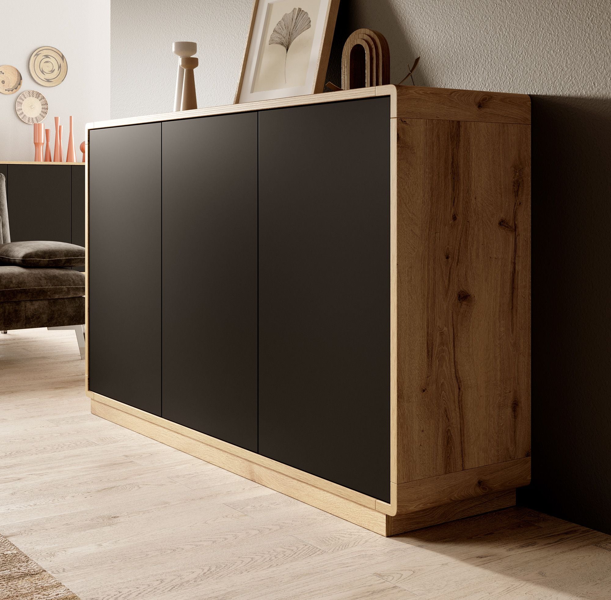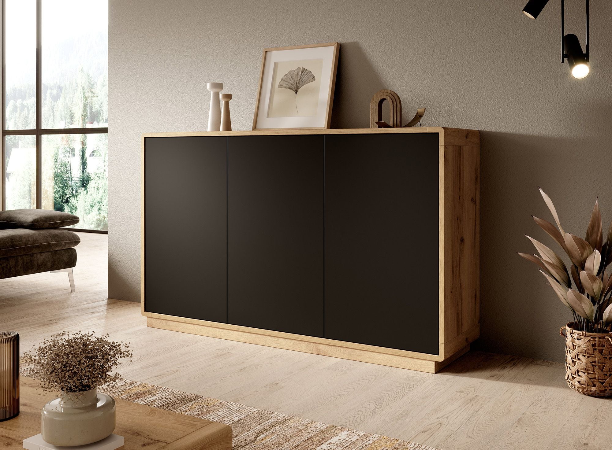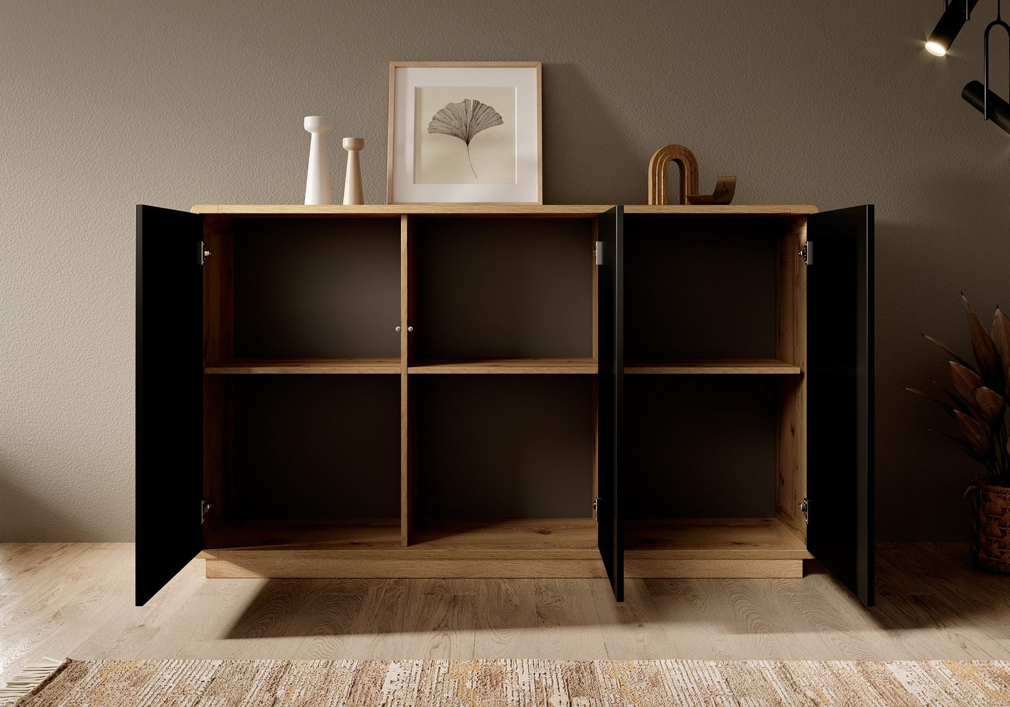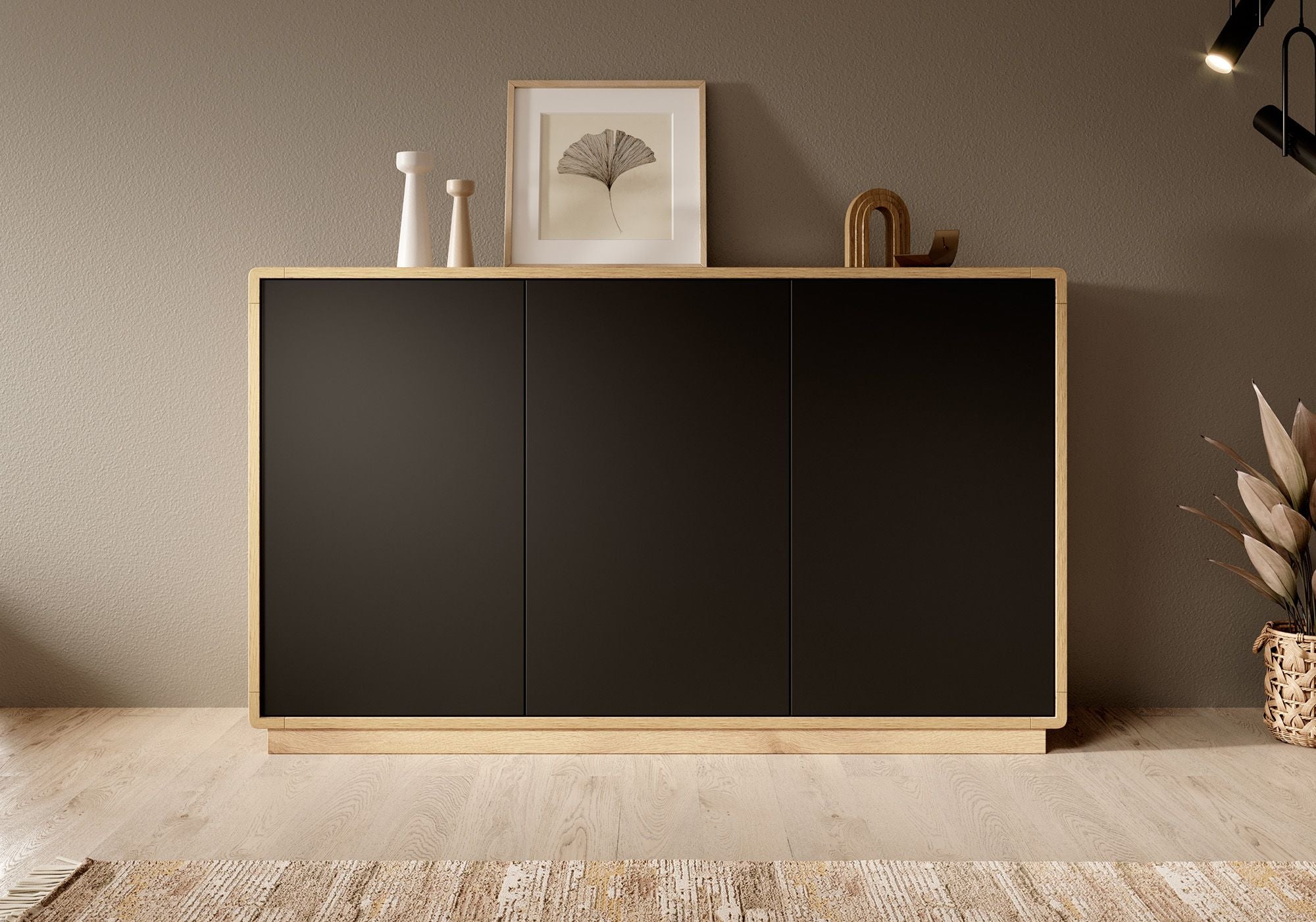 Meubella Dressoir Acuna - Mat zwart - Eiken - 160 cm