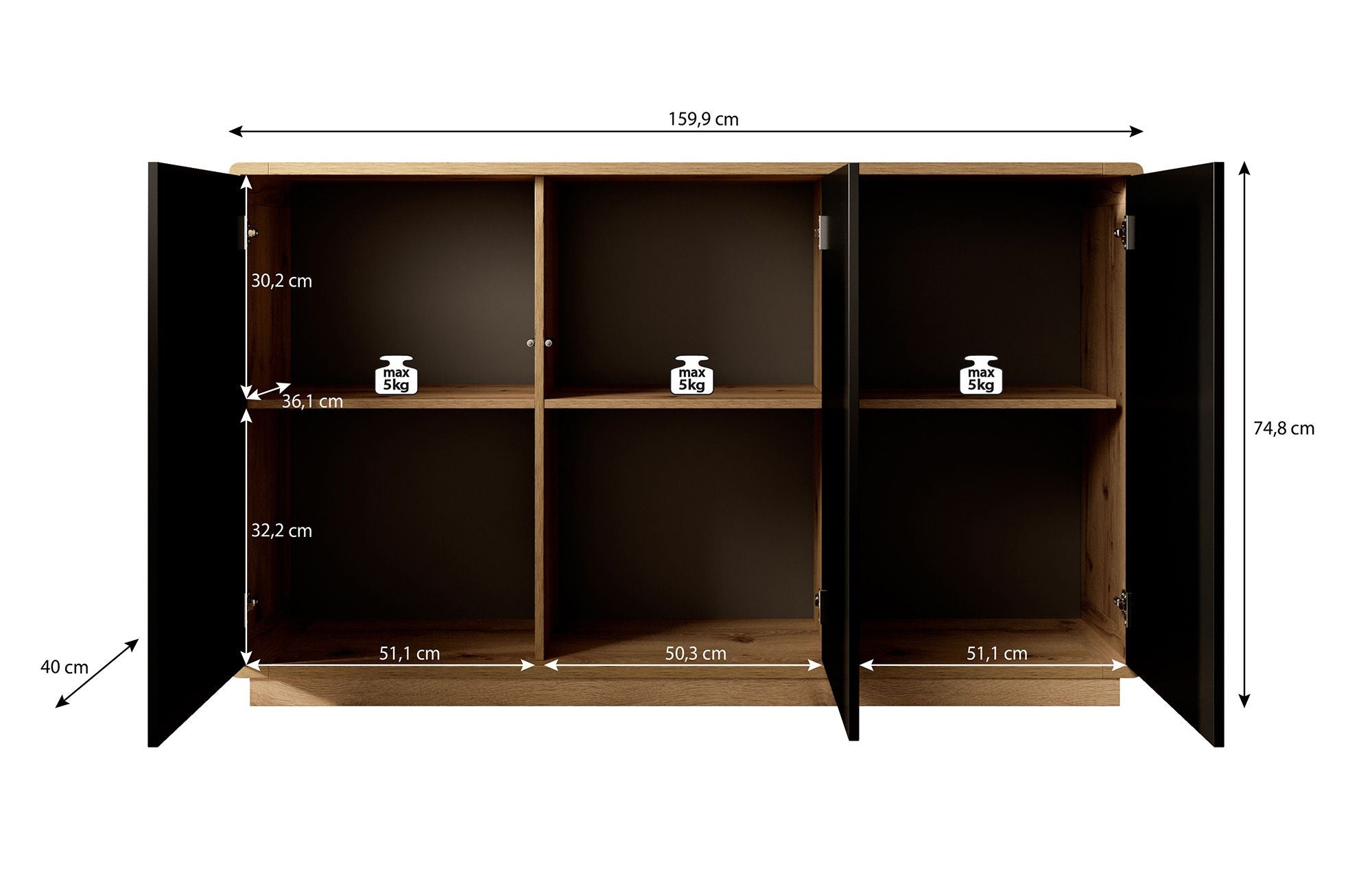 | Maat | H 75 x B 160 x D 40 cm |