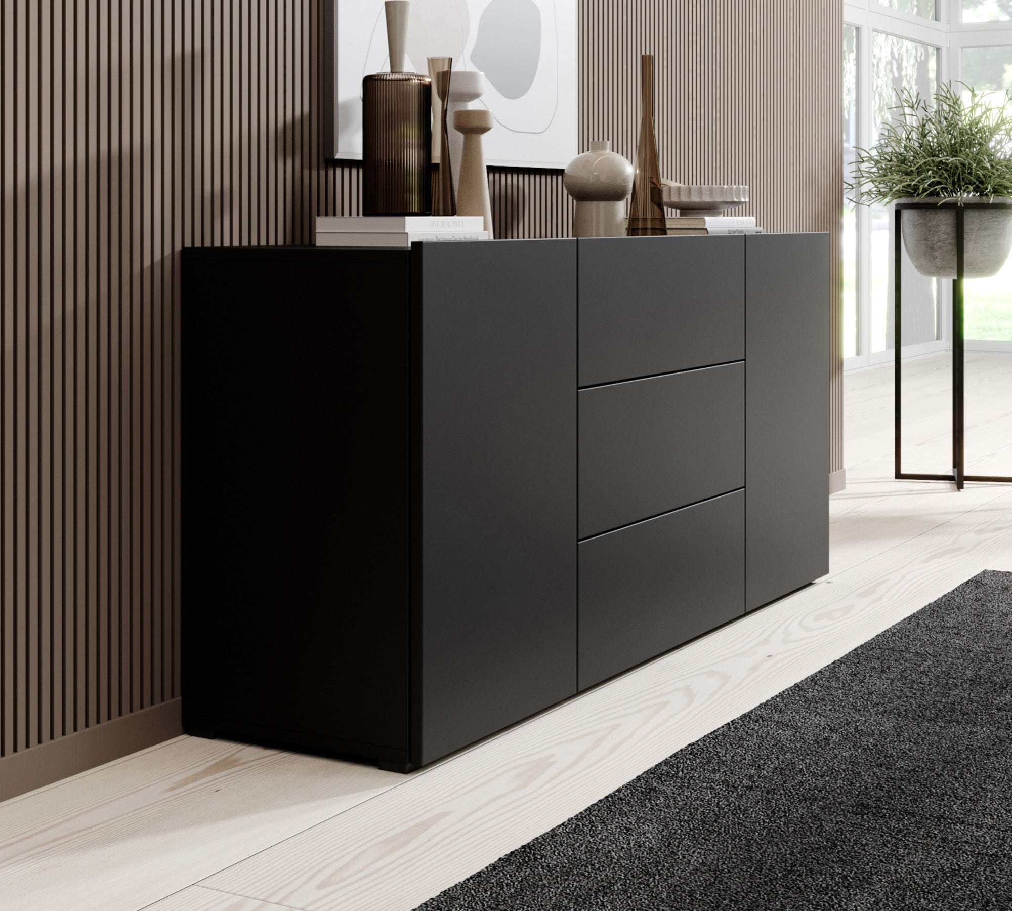 Meubella Dressoir Asilento - Mat zwart - 140 cm