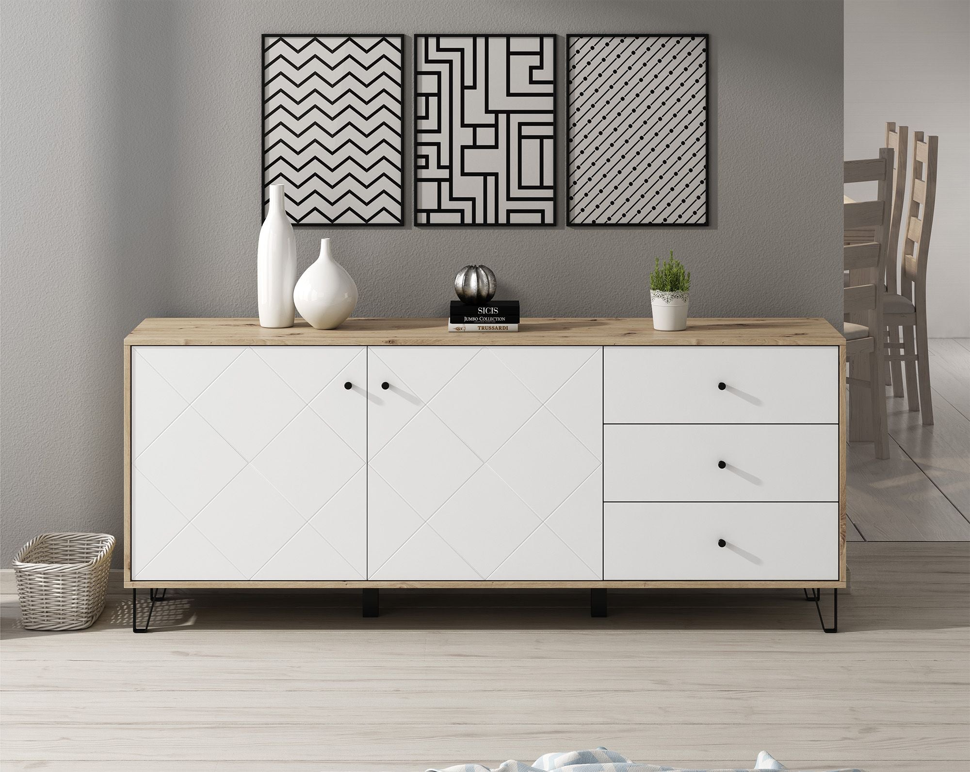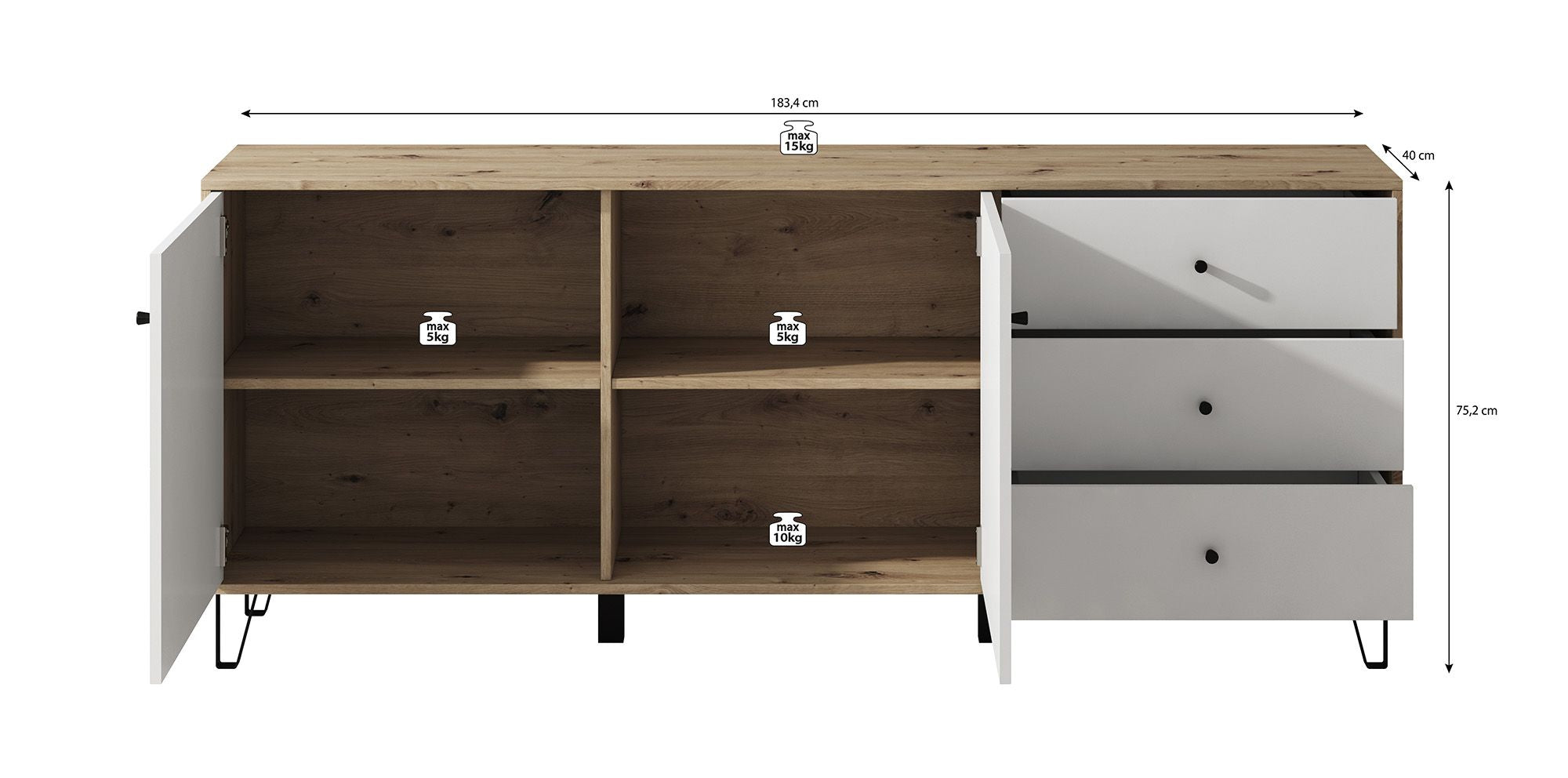 Meubella - Dressoir Barlo - Wit - Eiken - 183 cm
