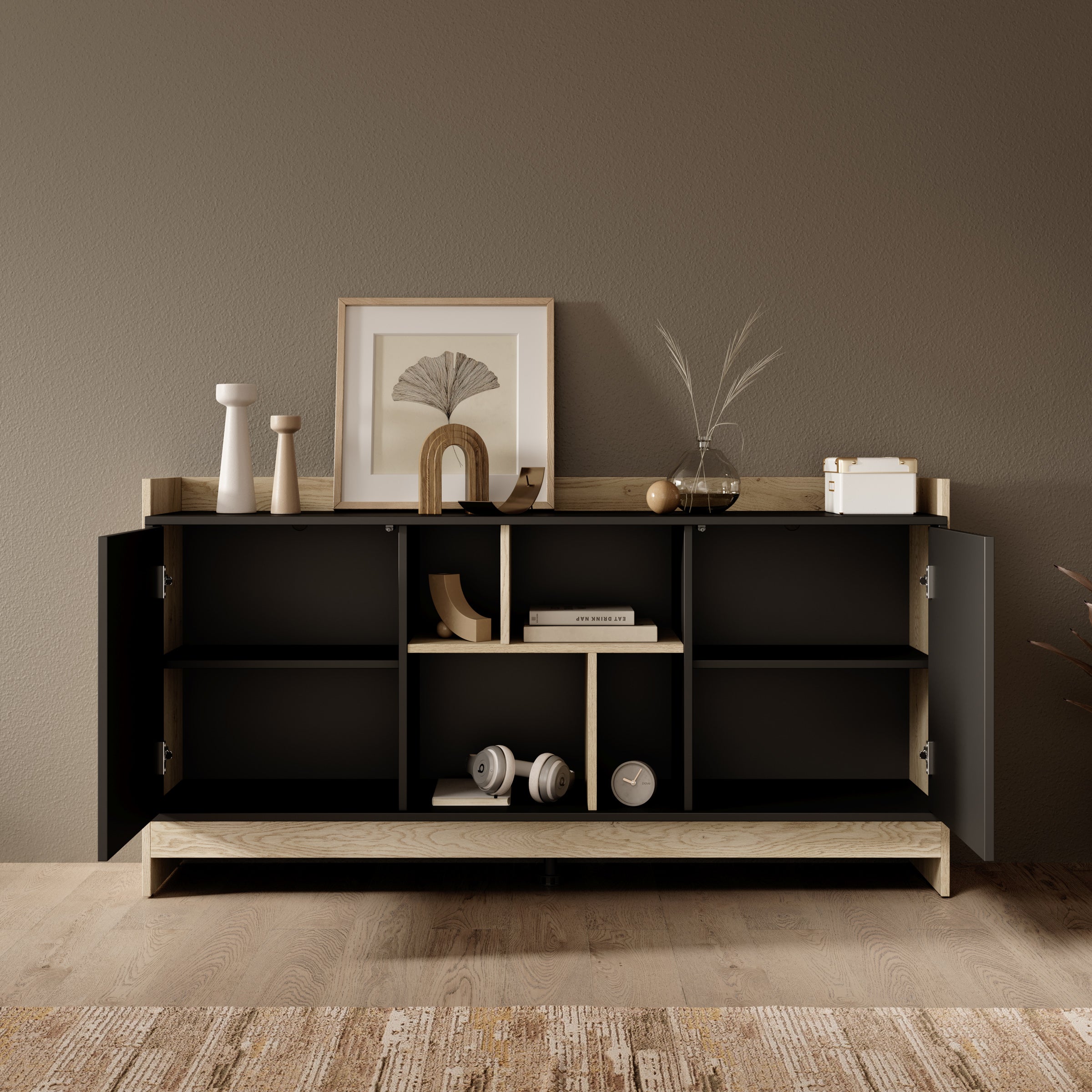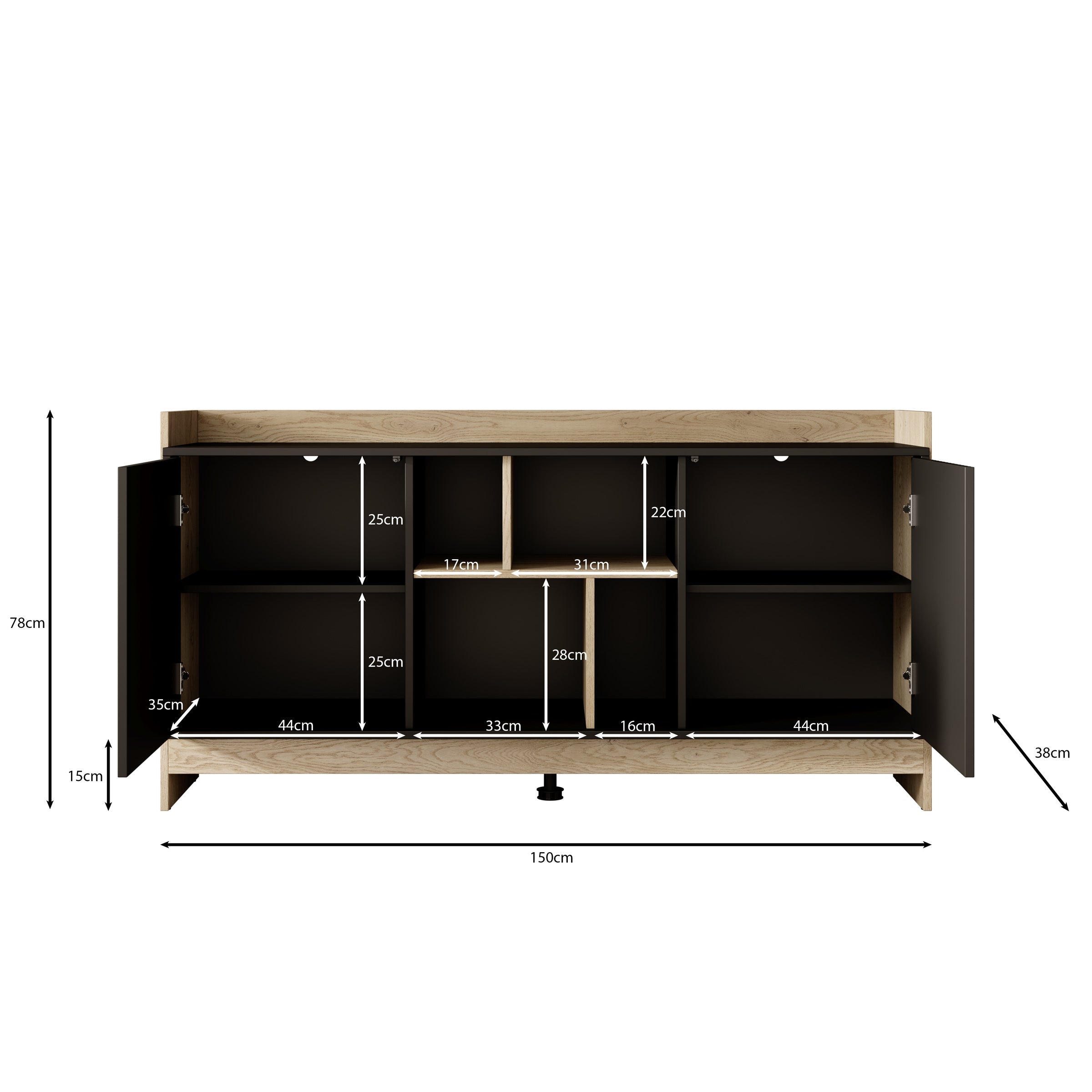 Meubella - Dressoir Benz - Zwart - 150 cm
