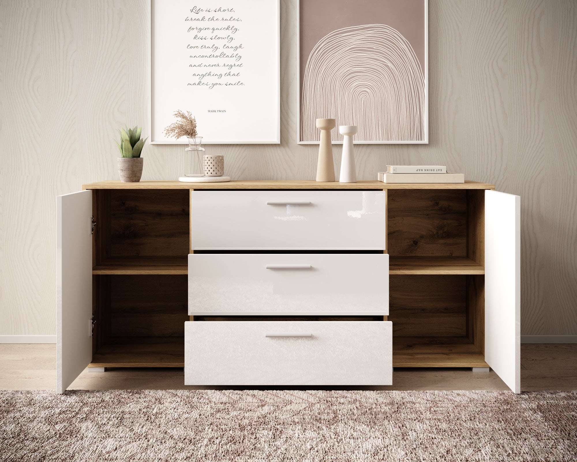 Meubella Dressoir Betty - Wit 2 - 150 cm