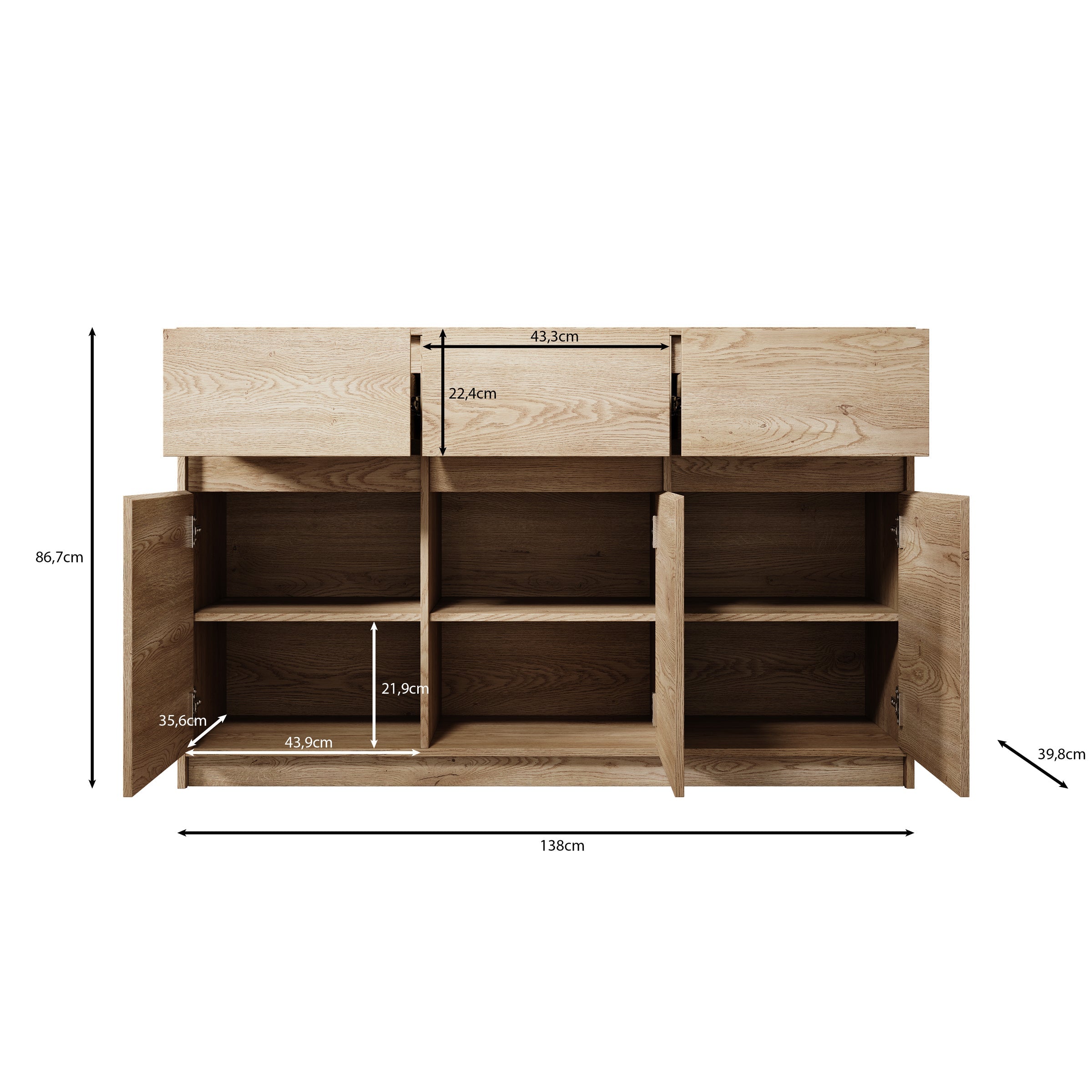 Meubella - Dressoir Cuarto 2 - Eiken - 138 cm