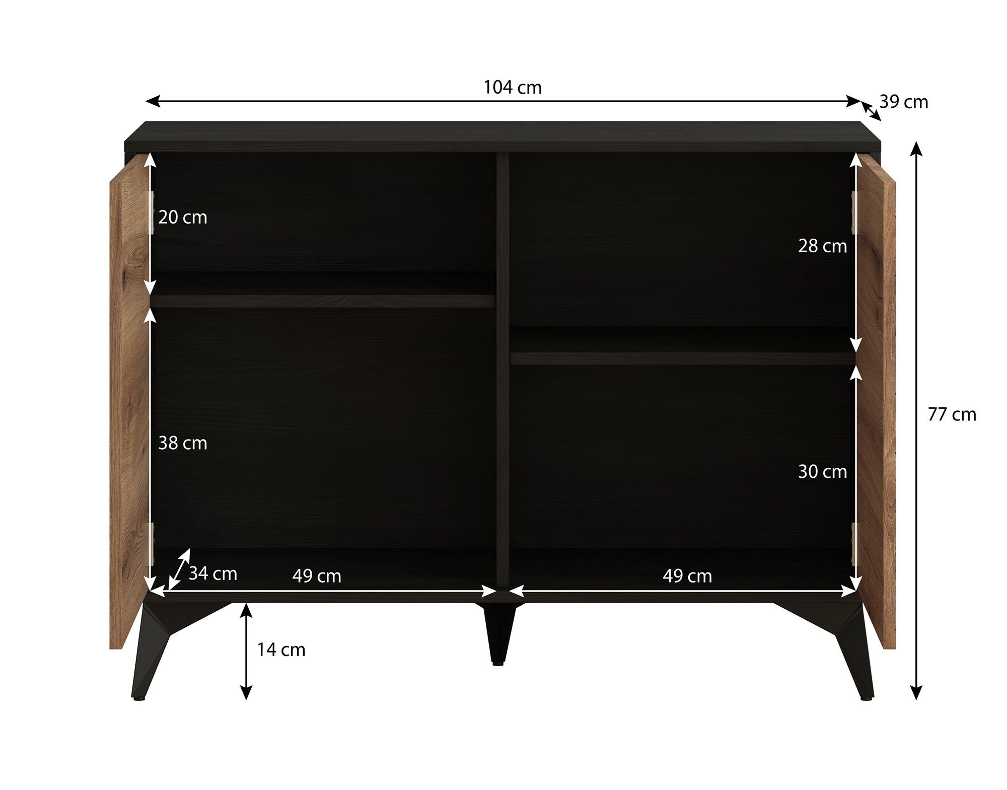 Meubella - Dressoir Dolores - Eiken - Zwart - 104 cm