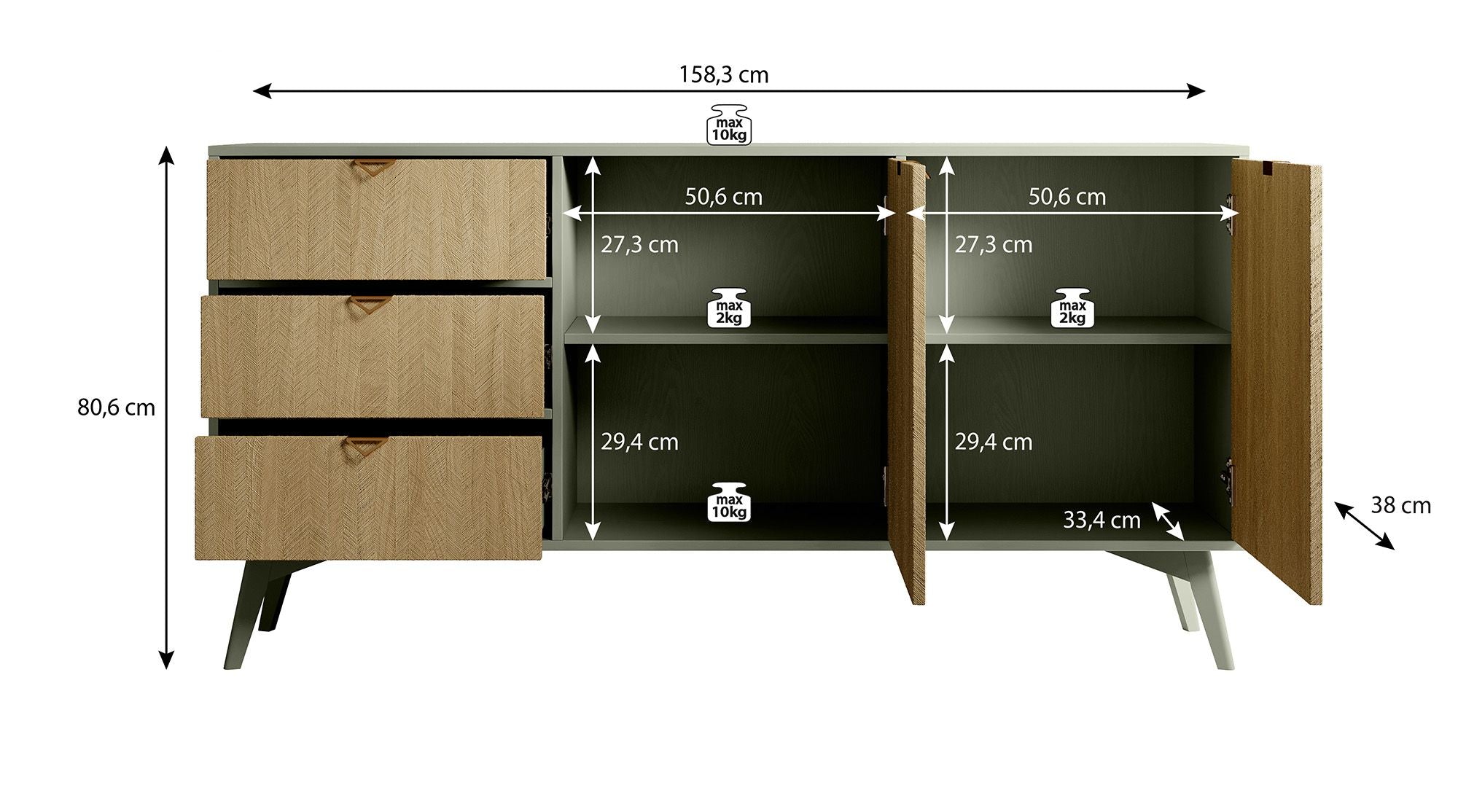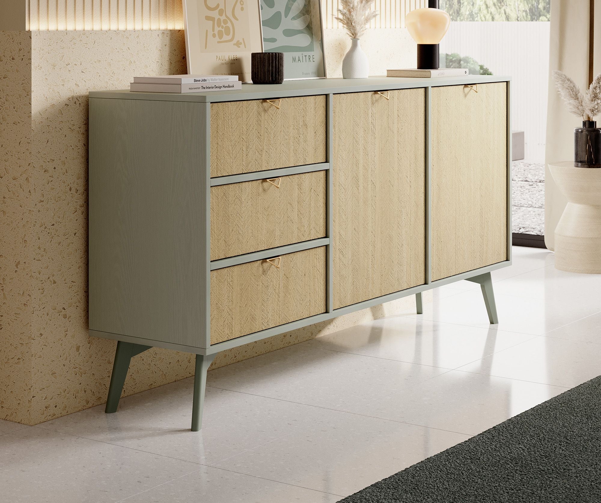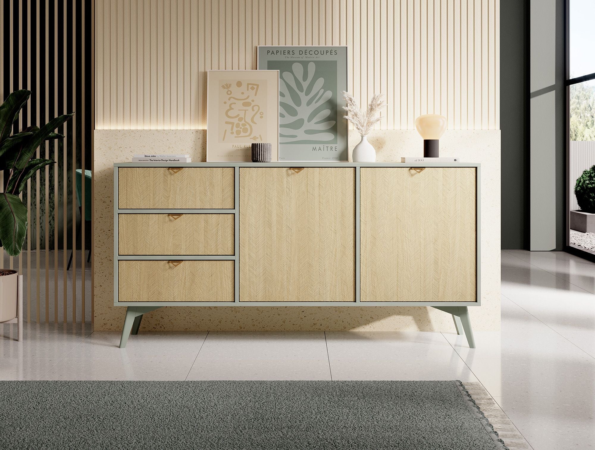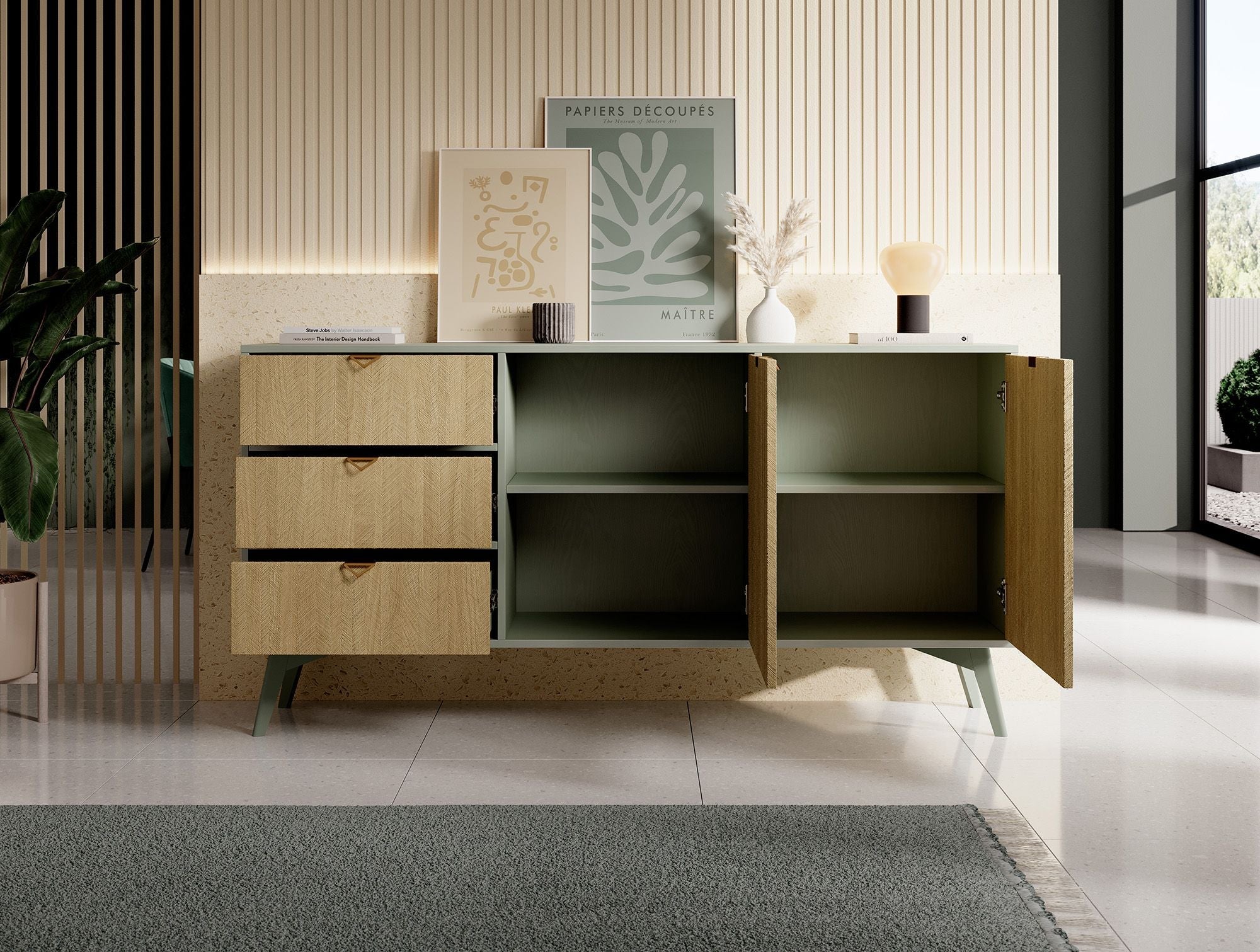 Meubella - Dressoir Essence - Groen - Licht eiken - 158 cm