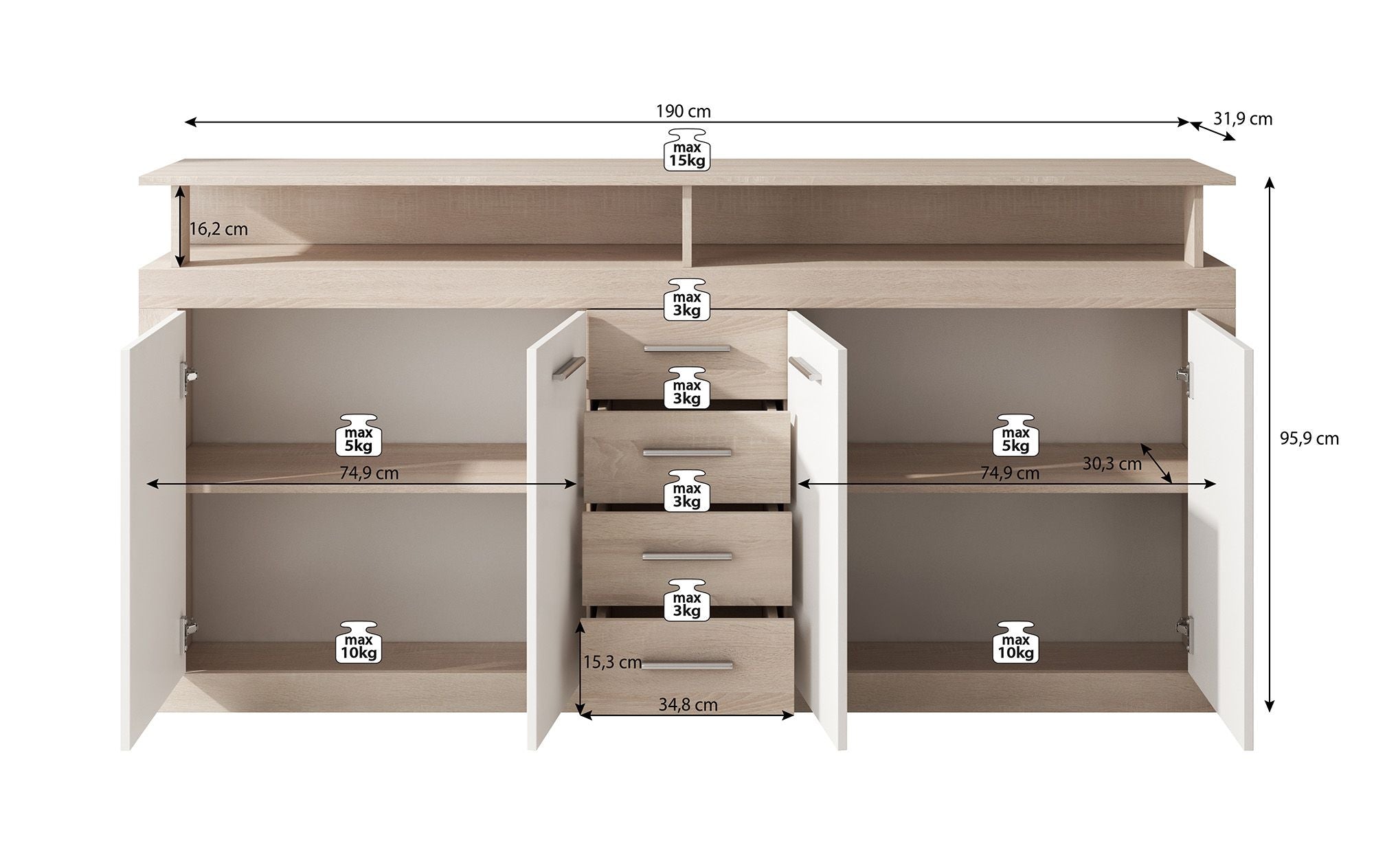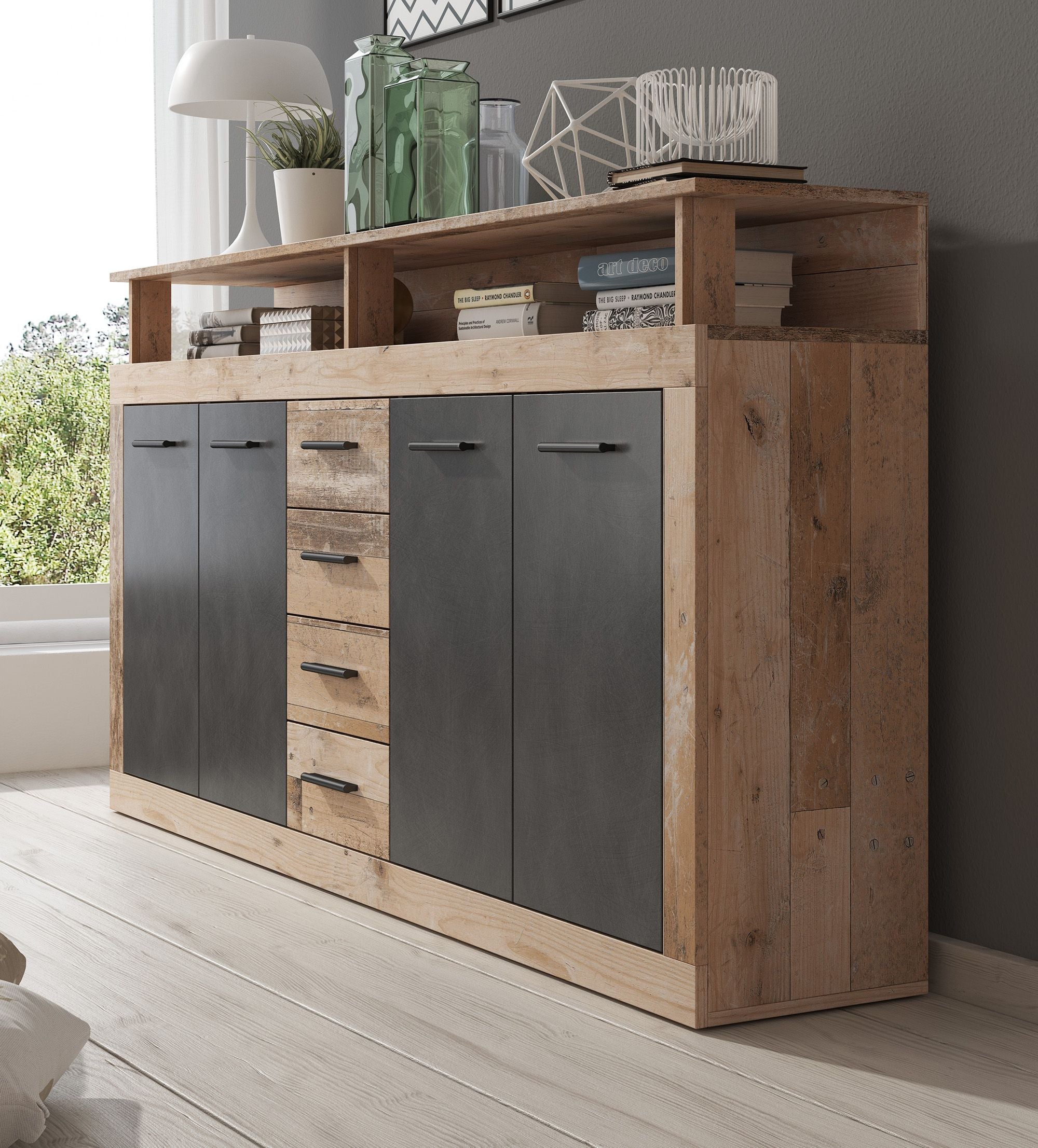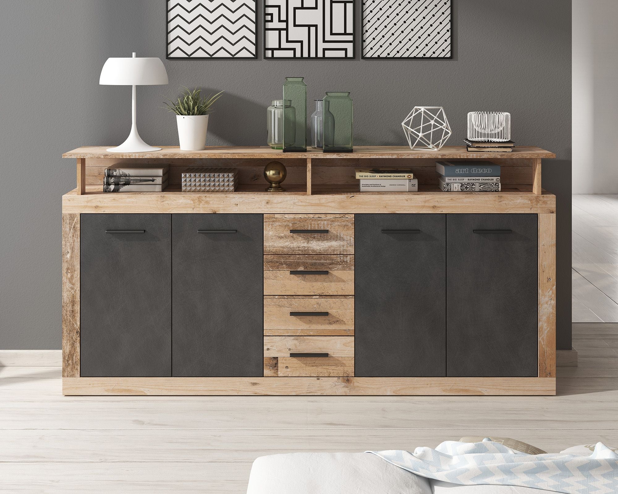 Meubella - Dressoir Lavina - Grijs - Old wood - 190 cm