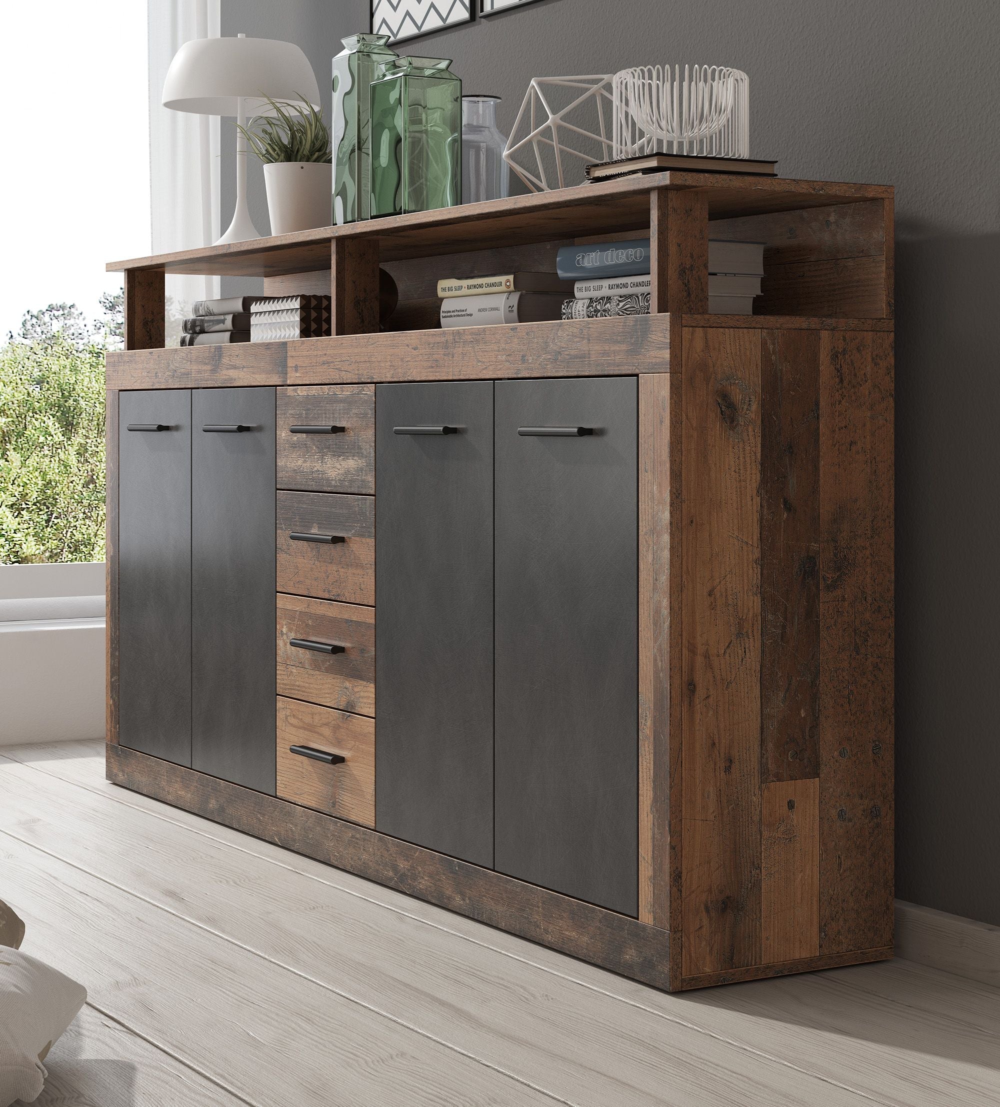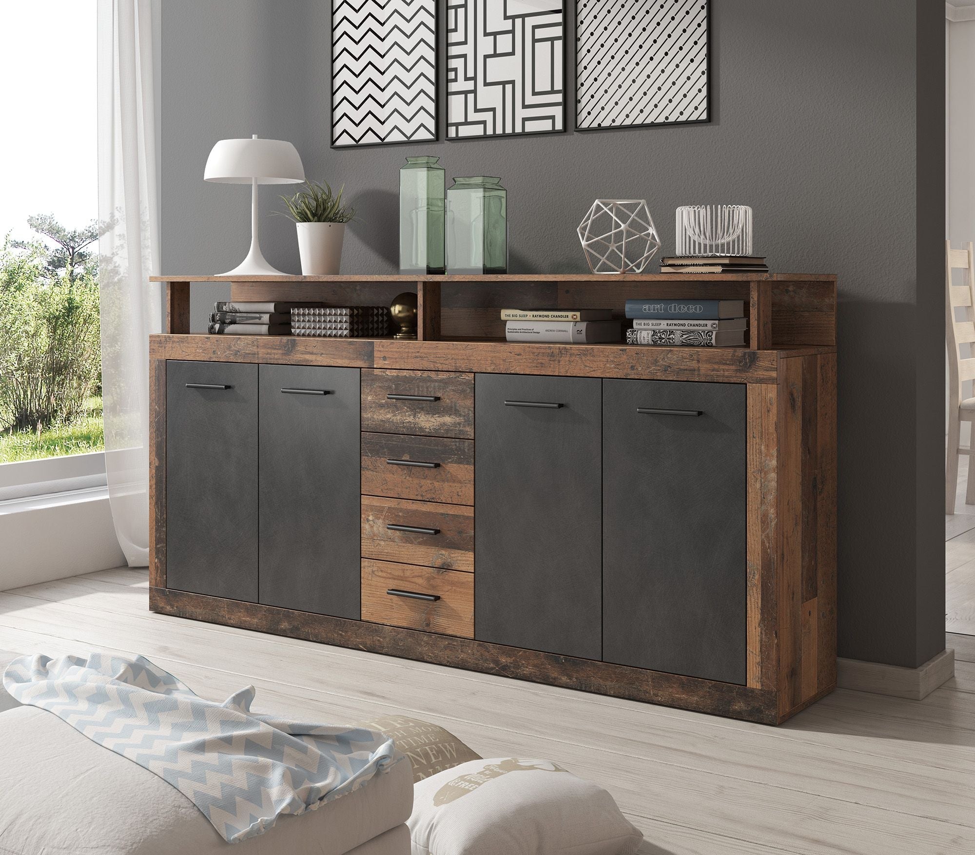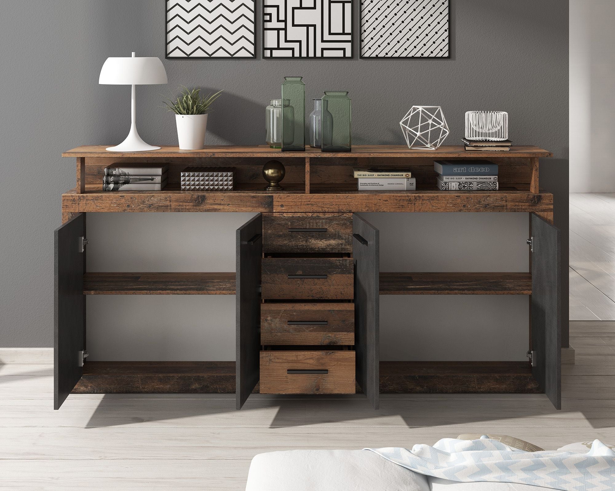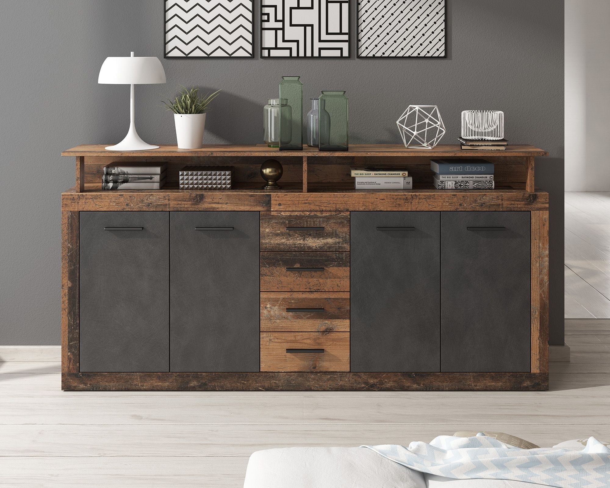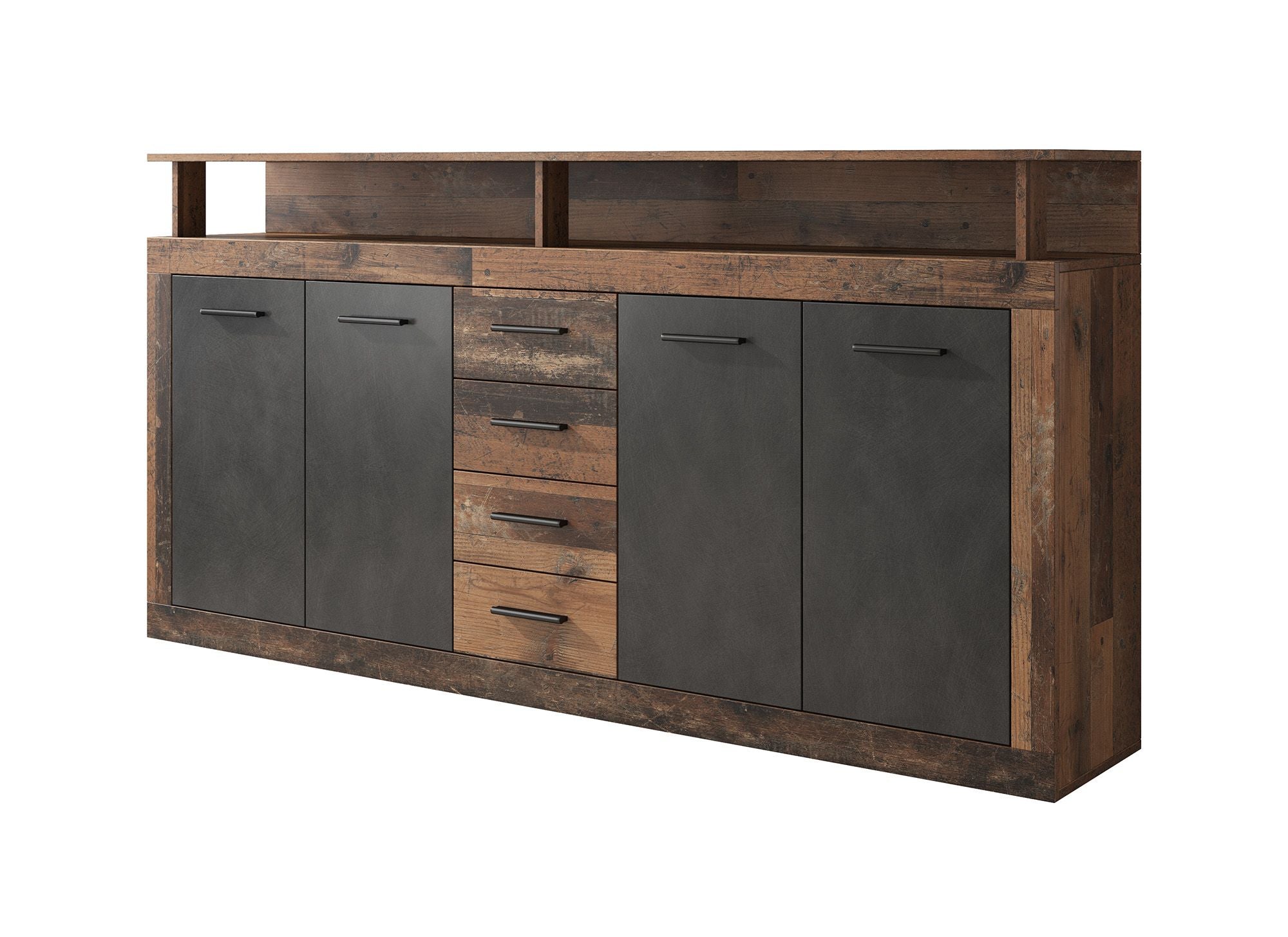 Meubella - Dressoir Lavina - Old wood - Antraciet - 190 cm