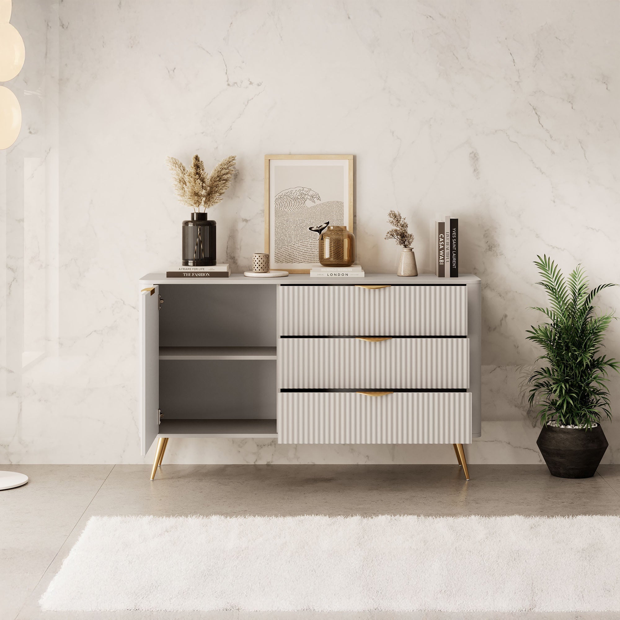- Goudkleurige handgrepen