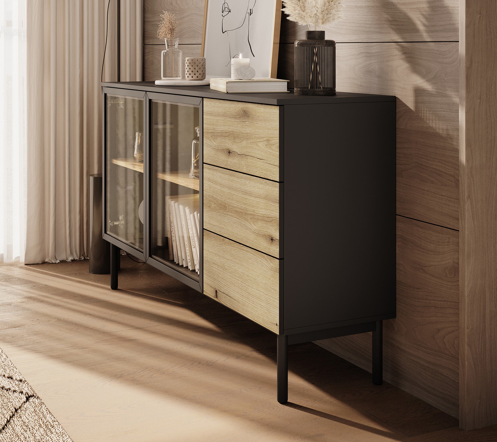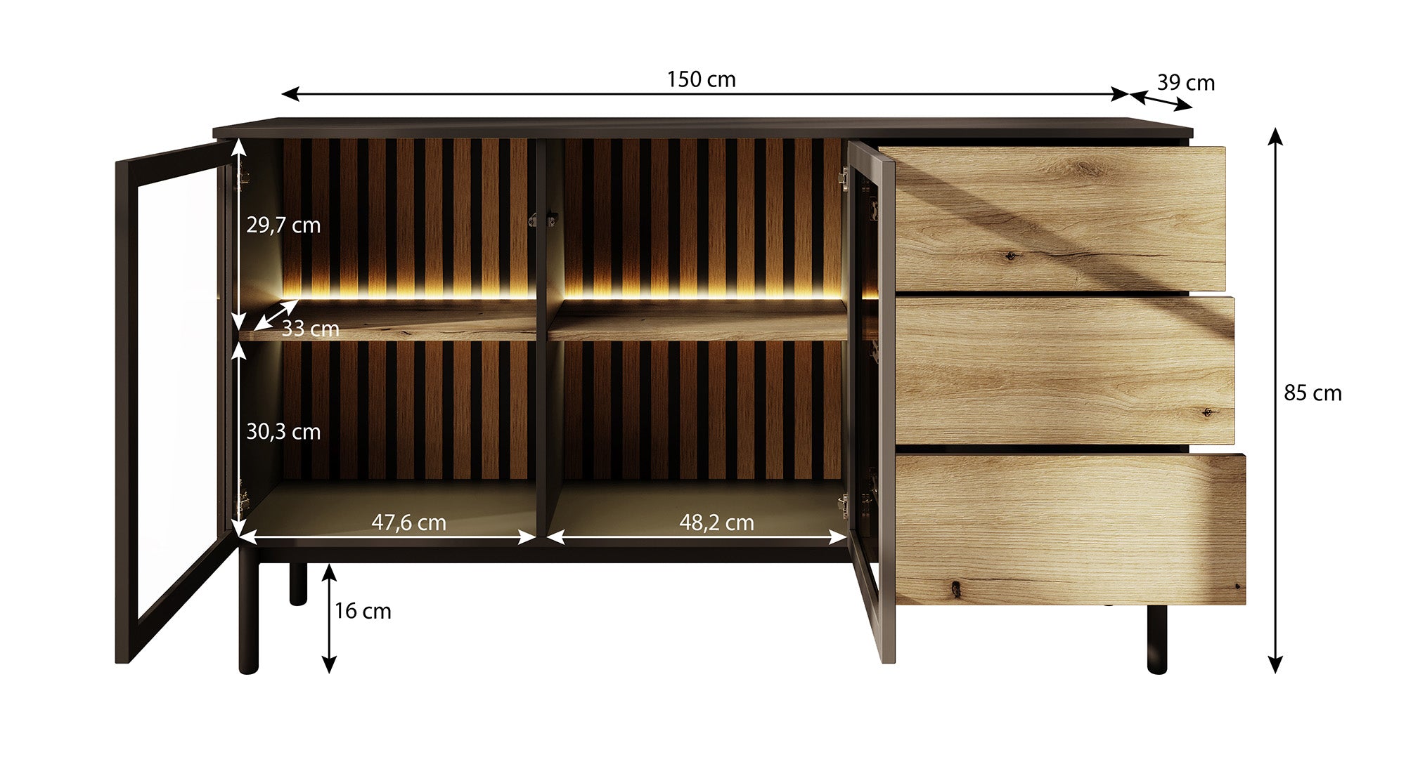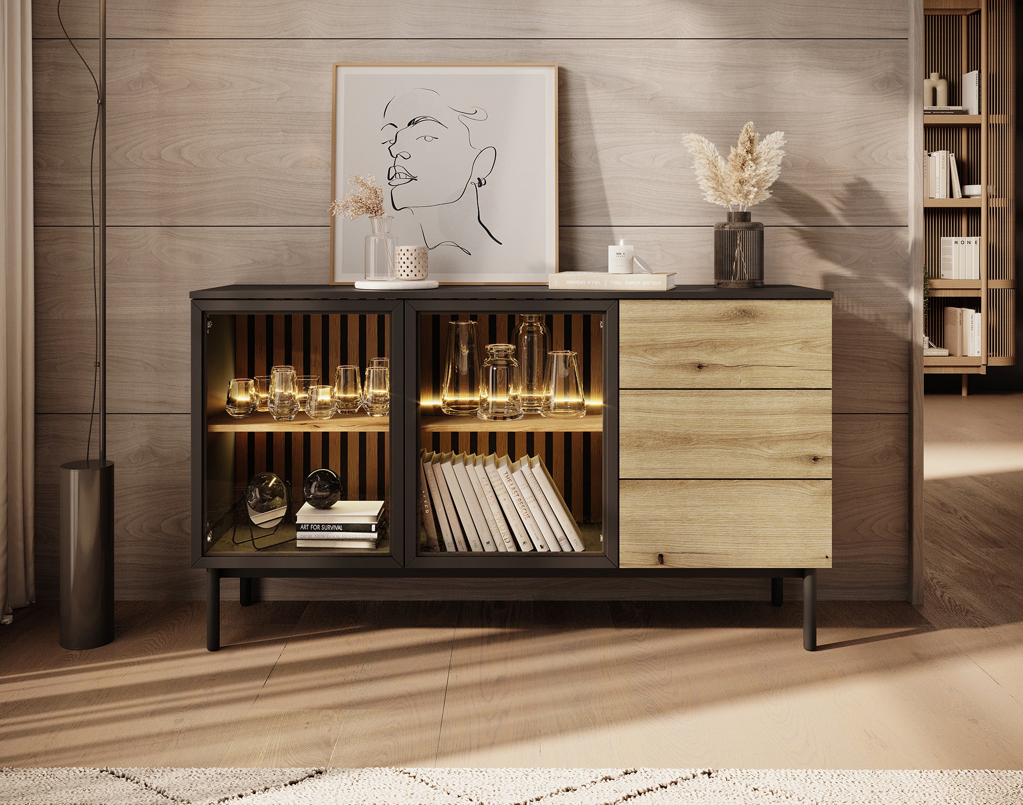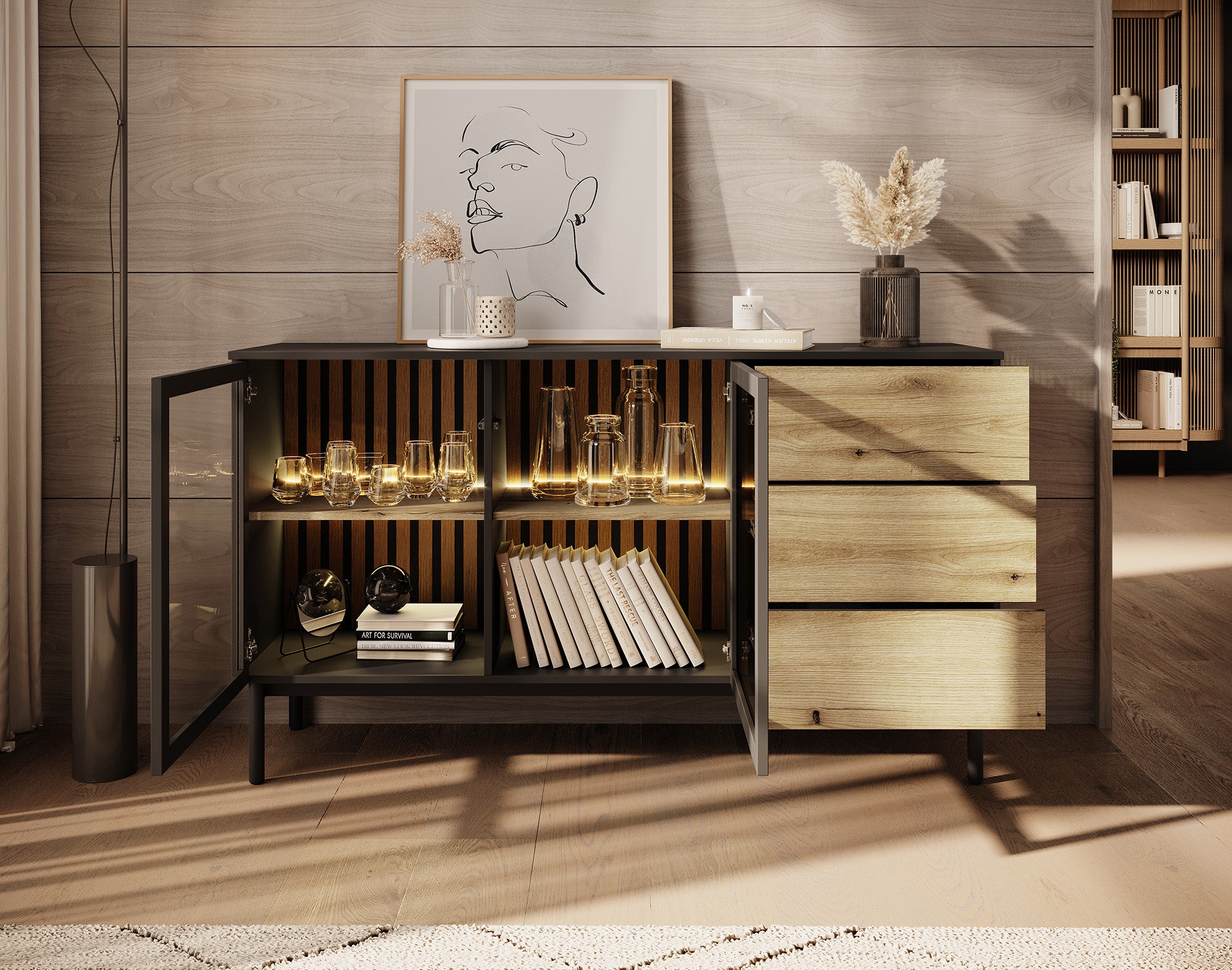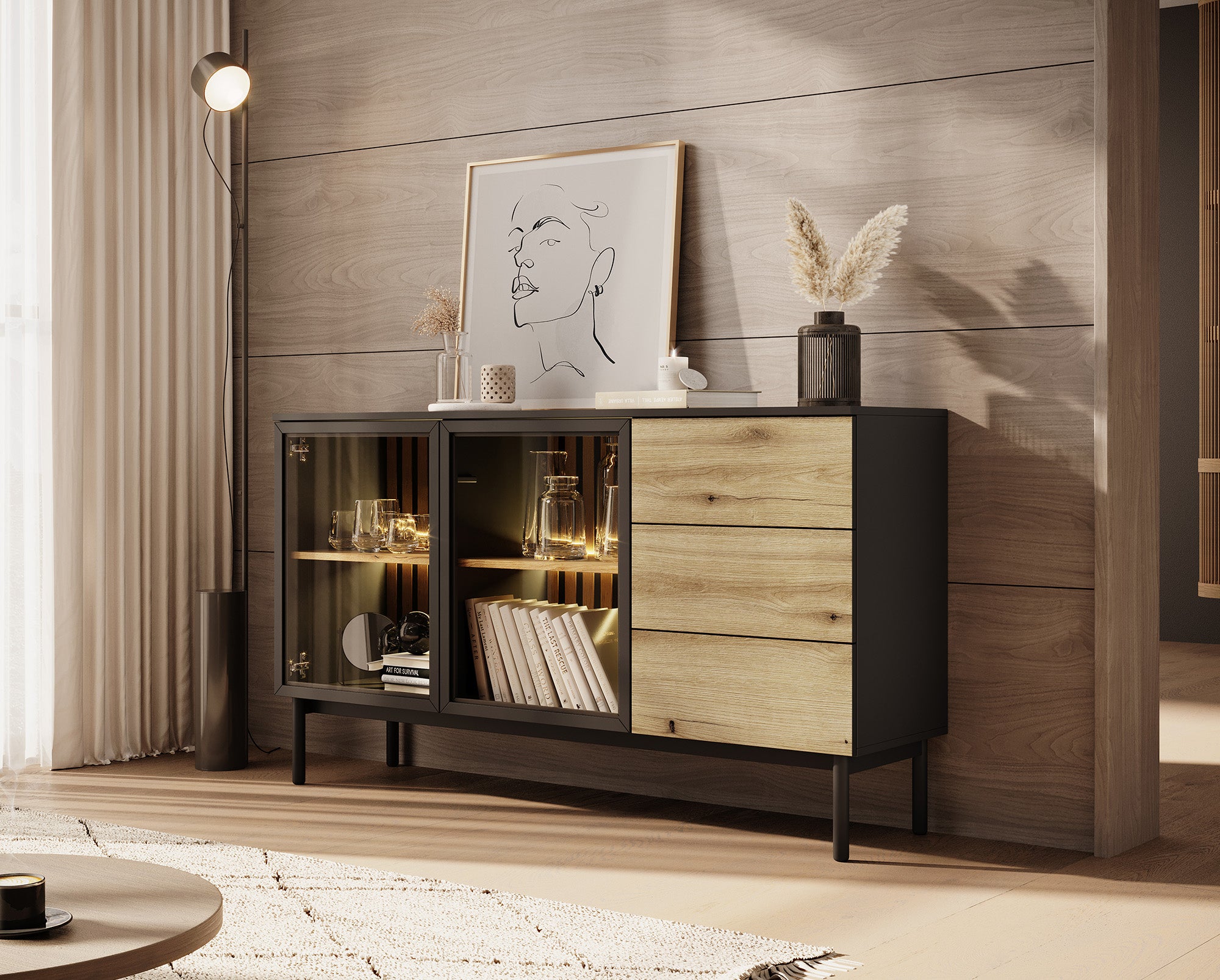 Meubella Dressoir Ludwig - Zwart - Eiken - 150 cm