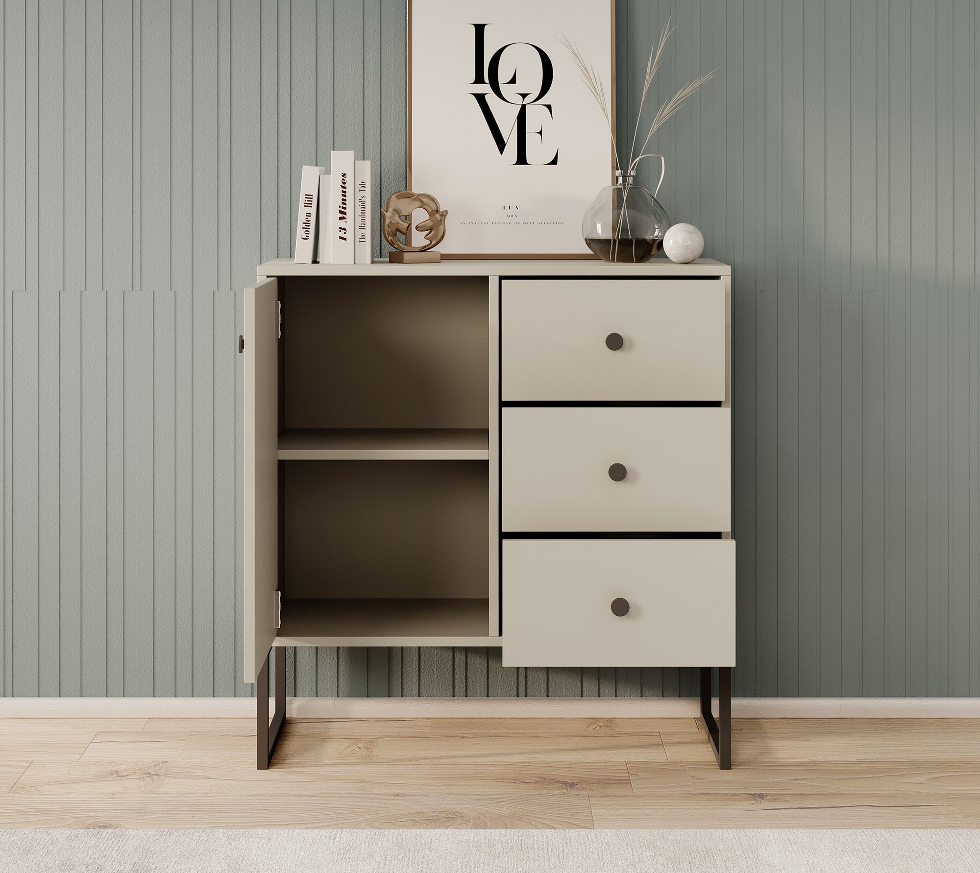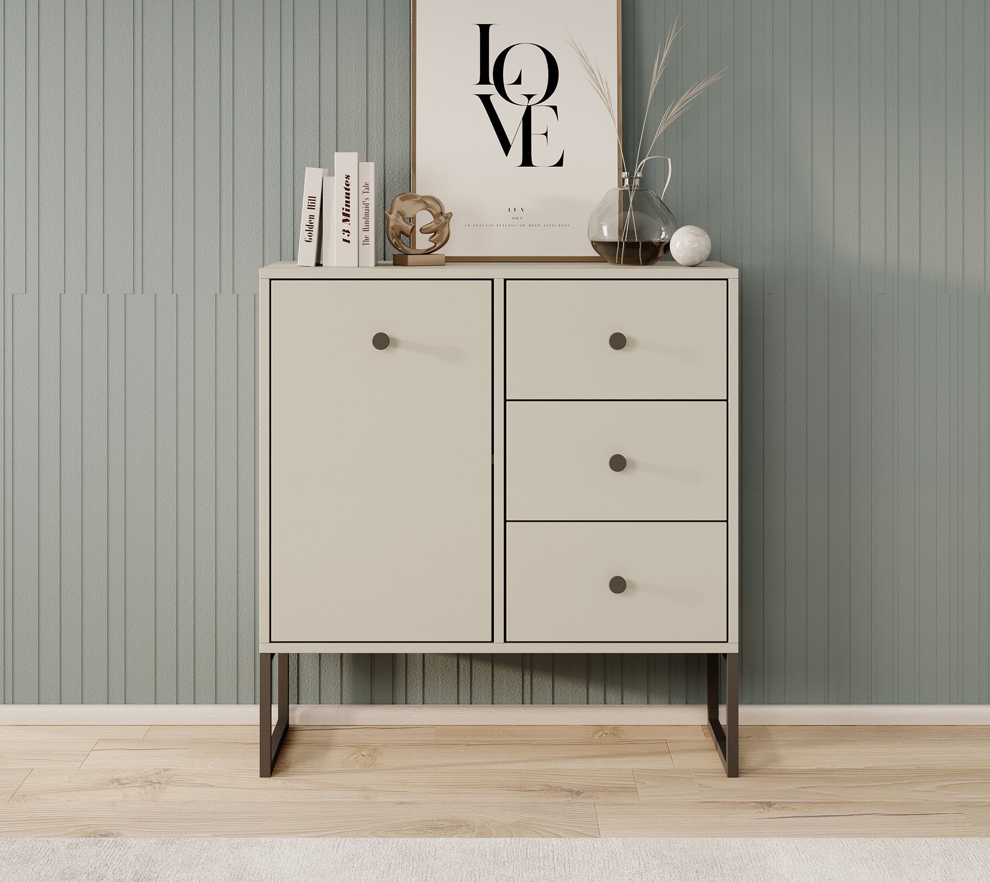 Meubella - Dressoir Lyndall - Beige - 77 cm - Met lades