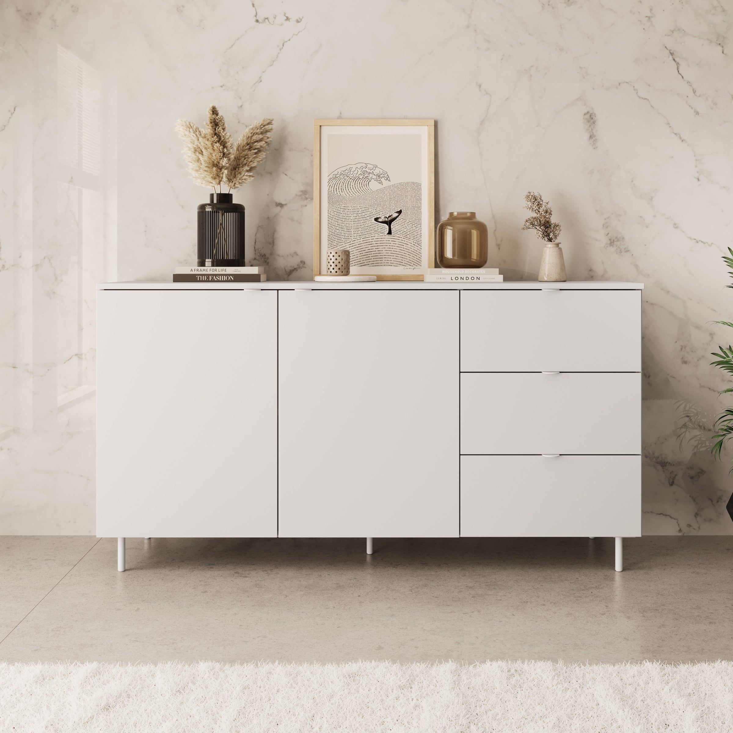 Meubella - Dressoir Malvare - Wit - 150 cm - Met lades