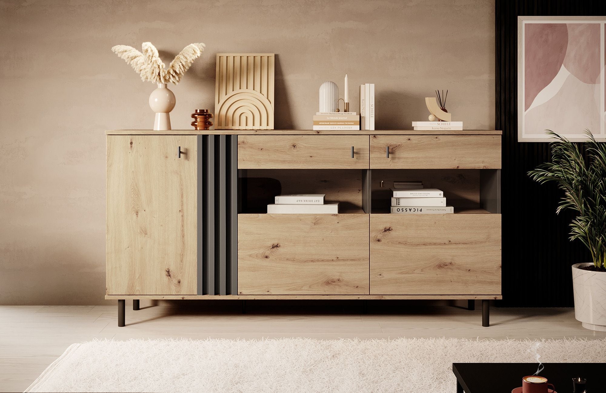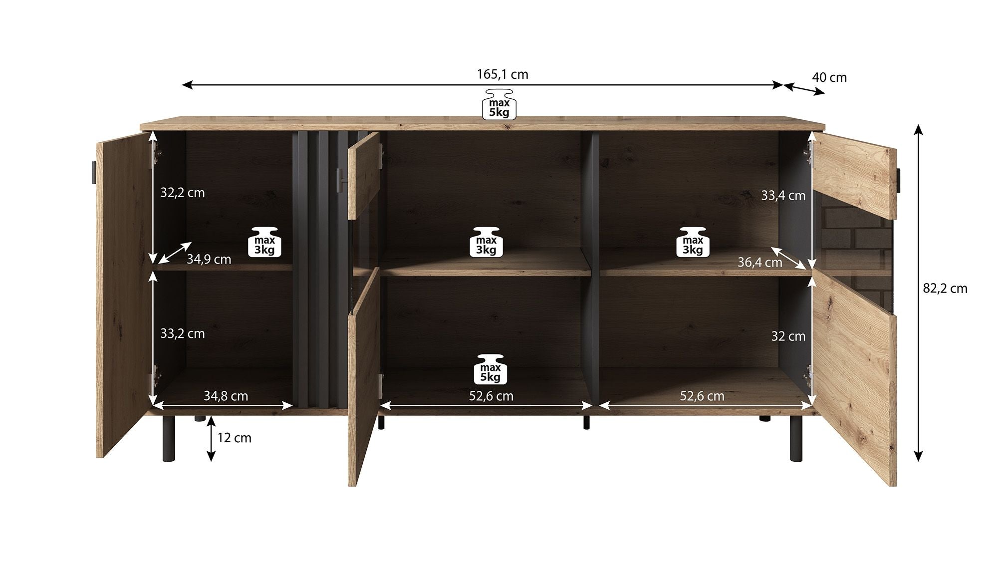 | Uitvoeringen | Antraciet, eiken/H 82, 2 x B 165, 1 x D 40 cm |