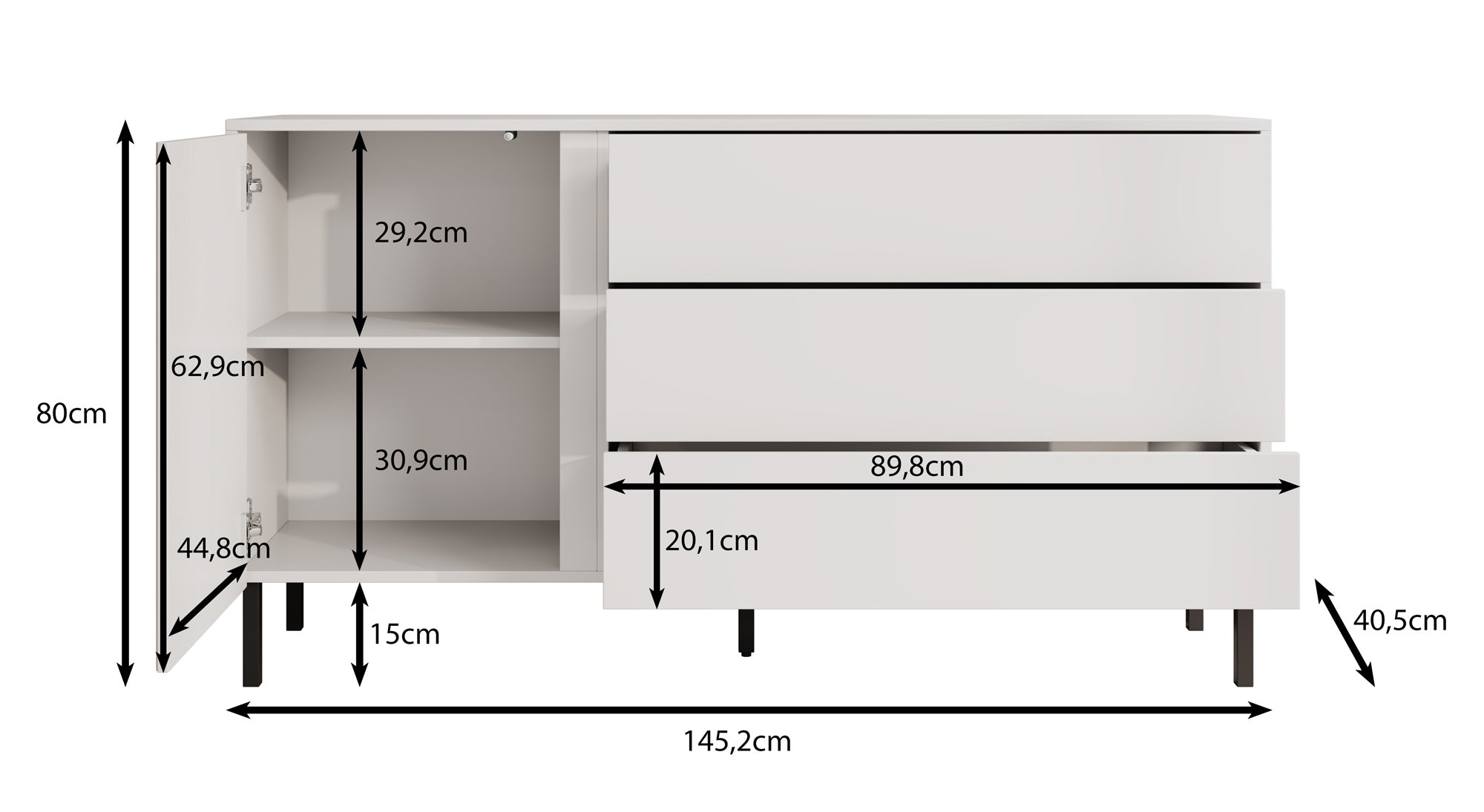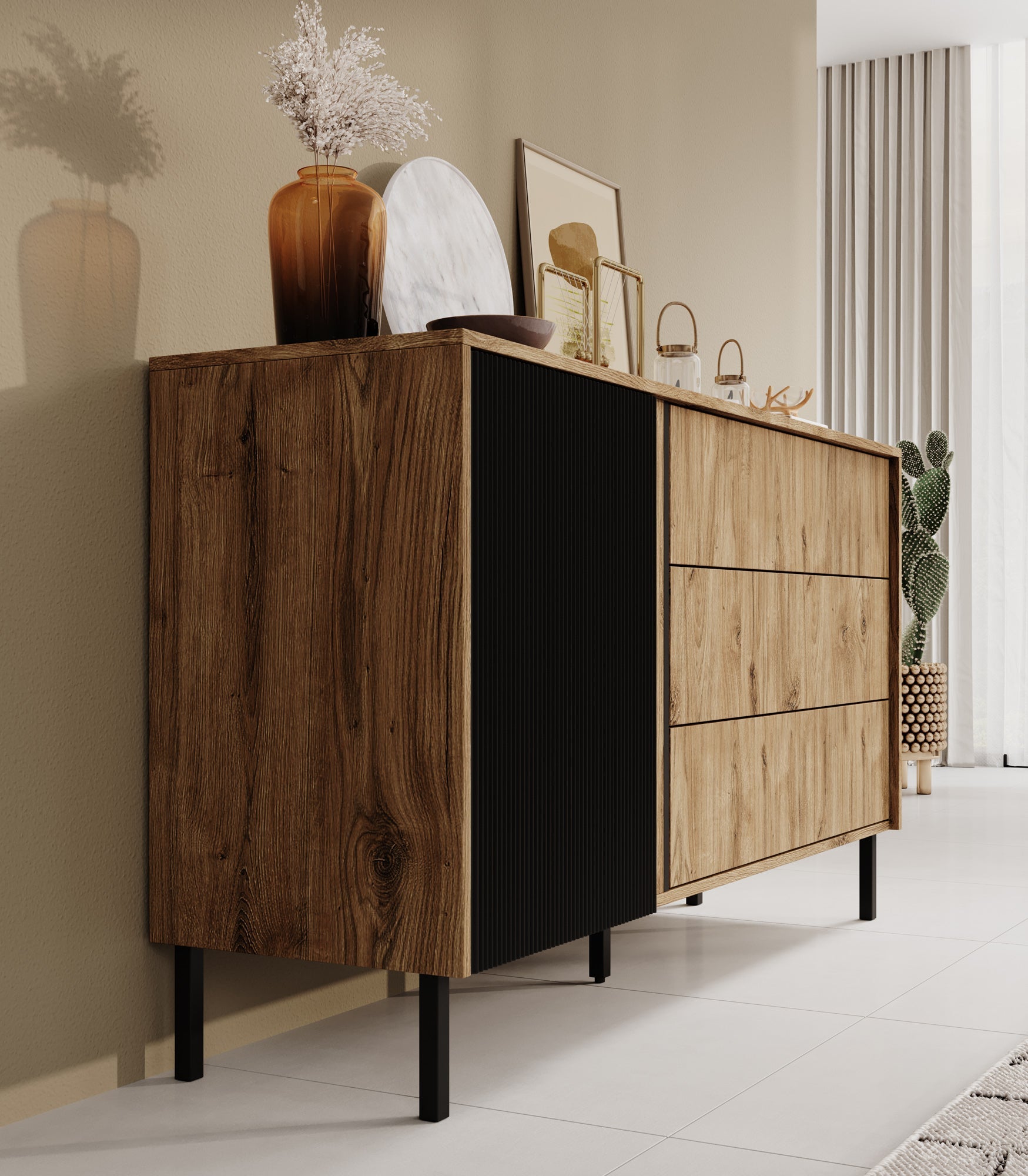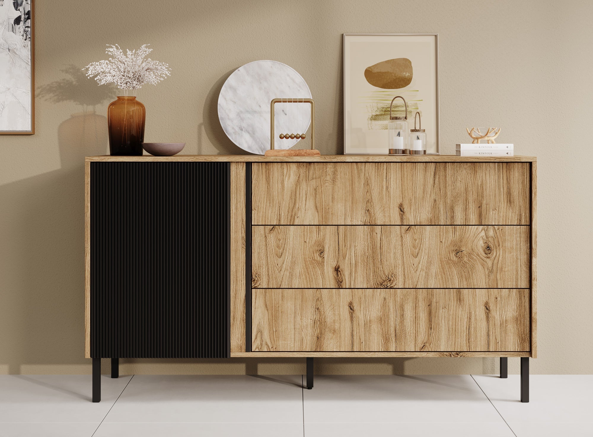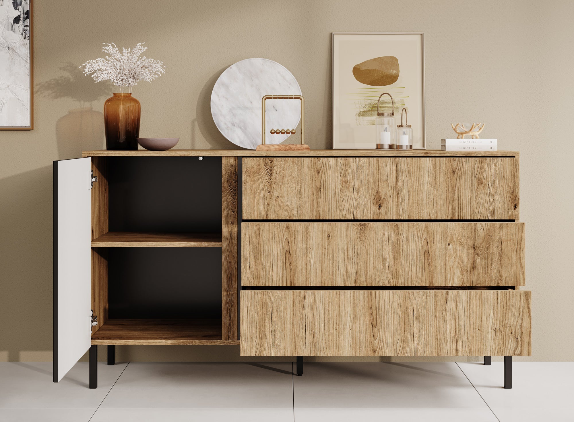 Meubella - Dressoir Margareth - Eiken - 145 cm - 3 lades