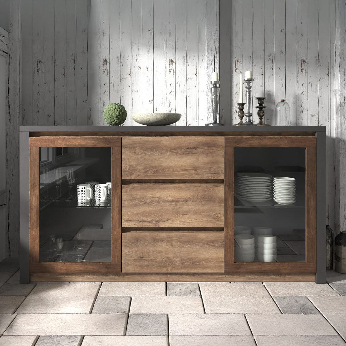 Meubella - Dressoir Monaco - Eiken - Grijs - 140 cm - Met glas