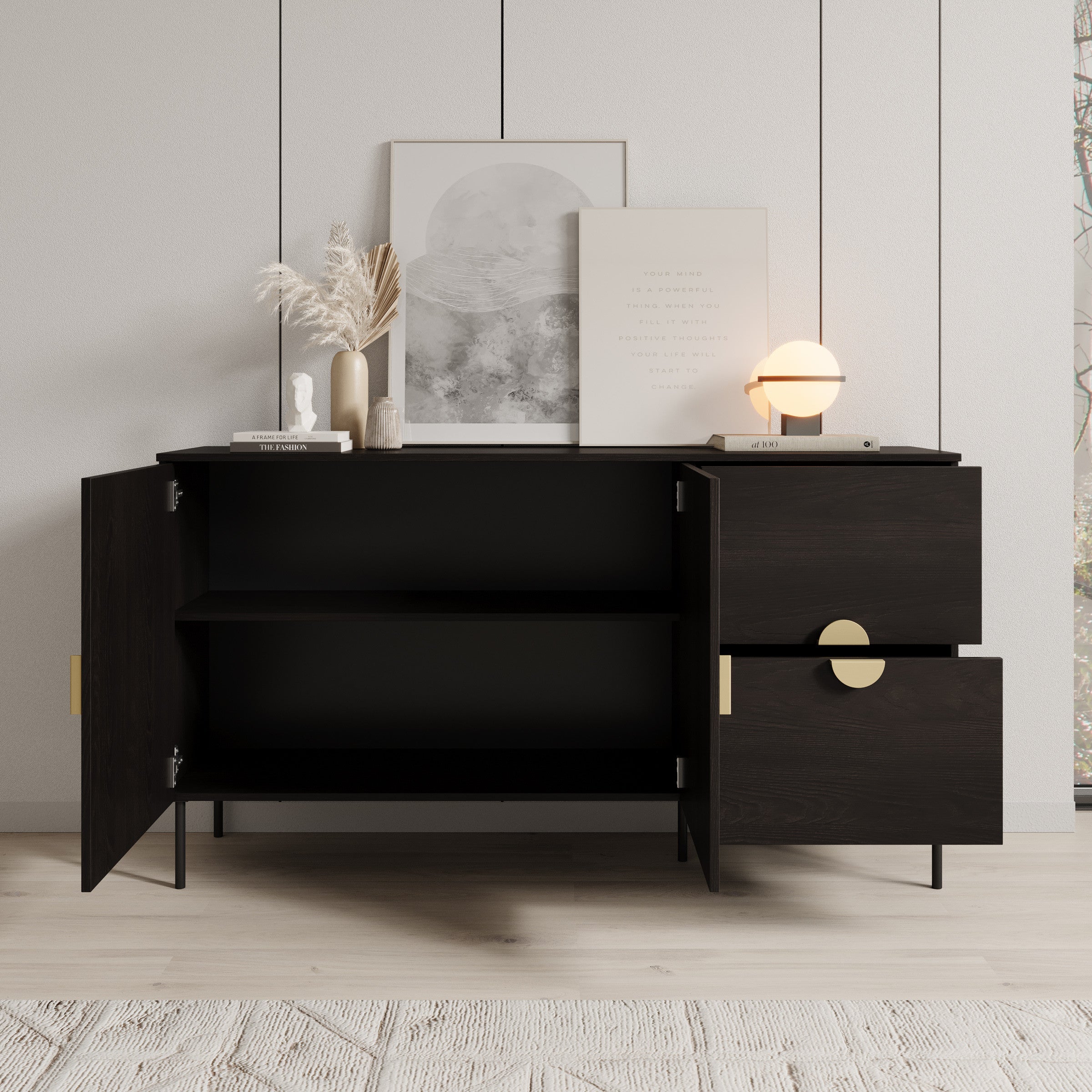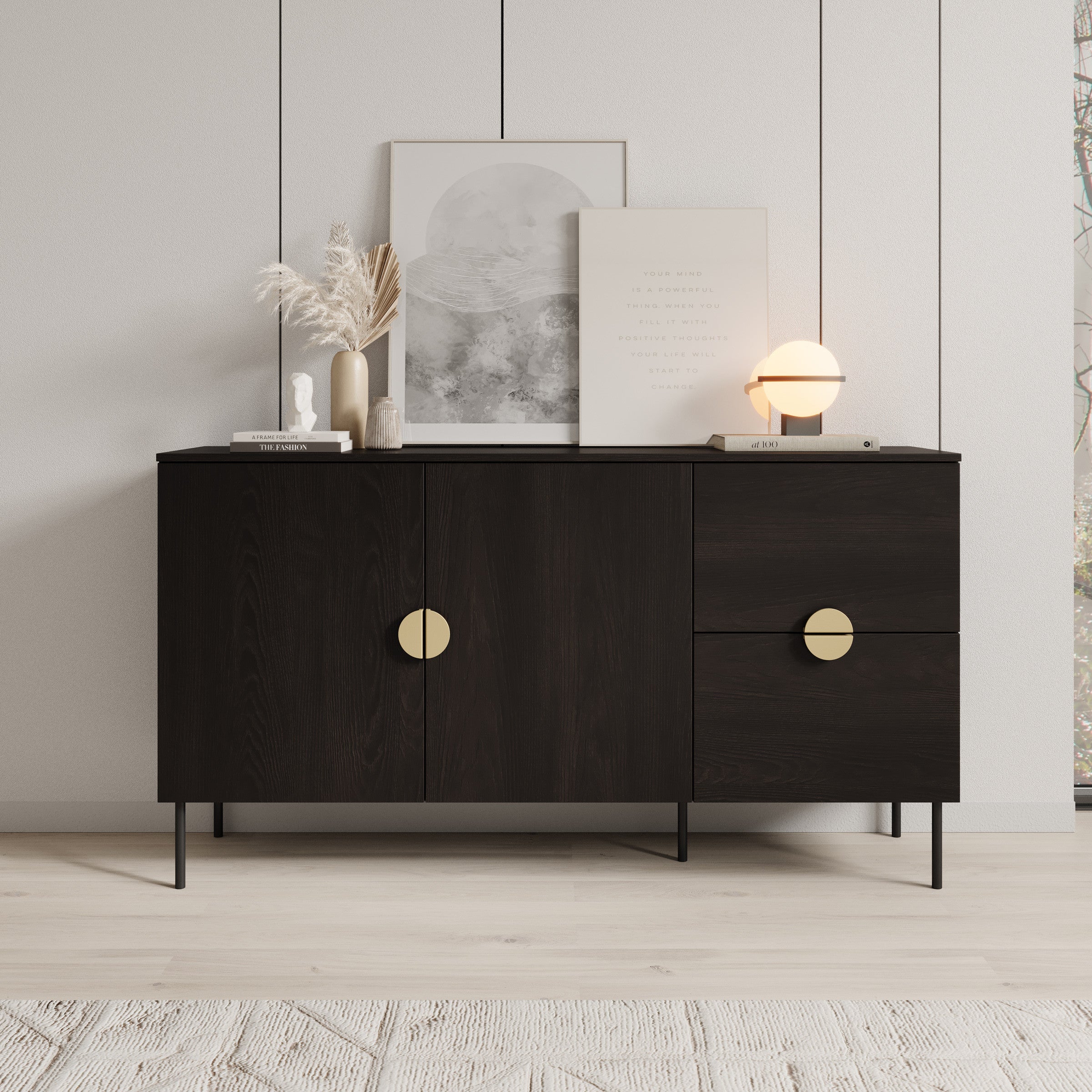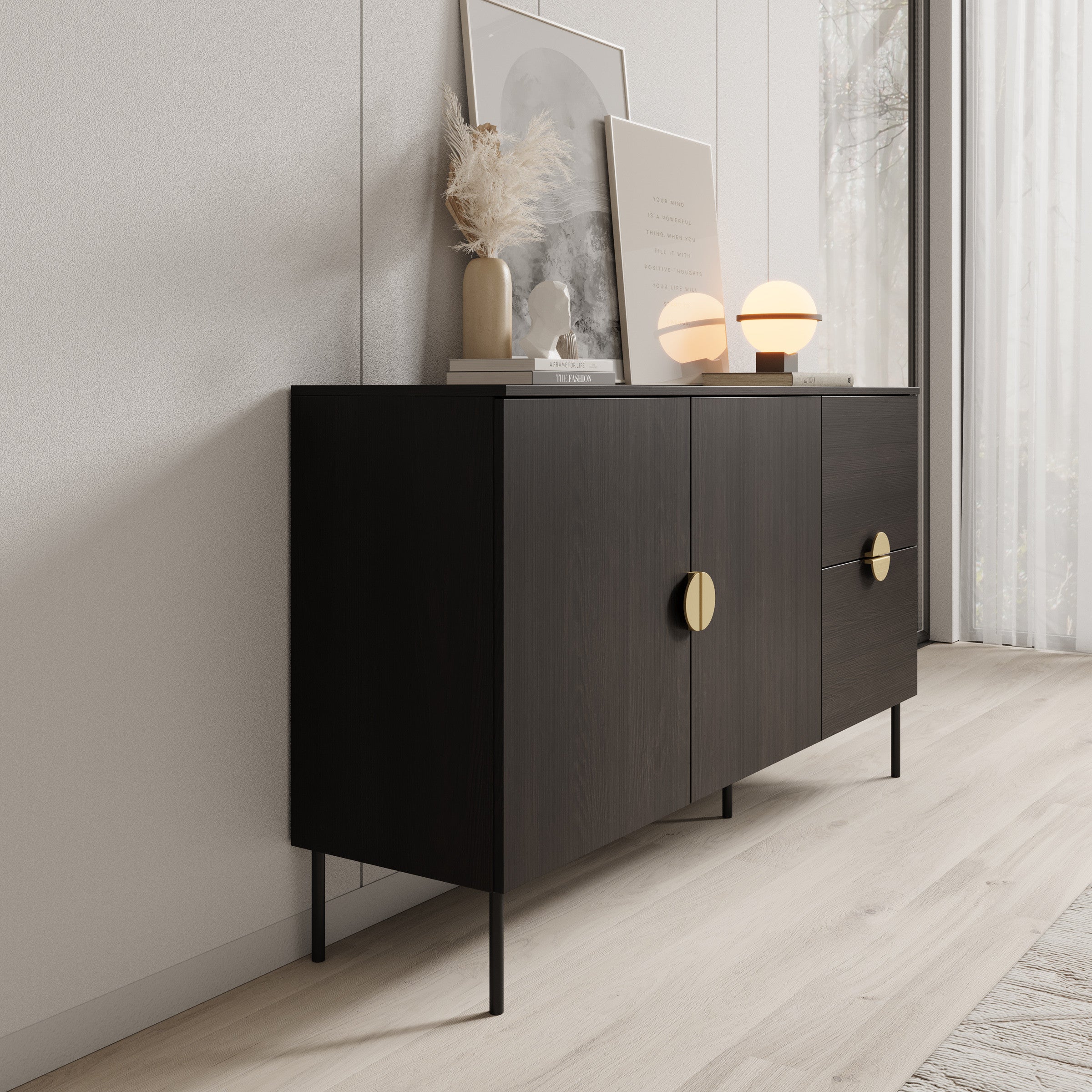Meubella - Dressoir Monor - Zwart eiken - 160 cm