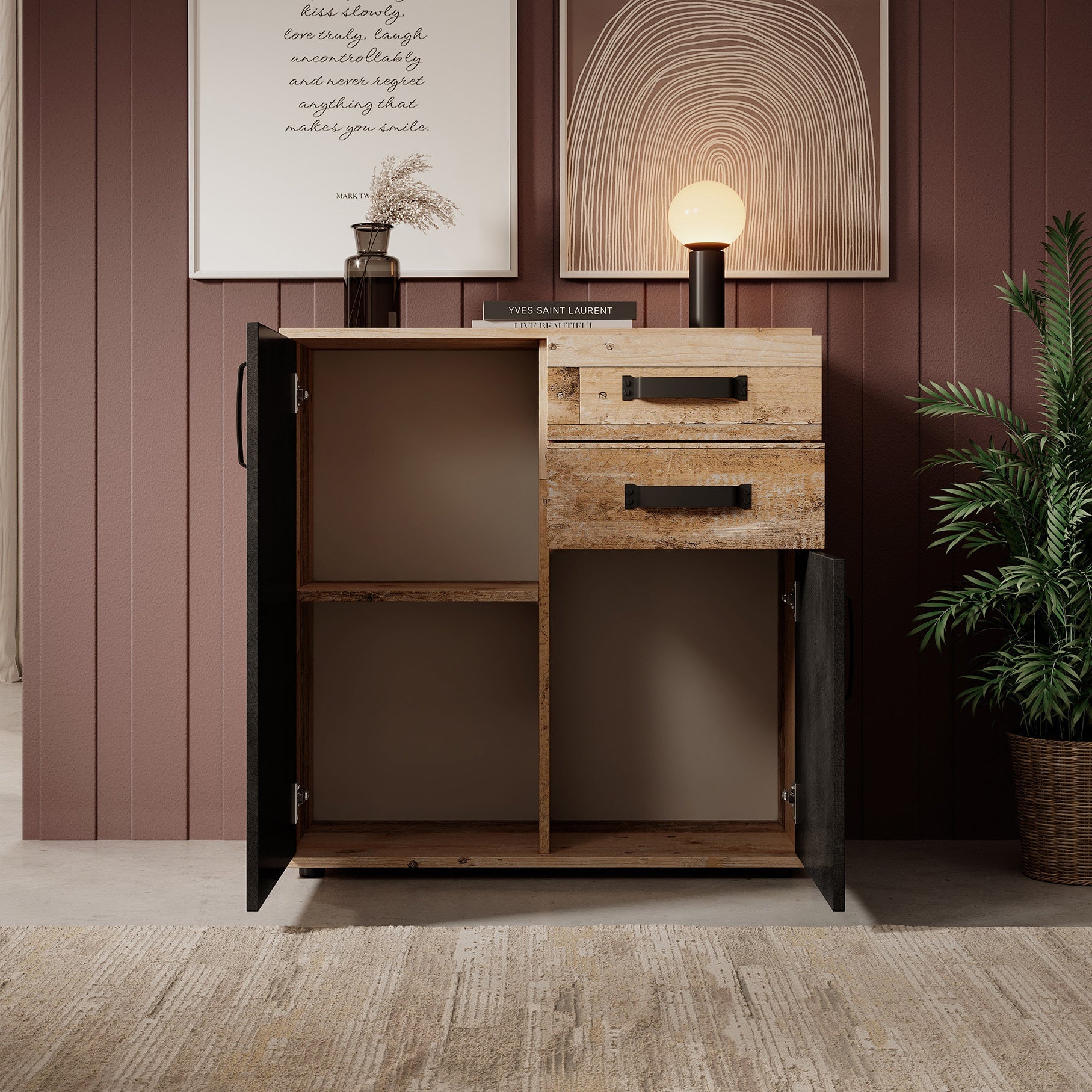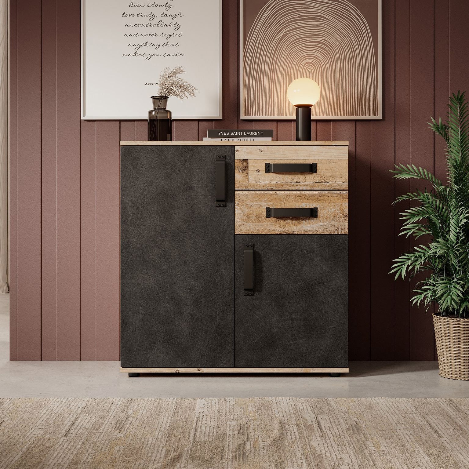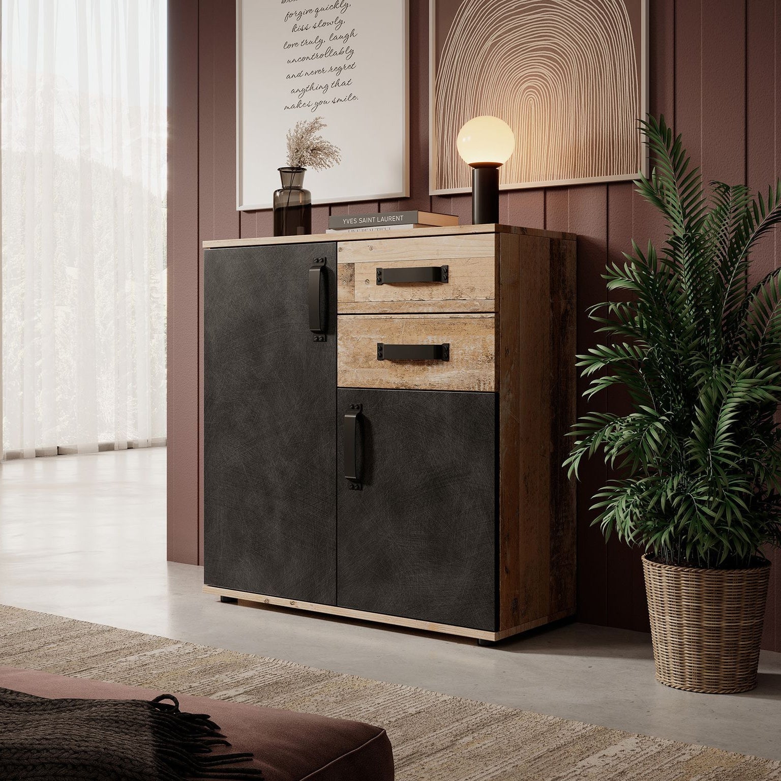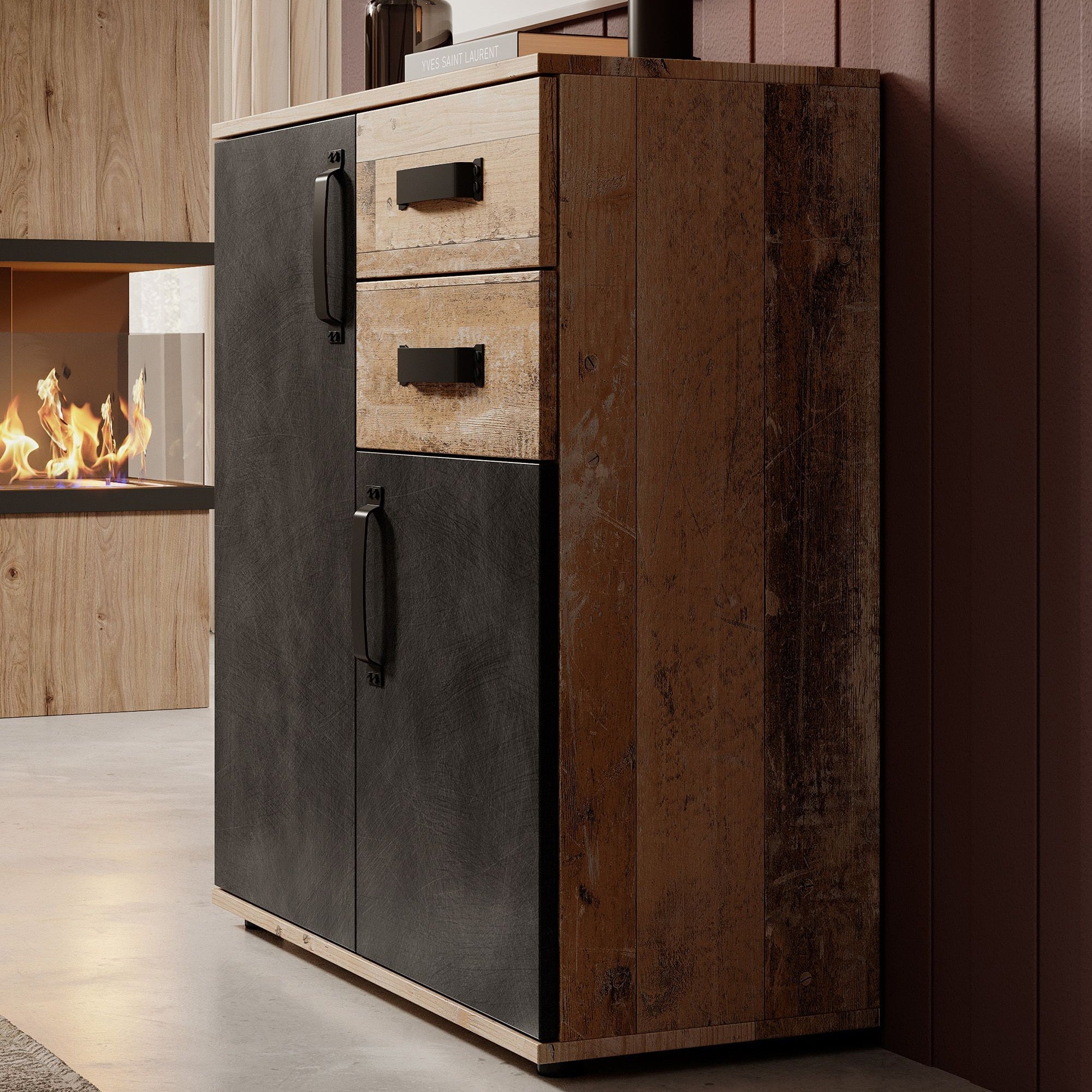 Meubella - Dressoir Montreal - Grijs - Old wood - 80 cm