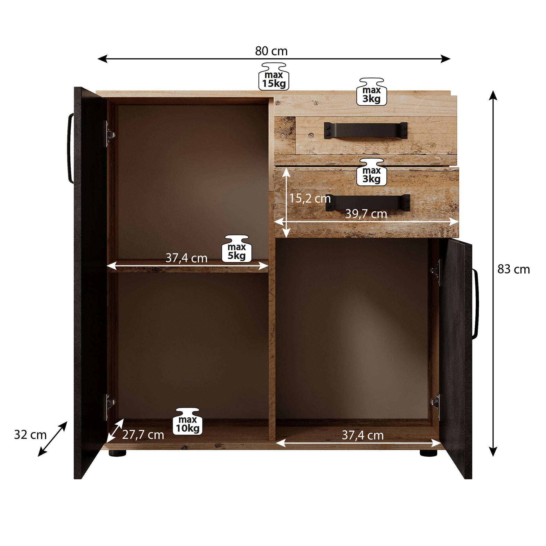 | Maat | H 83 x B 80 x D 32 cm |
