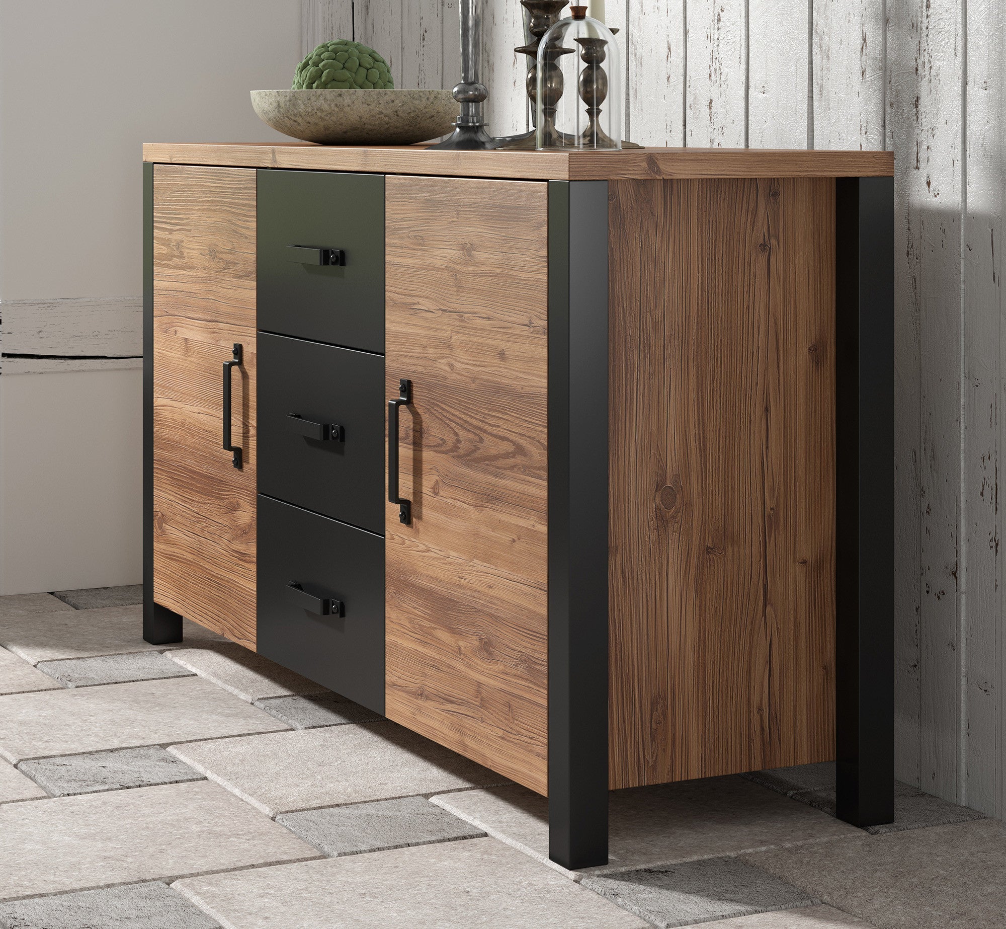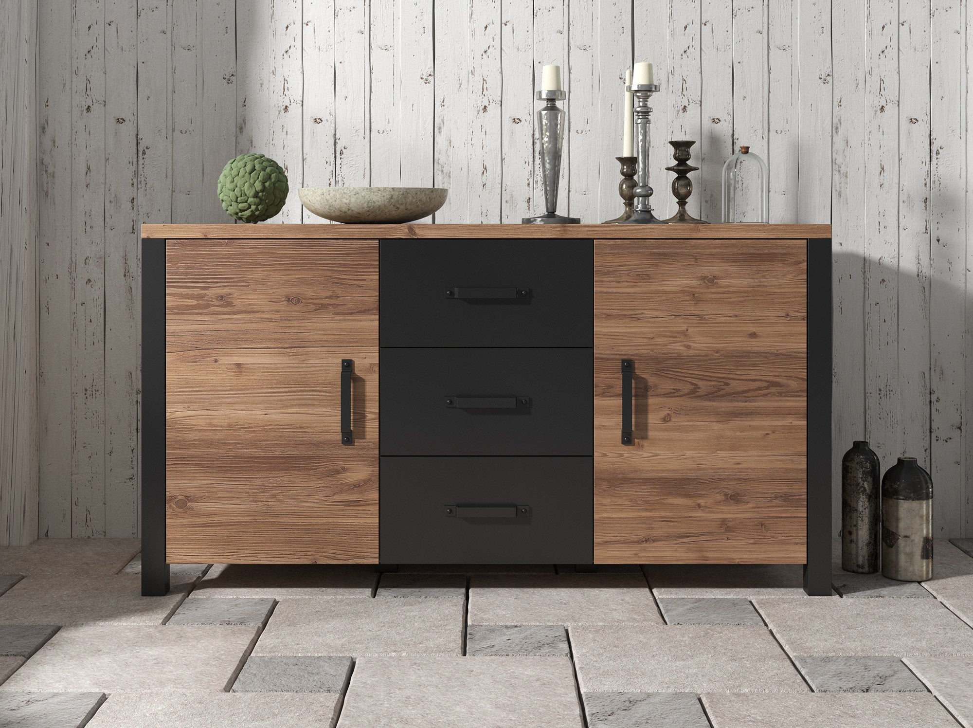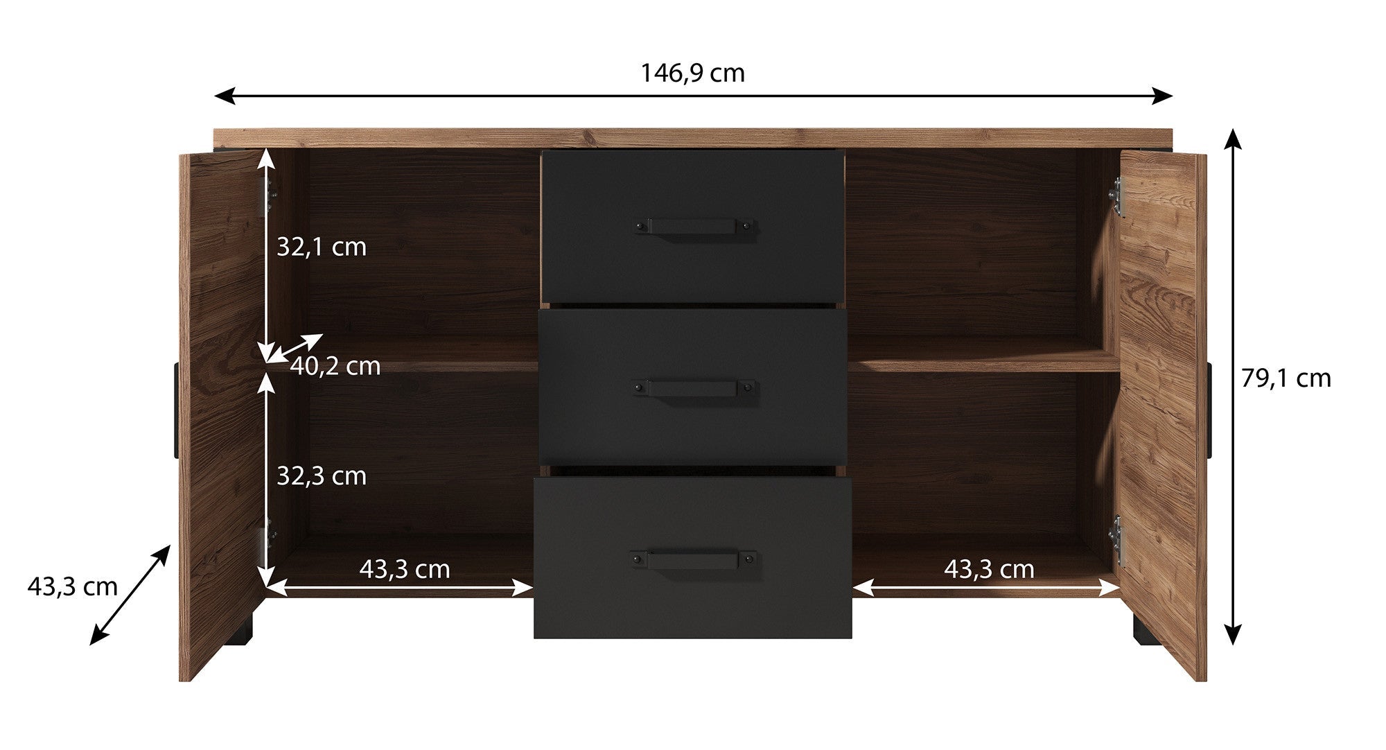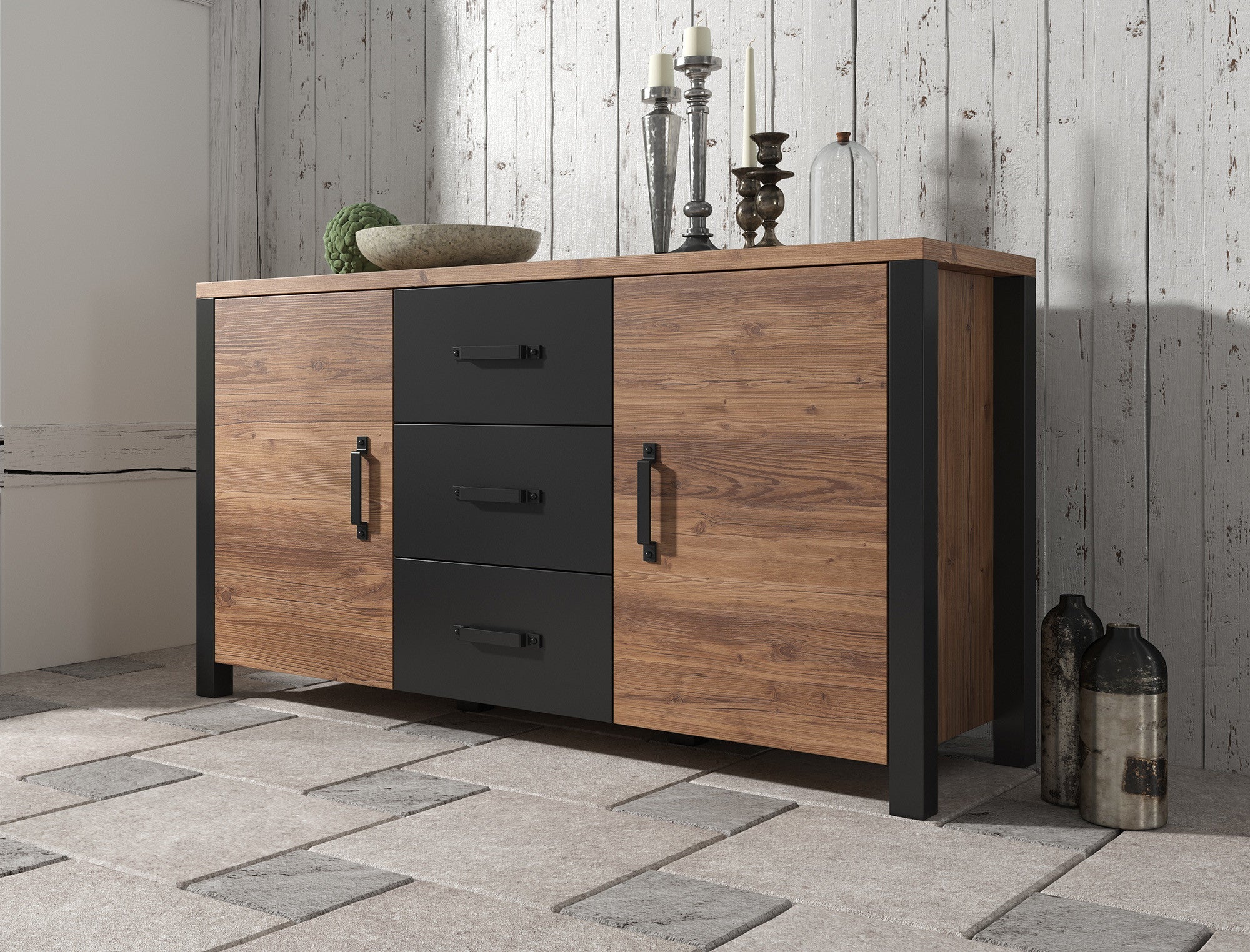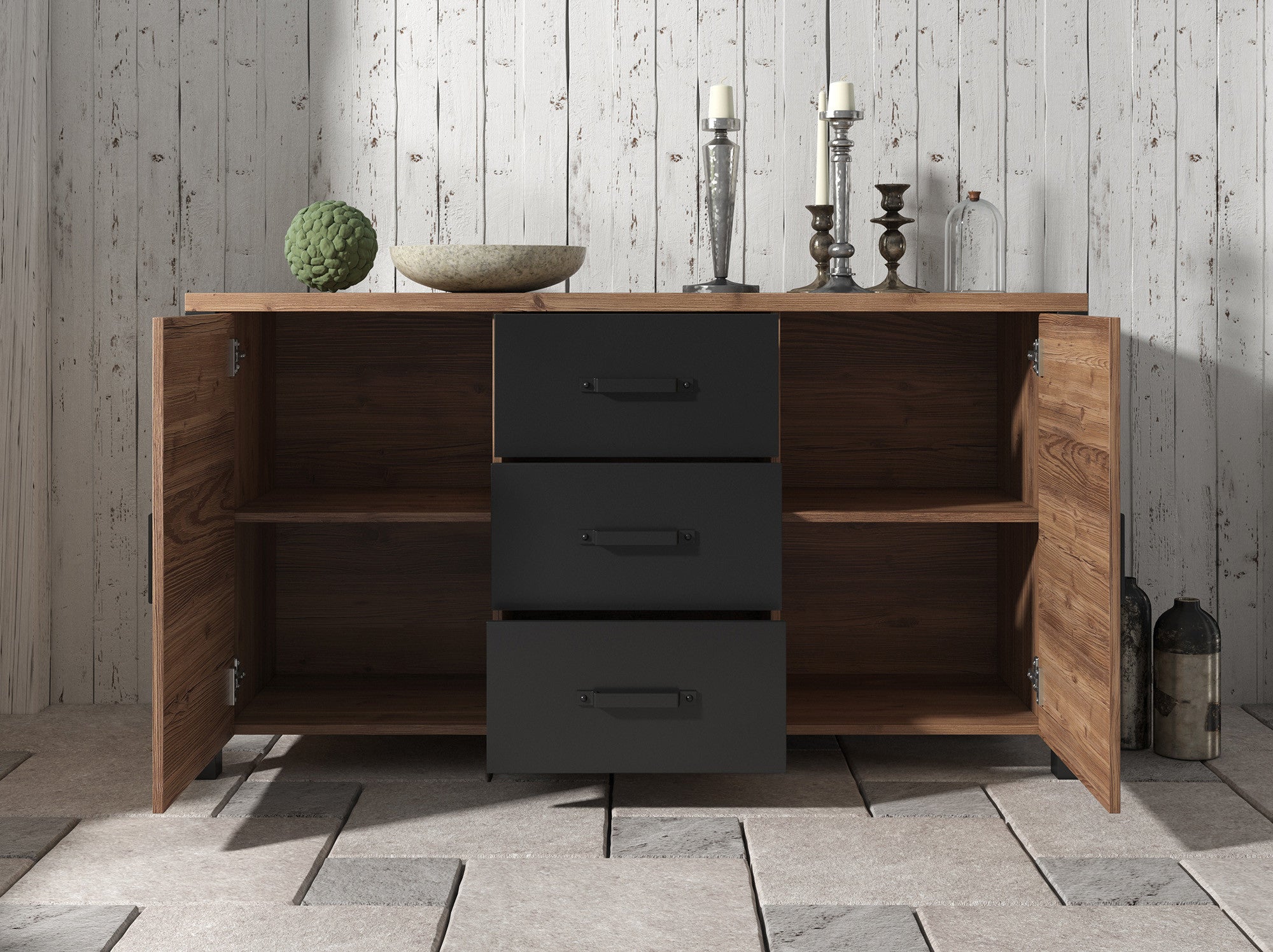 Meubella - Dressoir Olivia - Zwart - Eiken - 147 cm