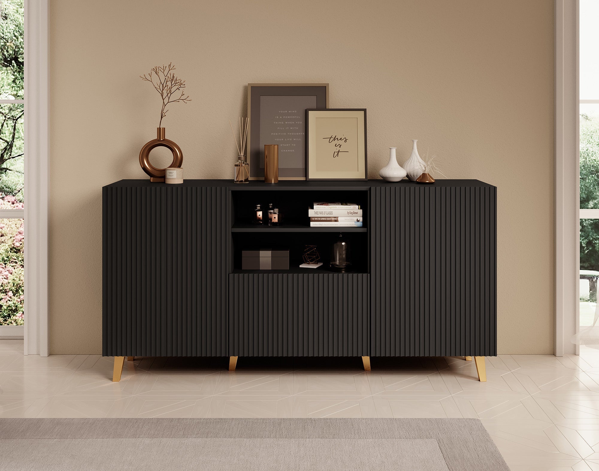 Meubella - Dressoir Palamos - Mat zwart - 150 cm