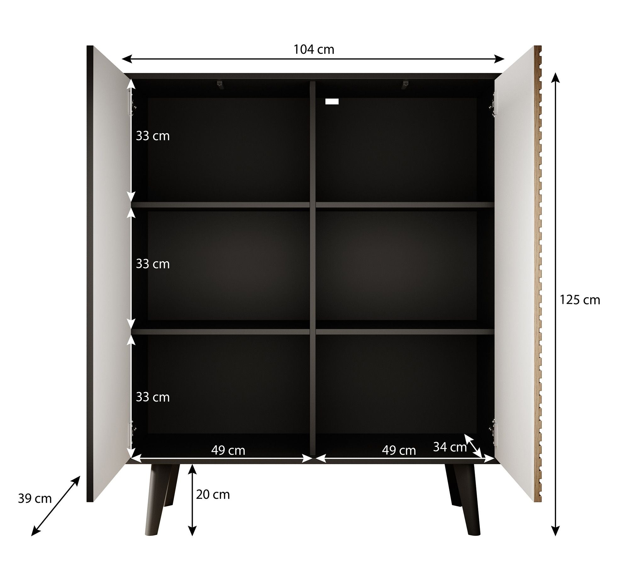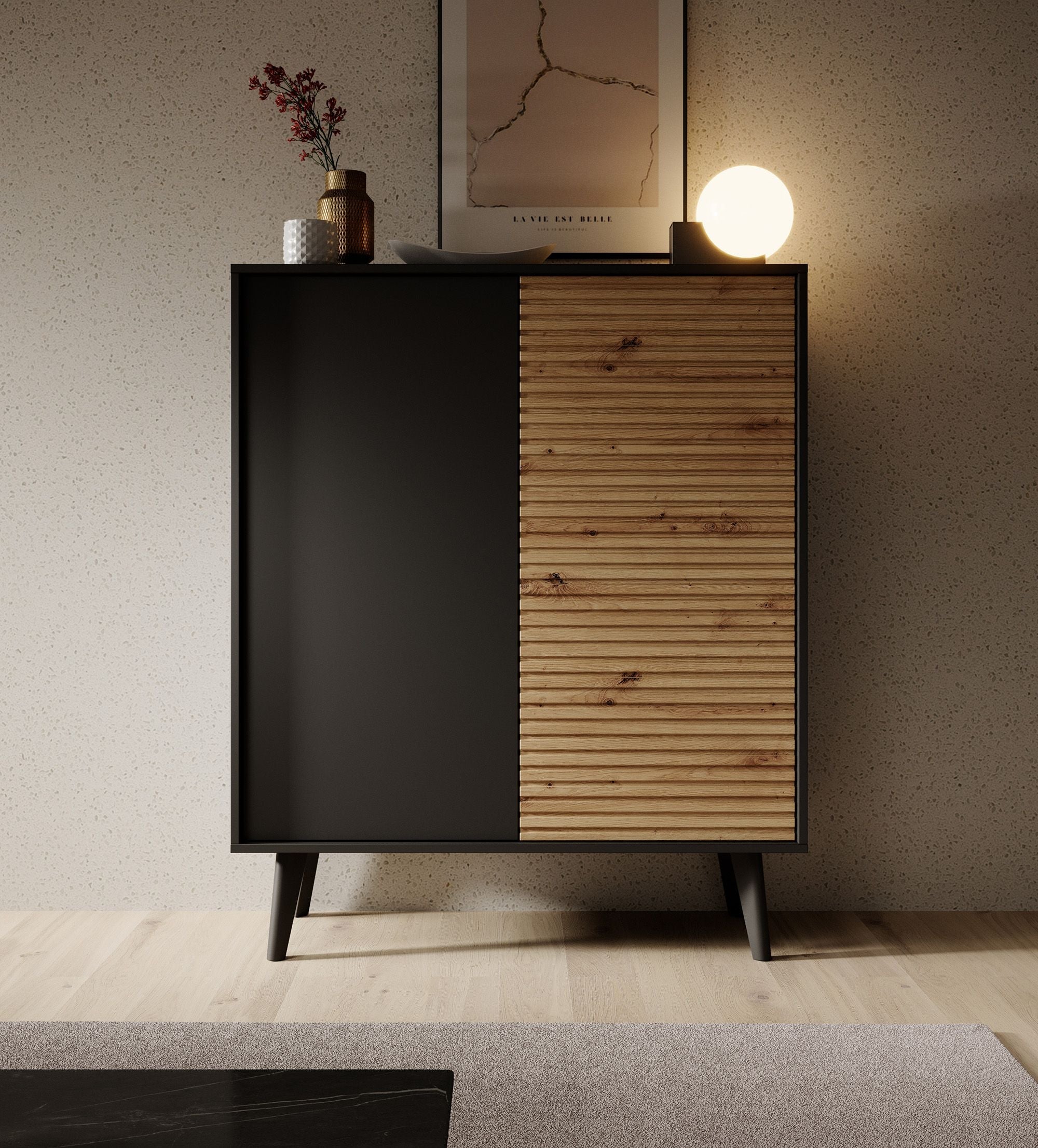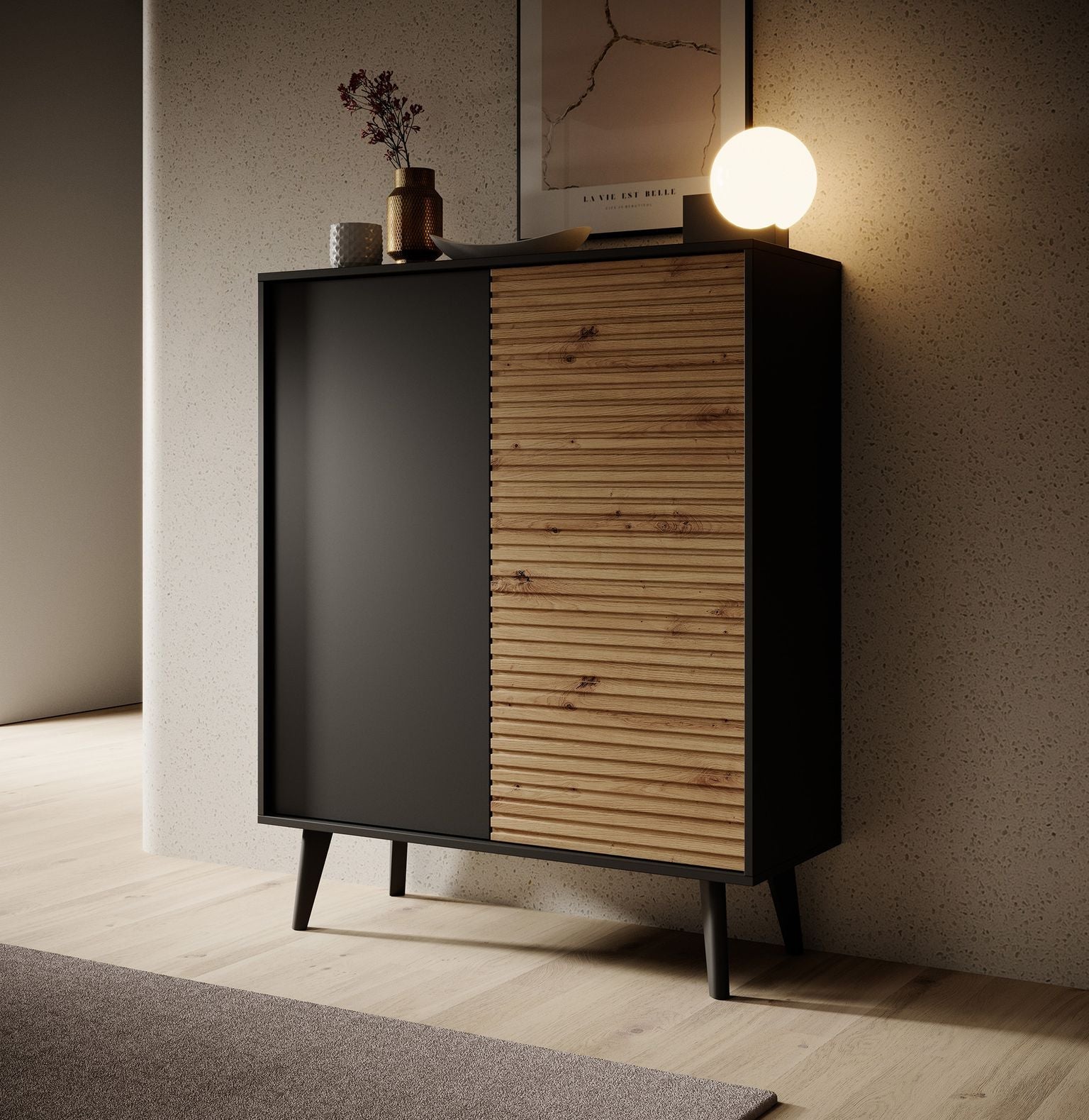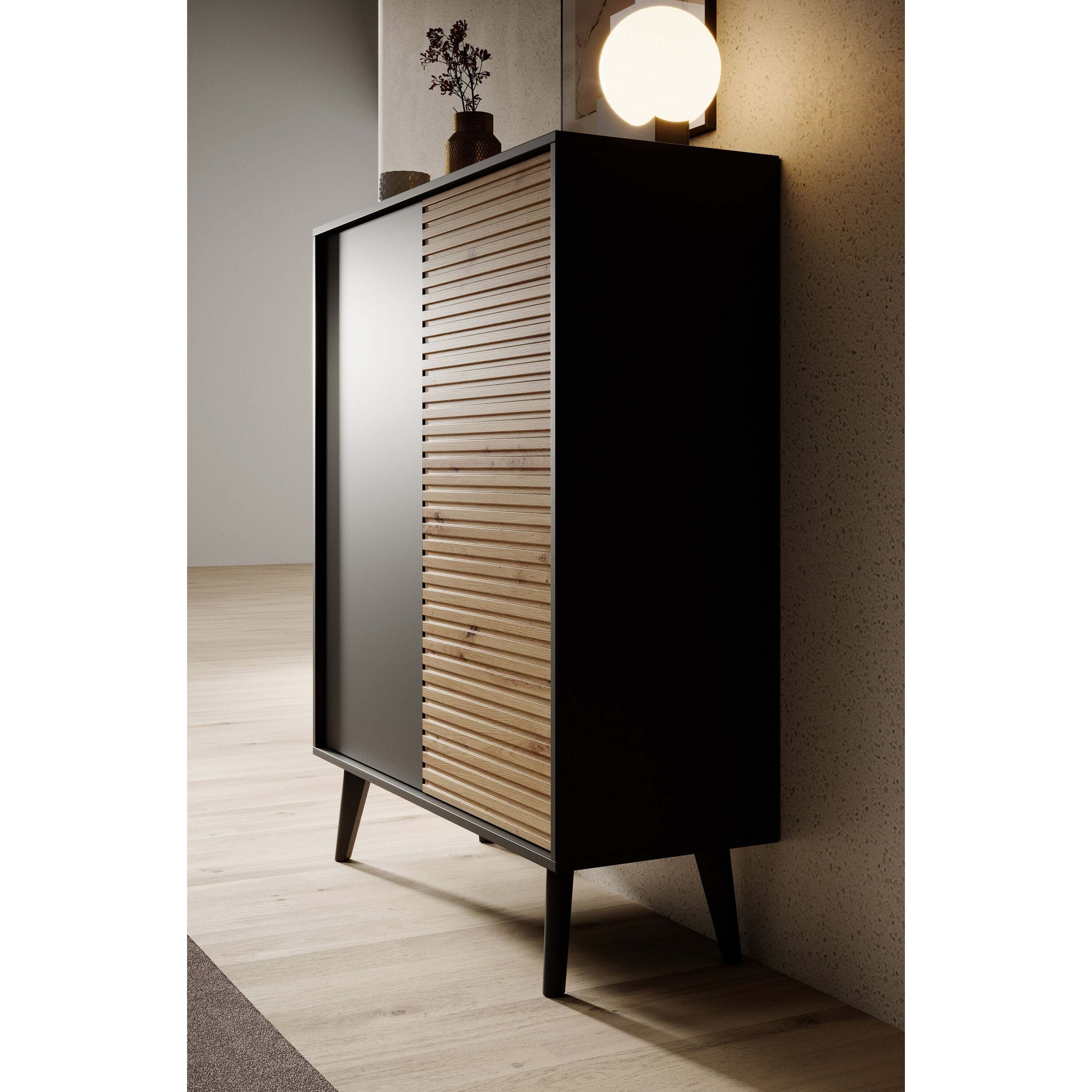 Meubella - Dressoir Palladium - Eiken - Zwart - 104 cm - Hoog