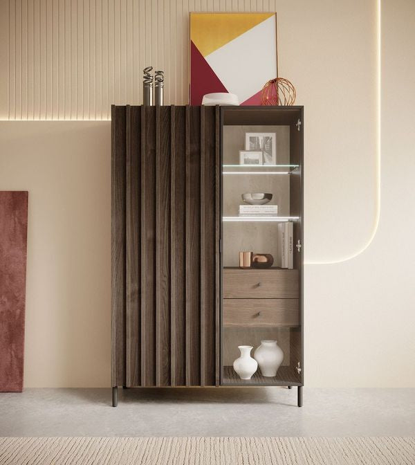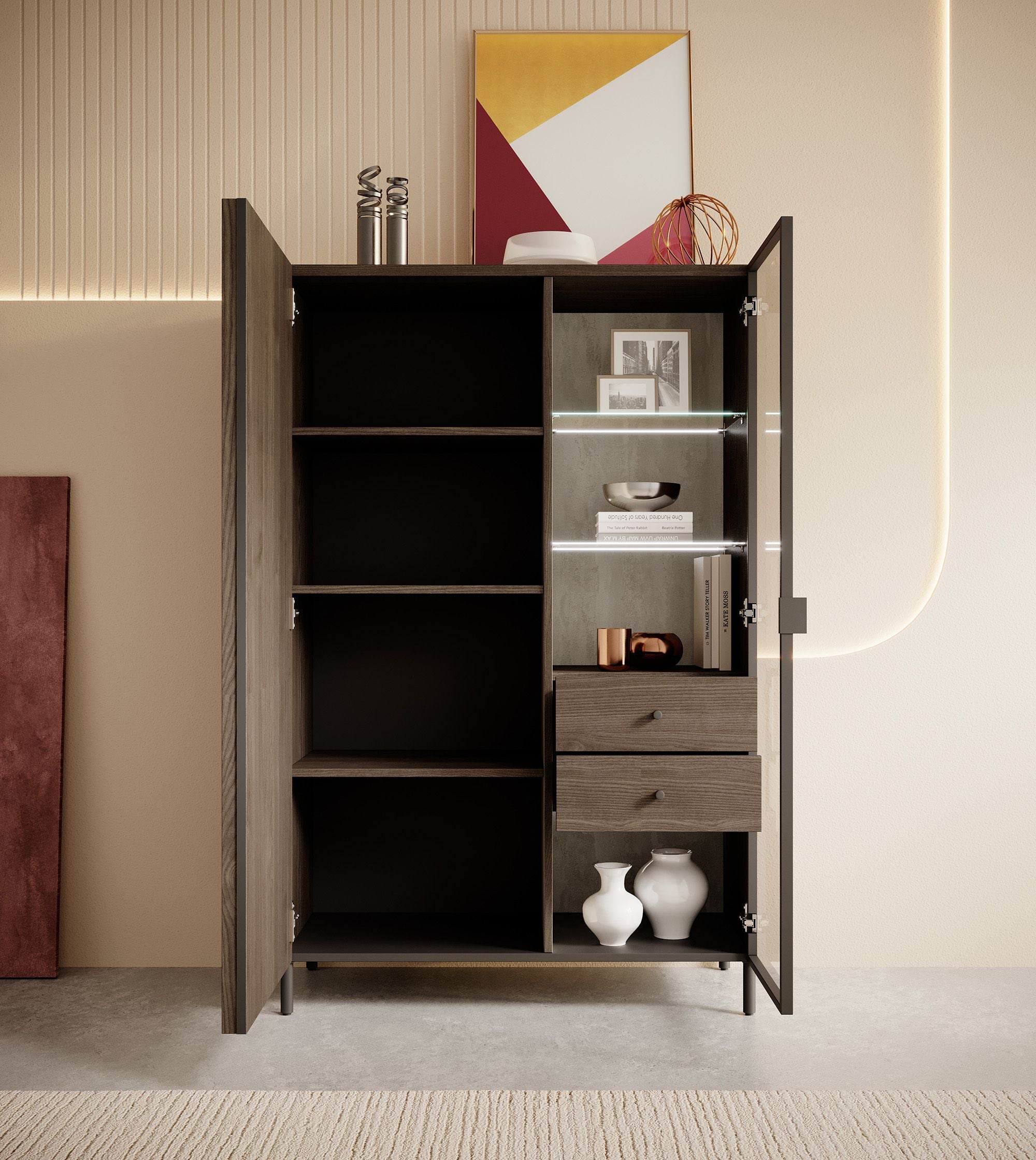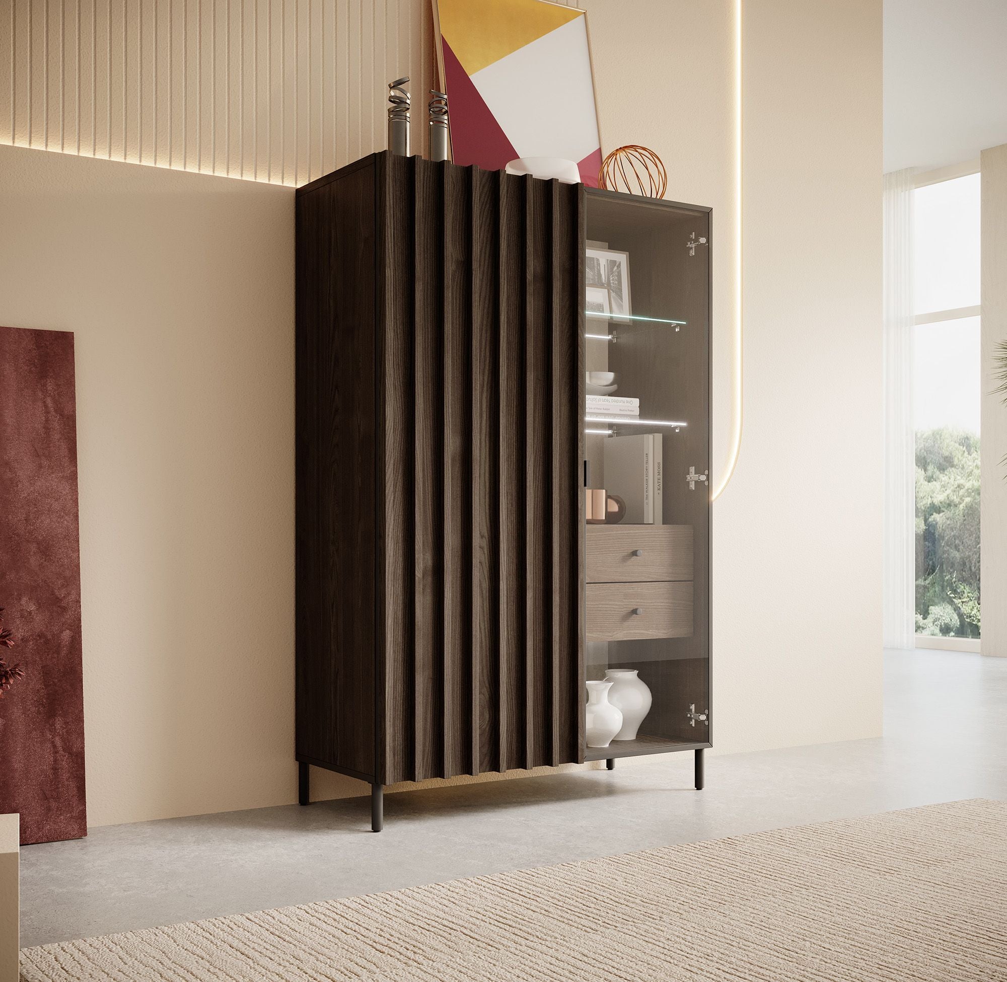 Meubella Dressoir Paz - Donker eiken - 92 cm - Met glas