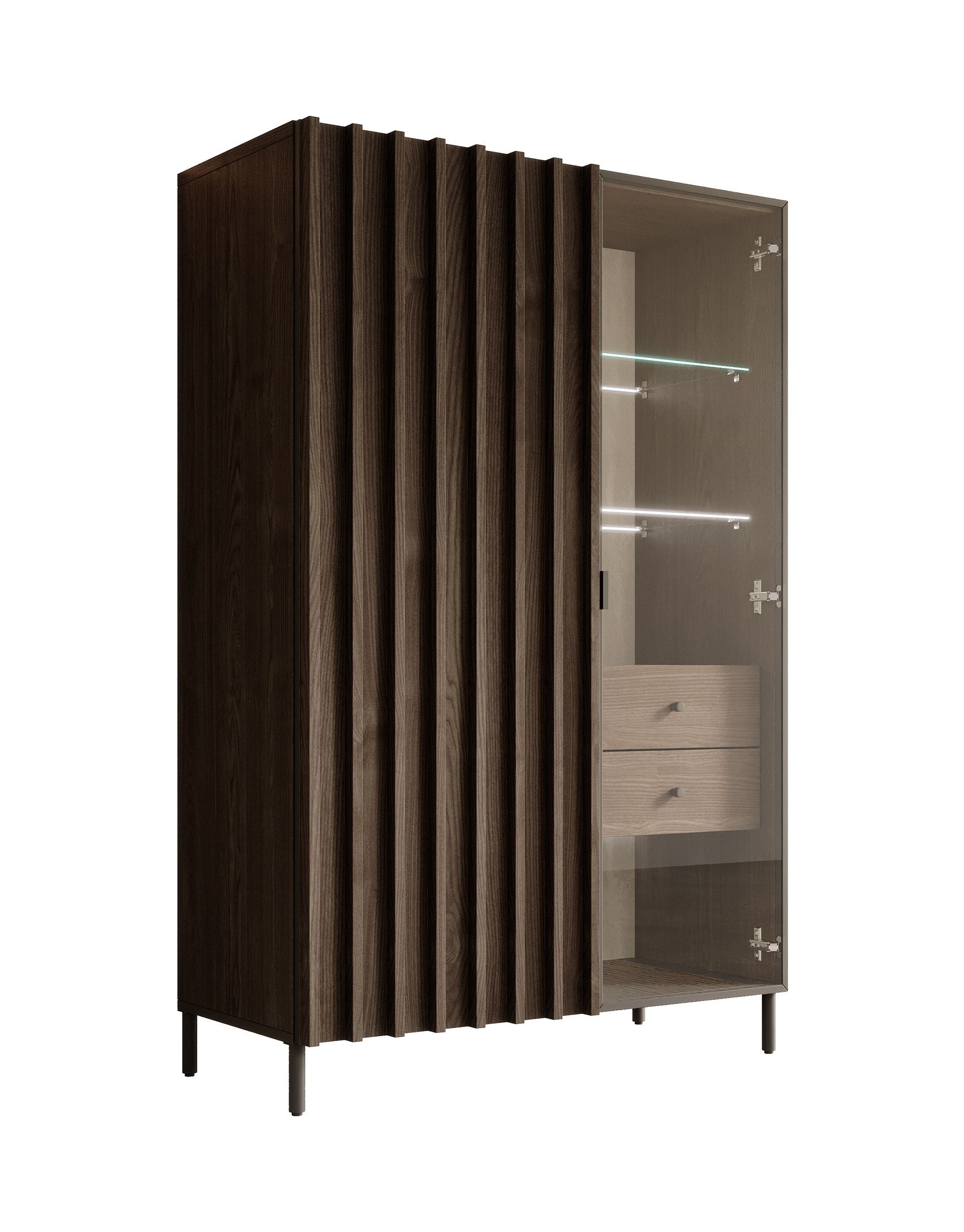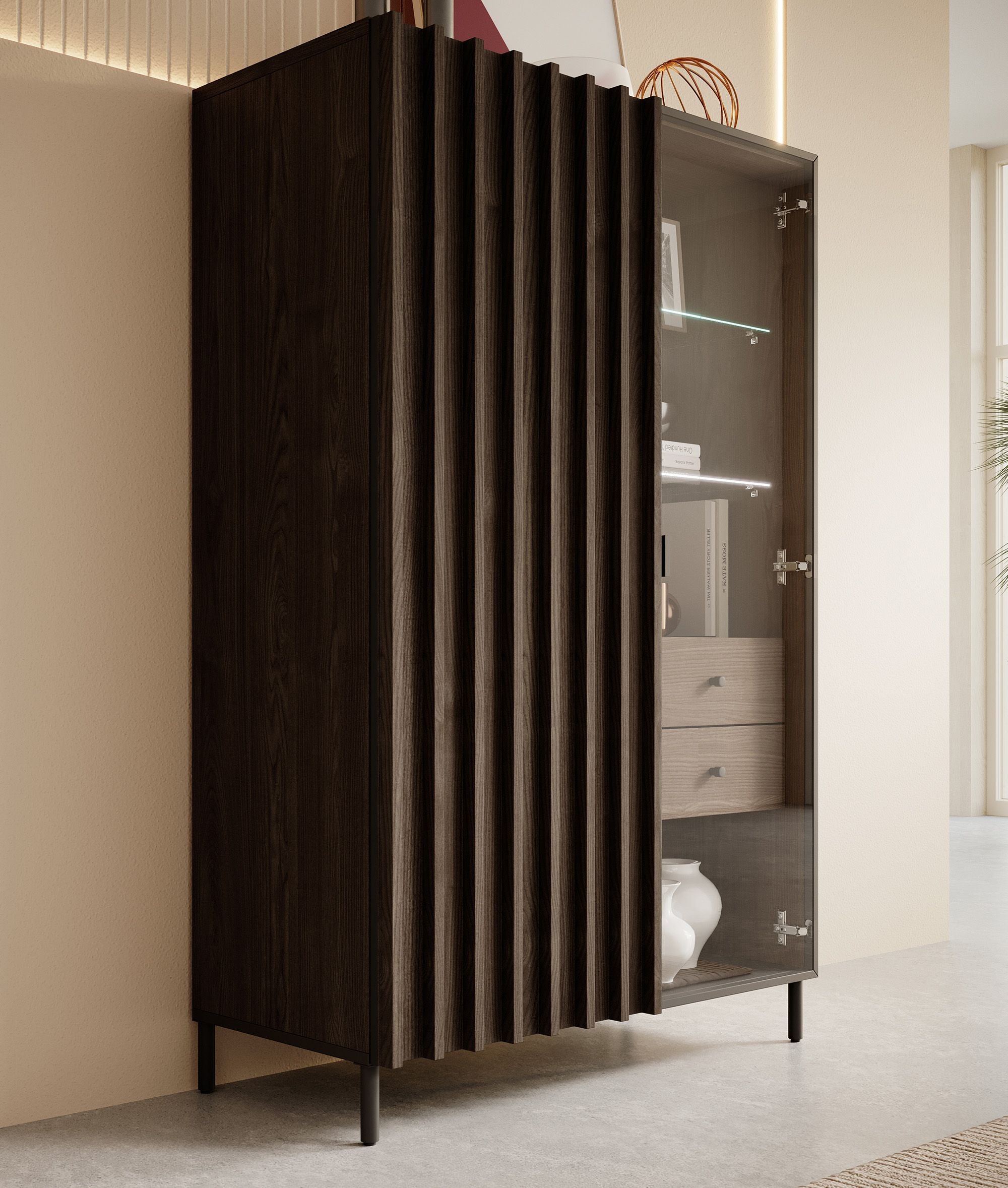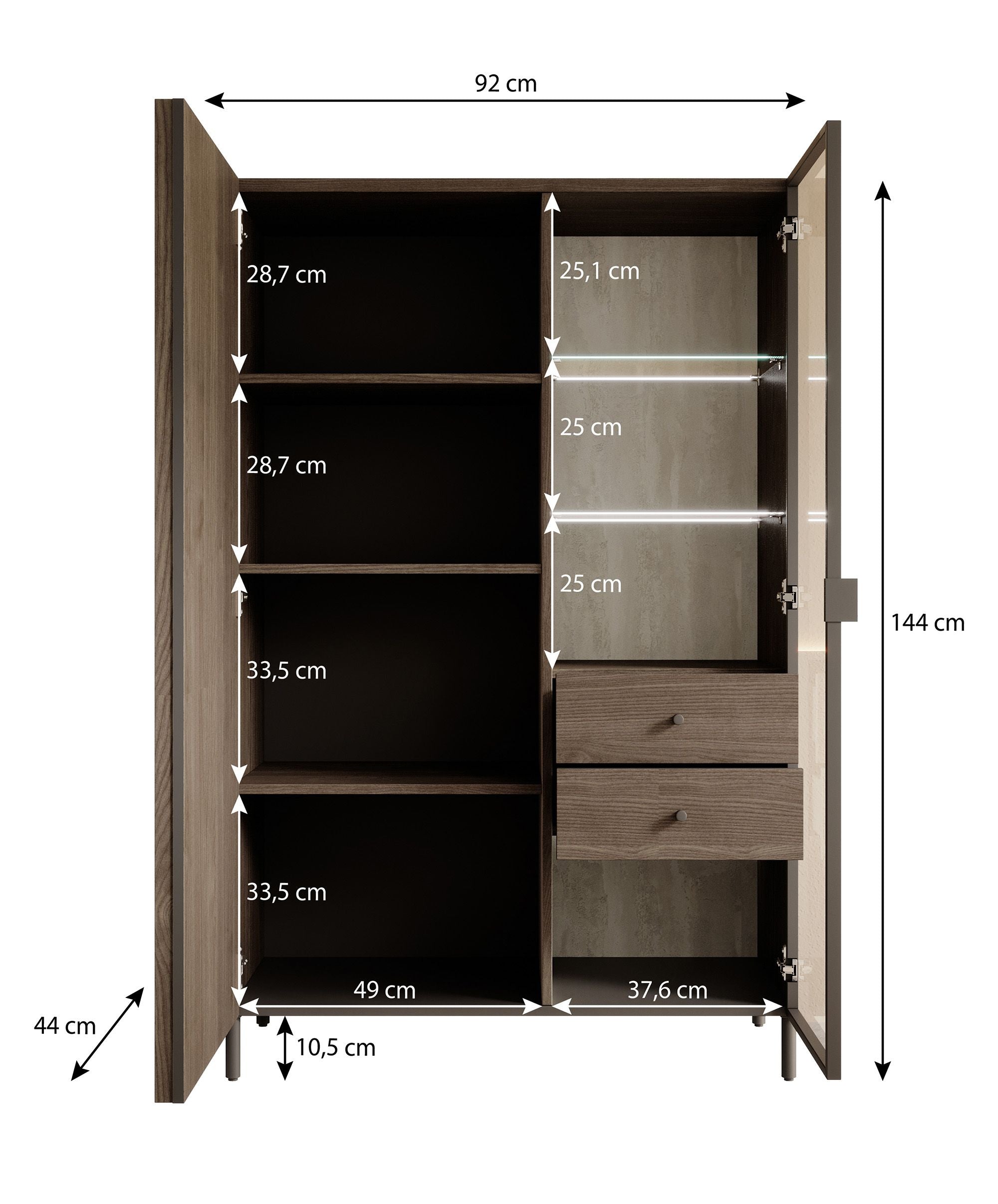 Meubella Dressoir Paz - Donker eiken - 92 cm - Met glas
