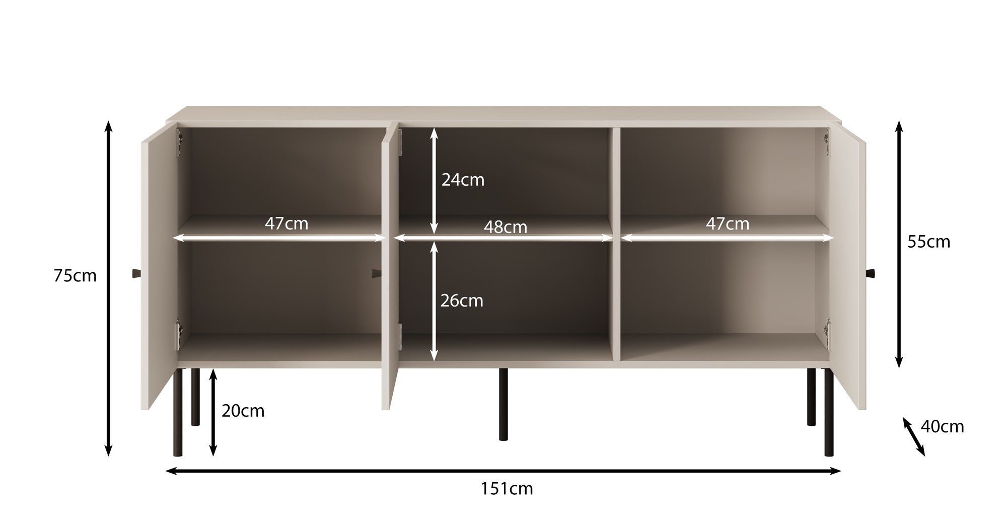 Meubella - Dressoir Pierson - Zwart - 150 cm