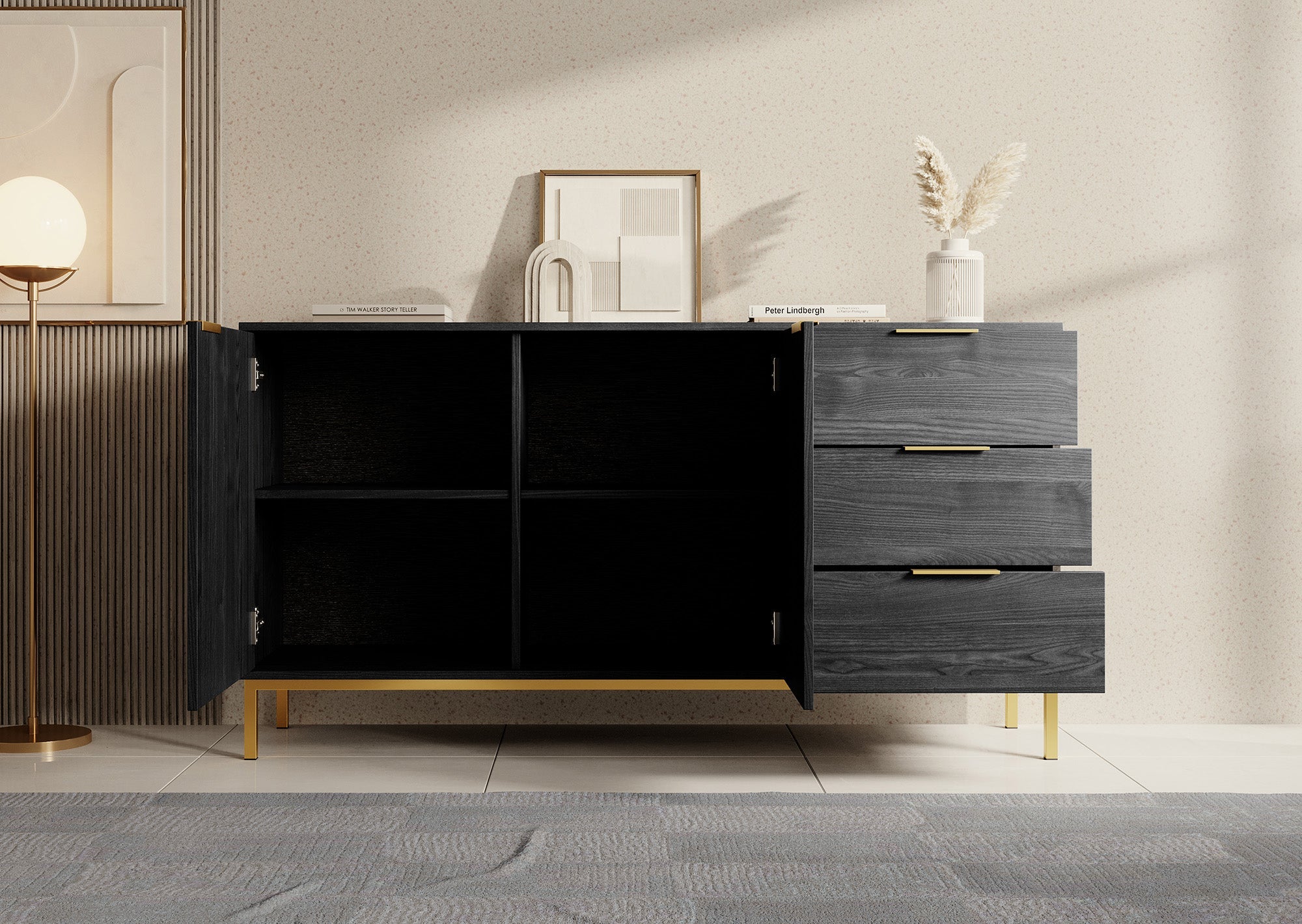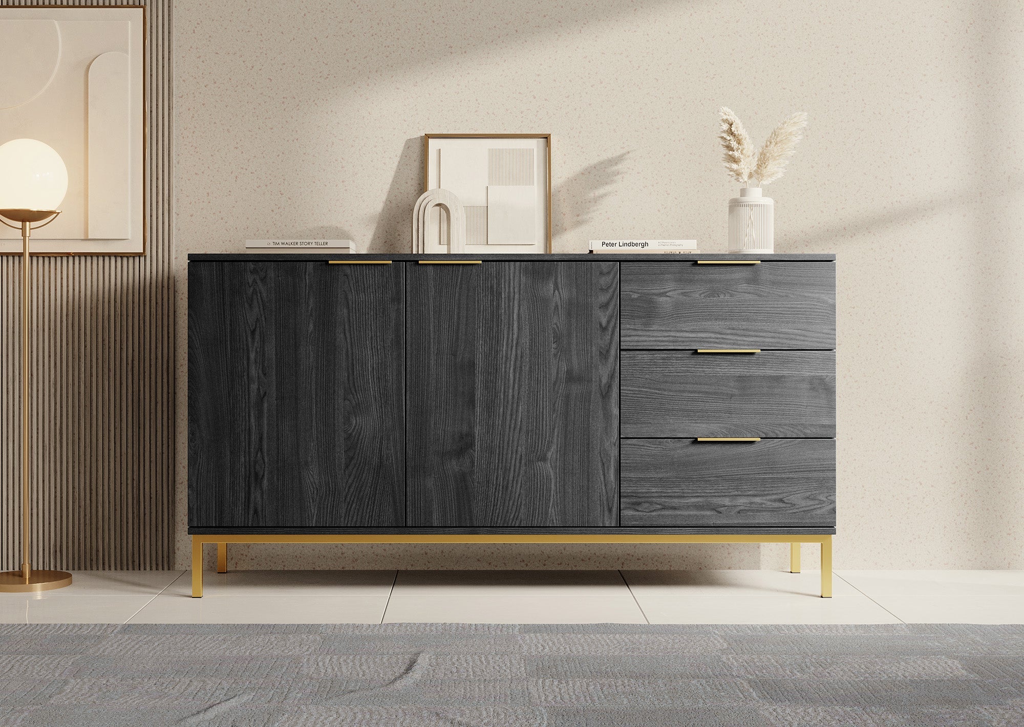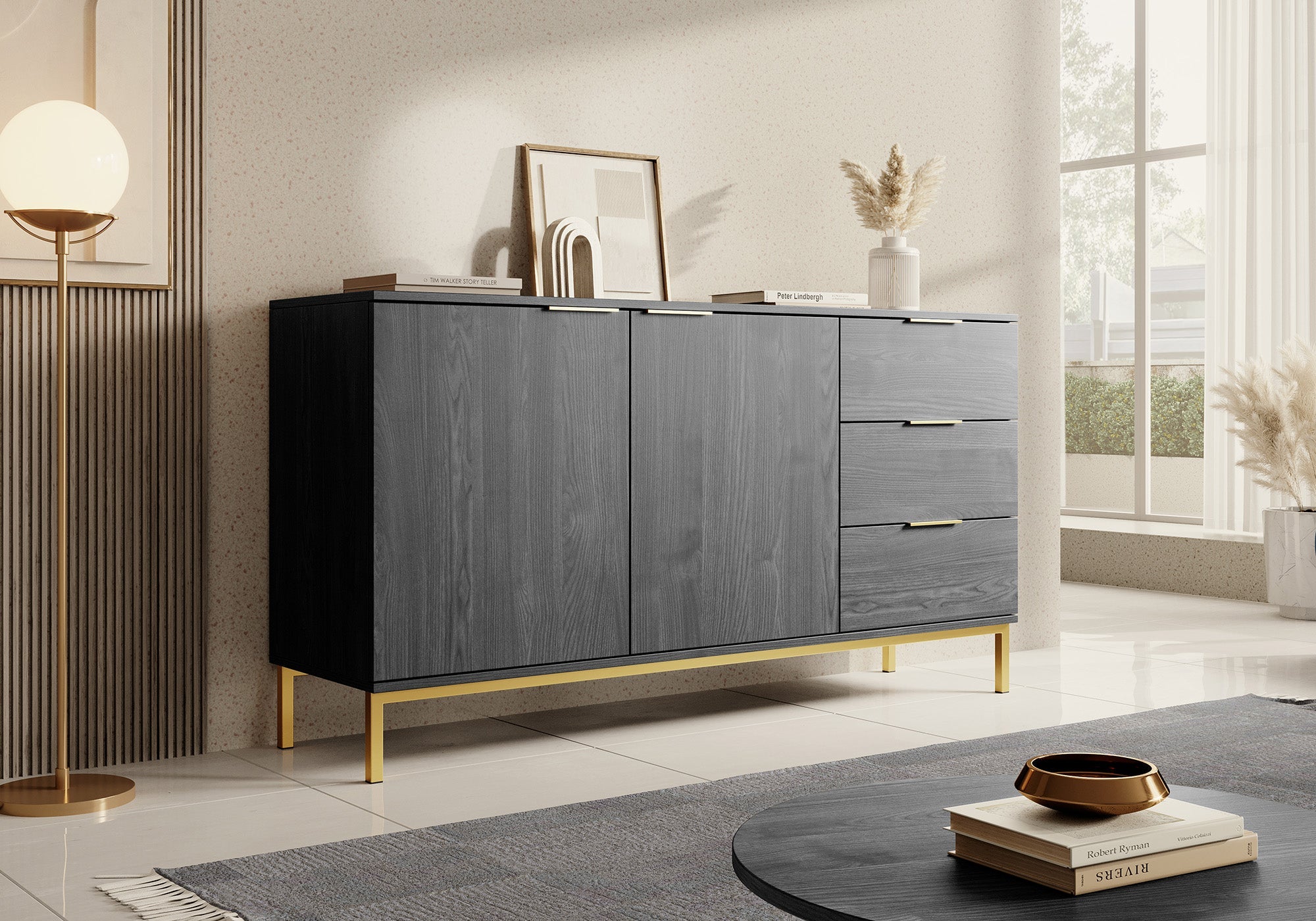 Meubella - Dressoir Ponchi - Zwart eiken - 150 cm