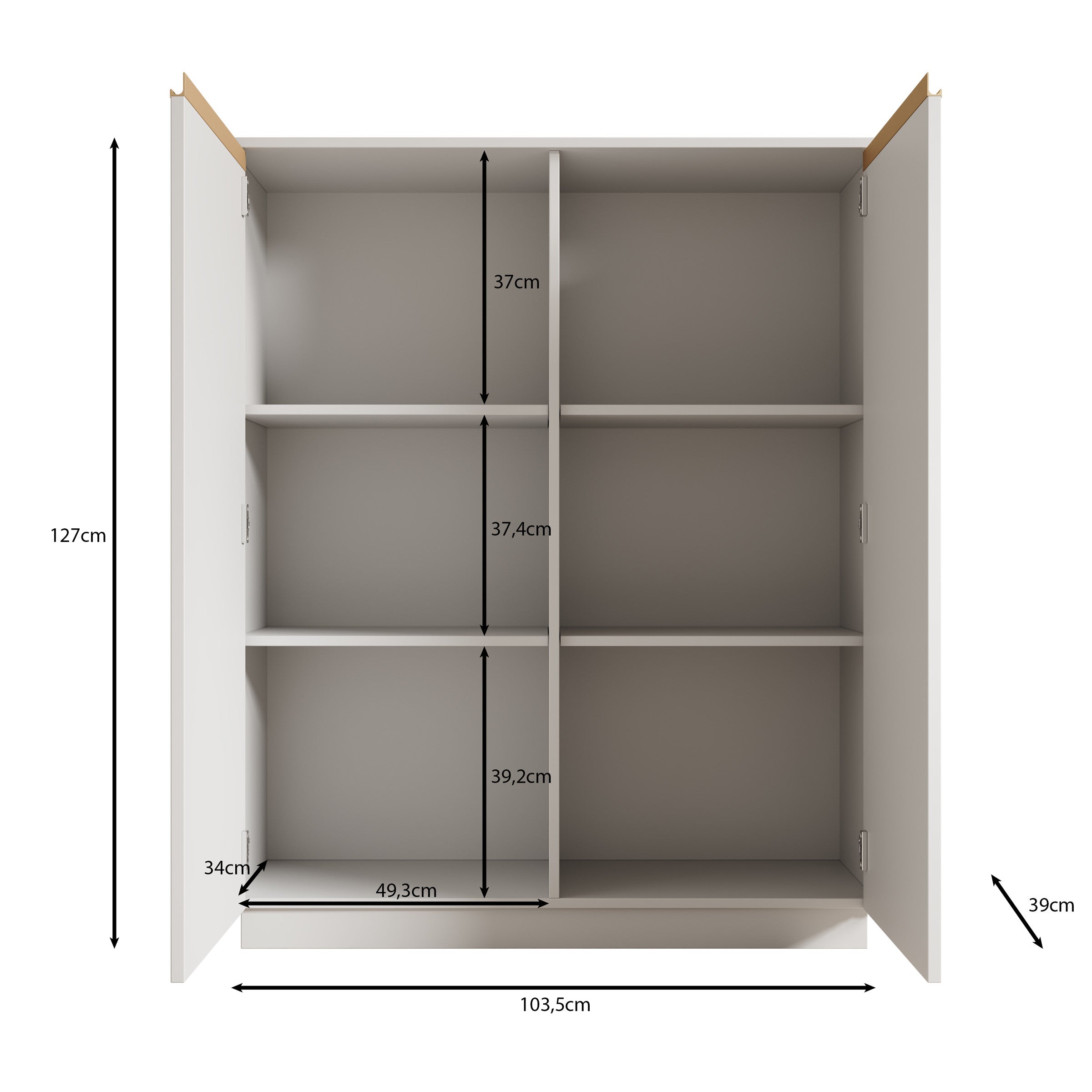 Maat | H 127 x B 104 x D 39 cm |