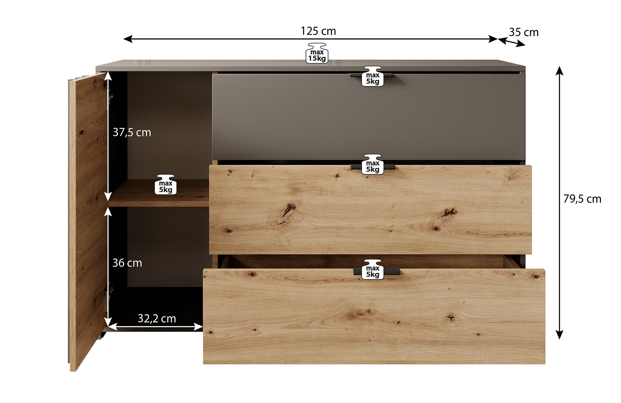 | Maat | H 80 x B 125 x D 35 cm |