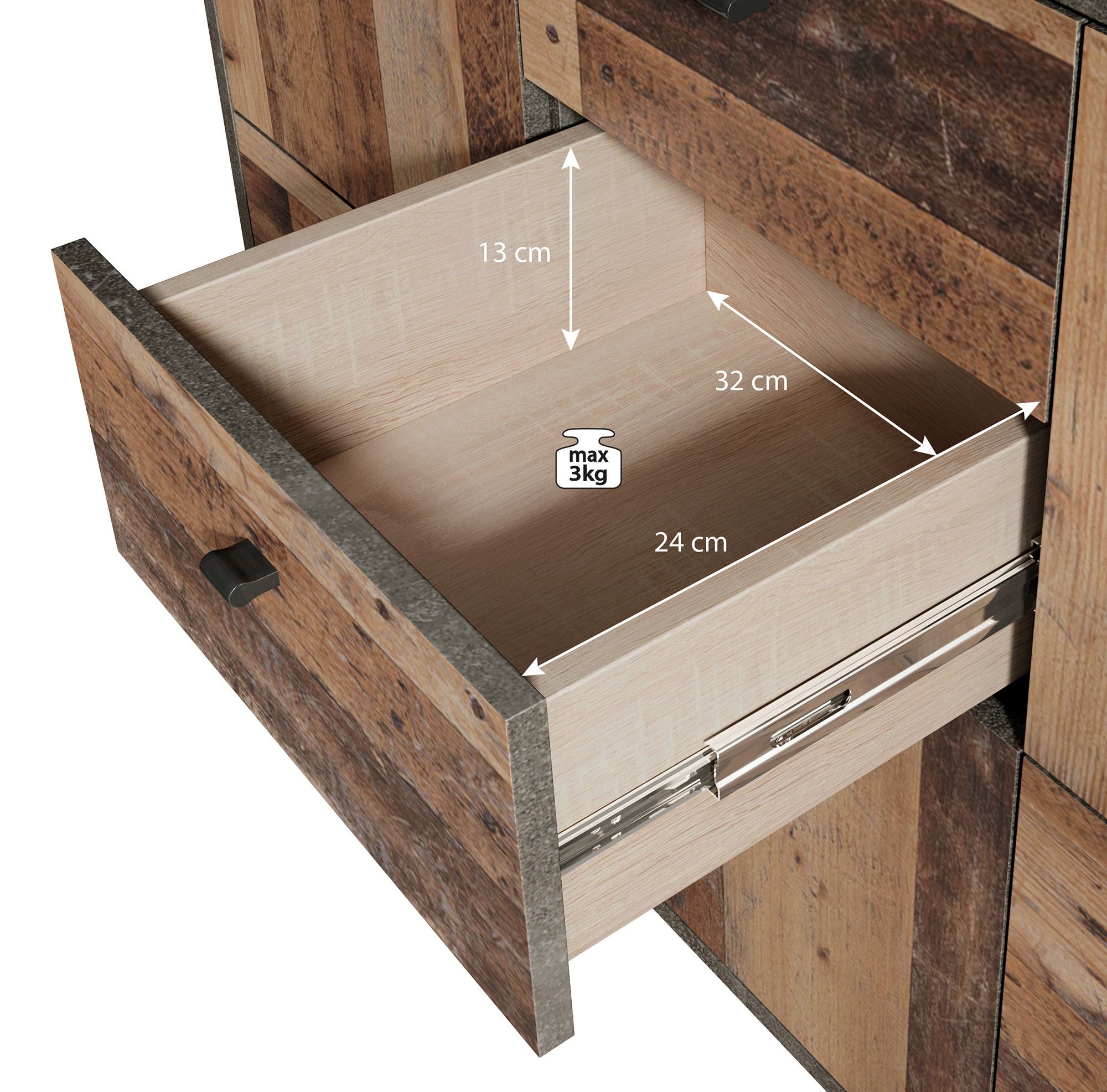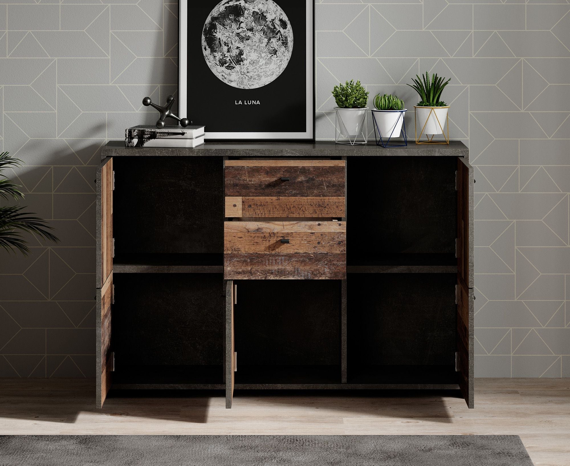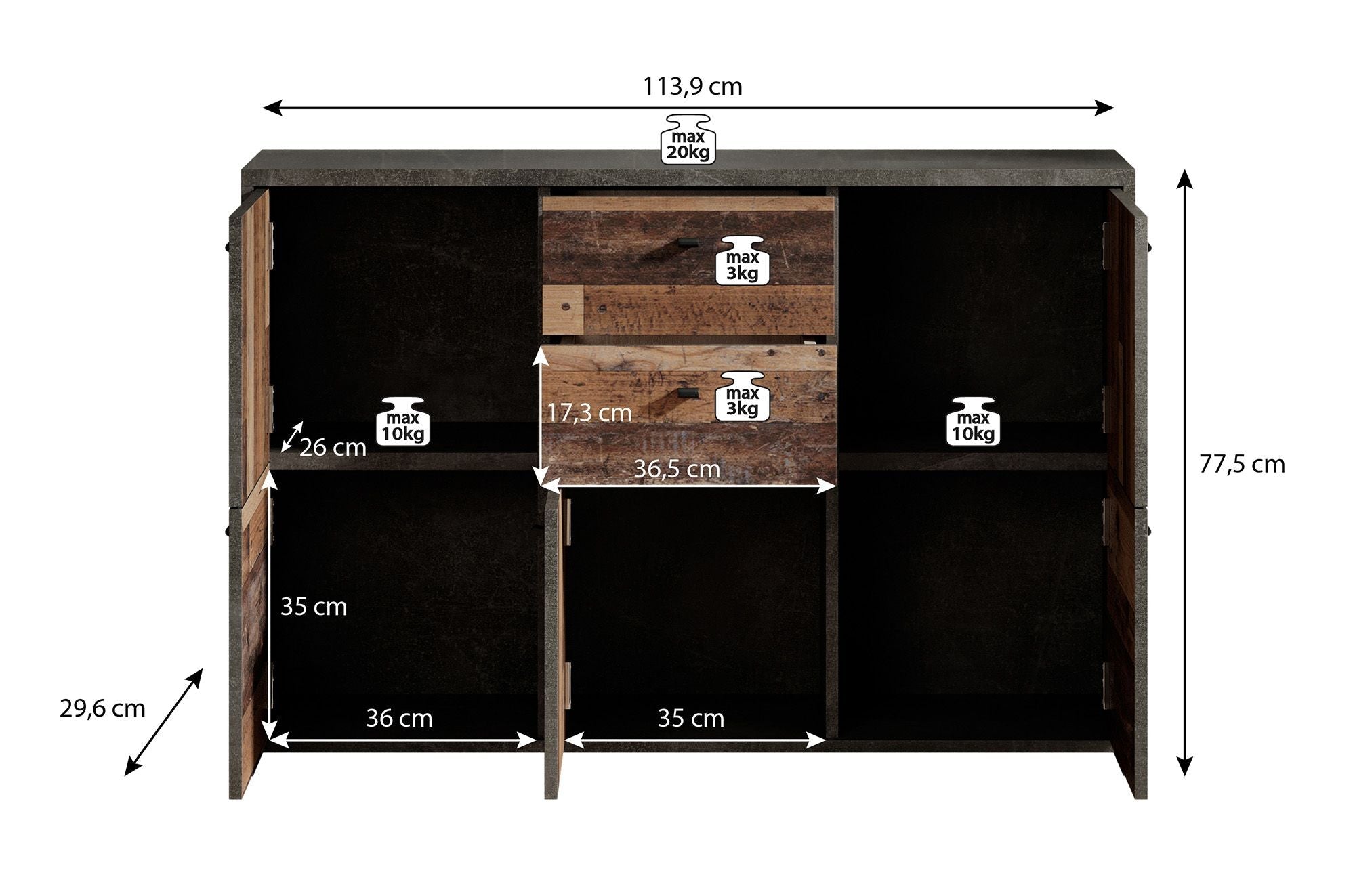 Meubella - Dressoir Sahara 4 - Old wood - Grijs - 114 cm
