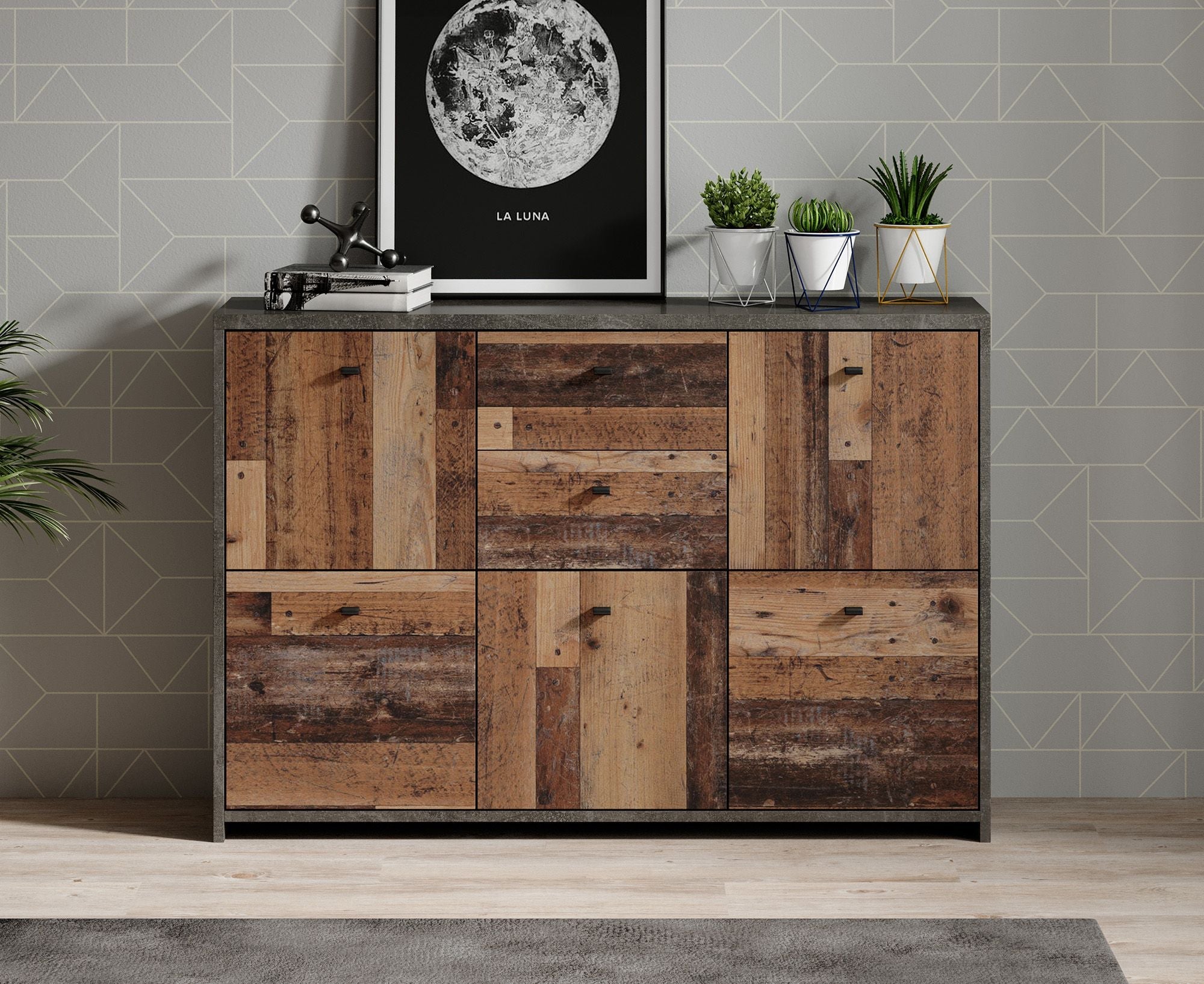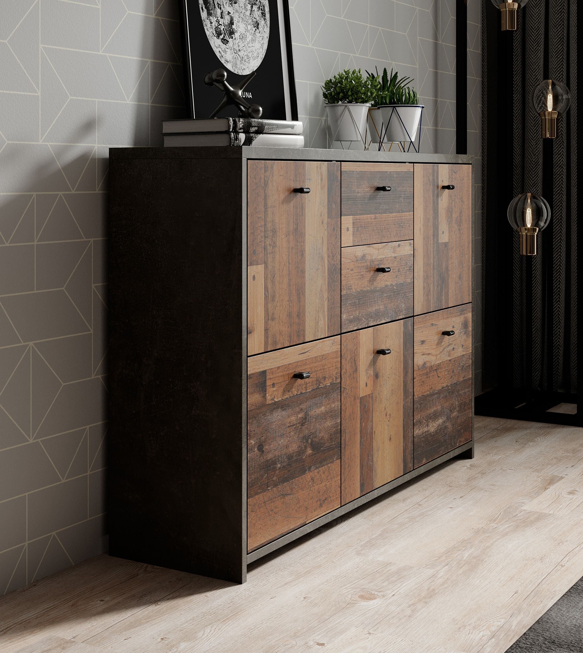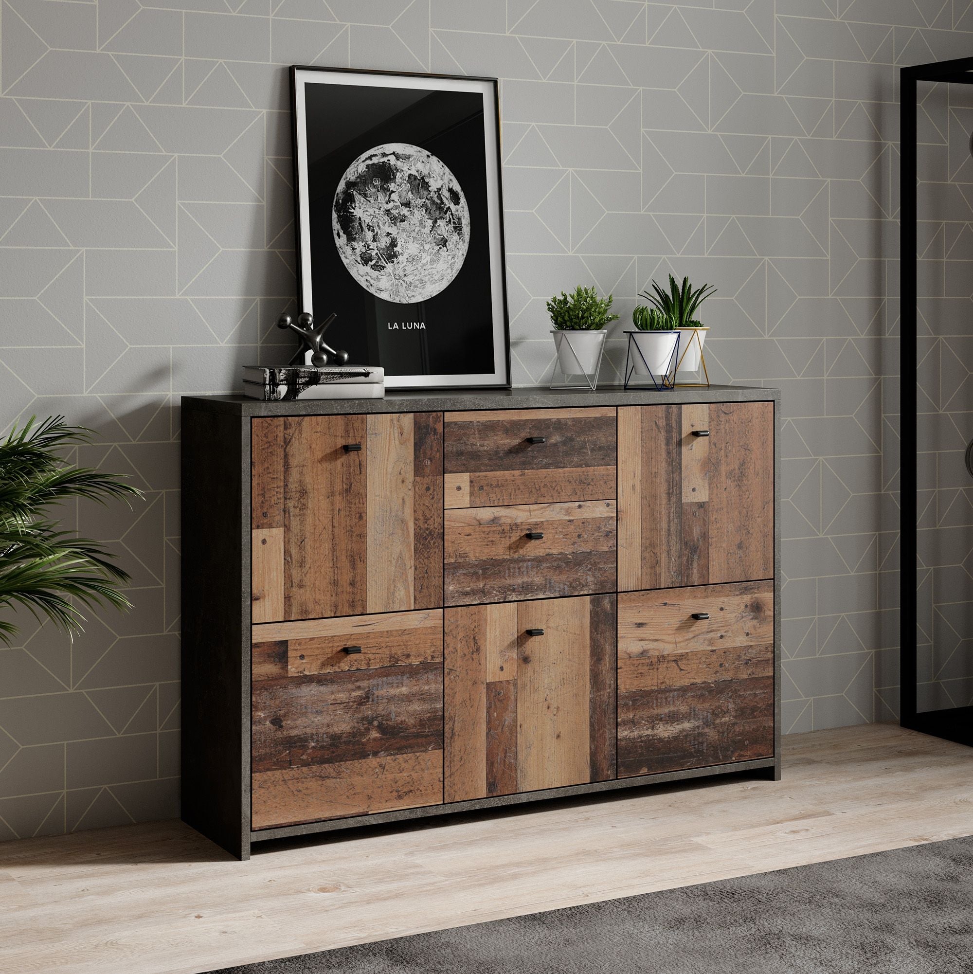 Meubella - Dressoir Sahara 4 - Old wood - Grijs - 114 cm